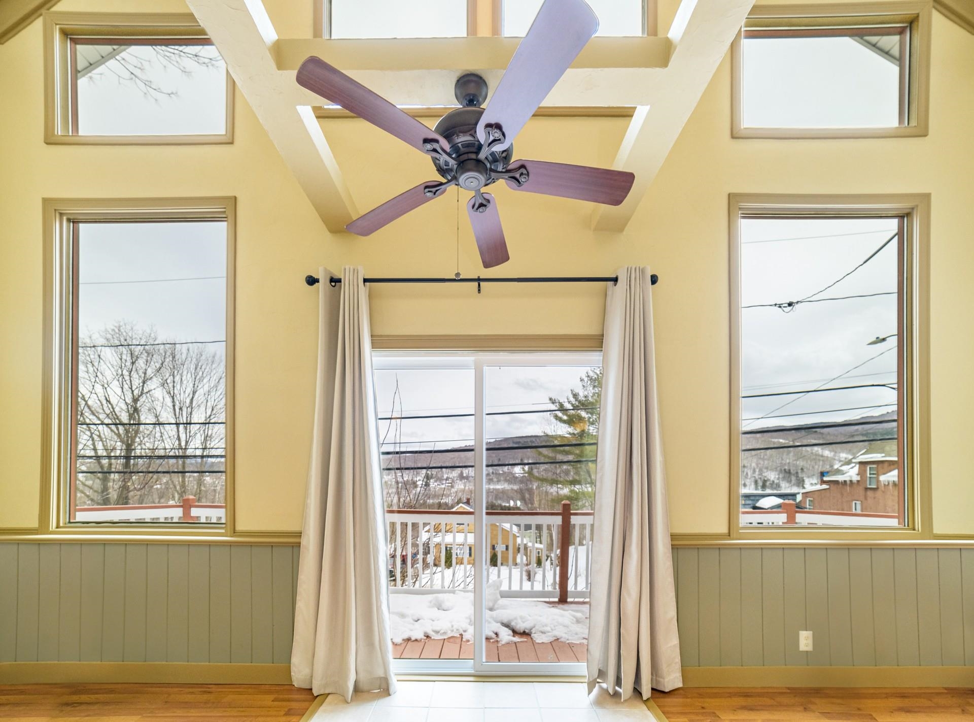 Kitchen Island, Ceiling Fan, Vaulted Ceiling, Natural Woodwork