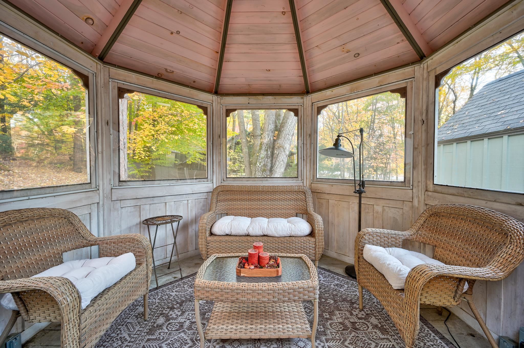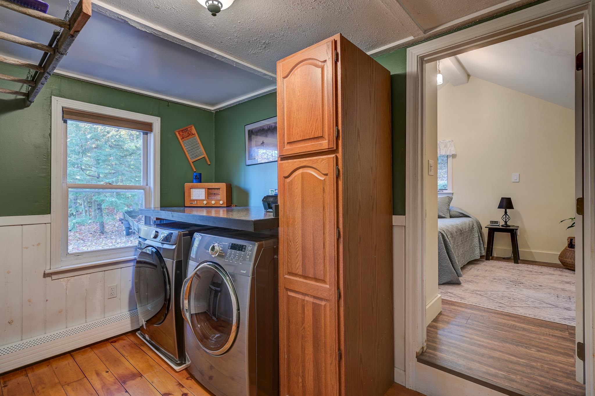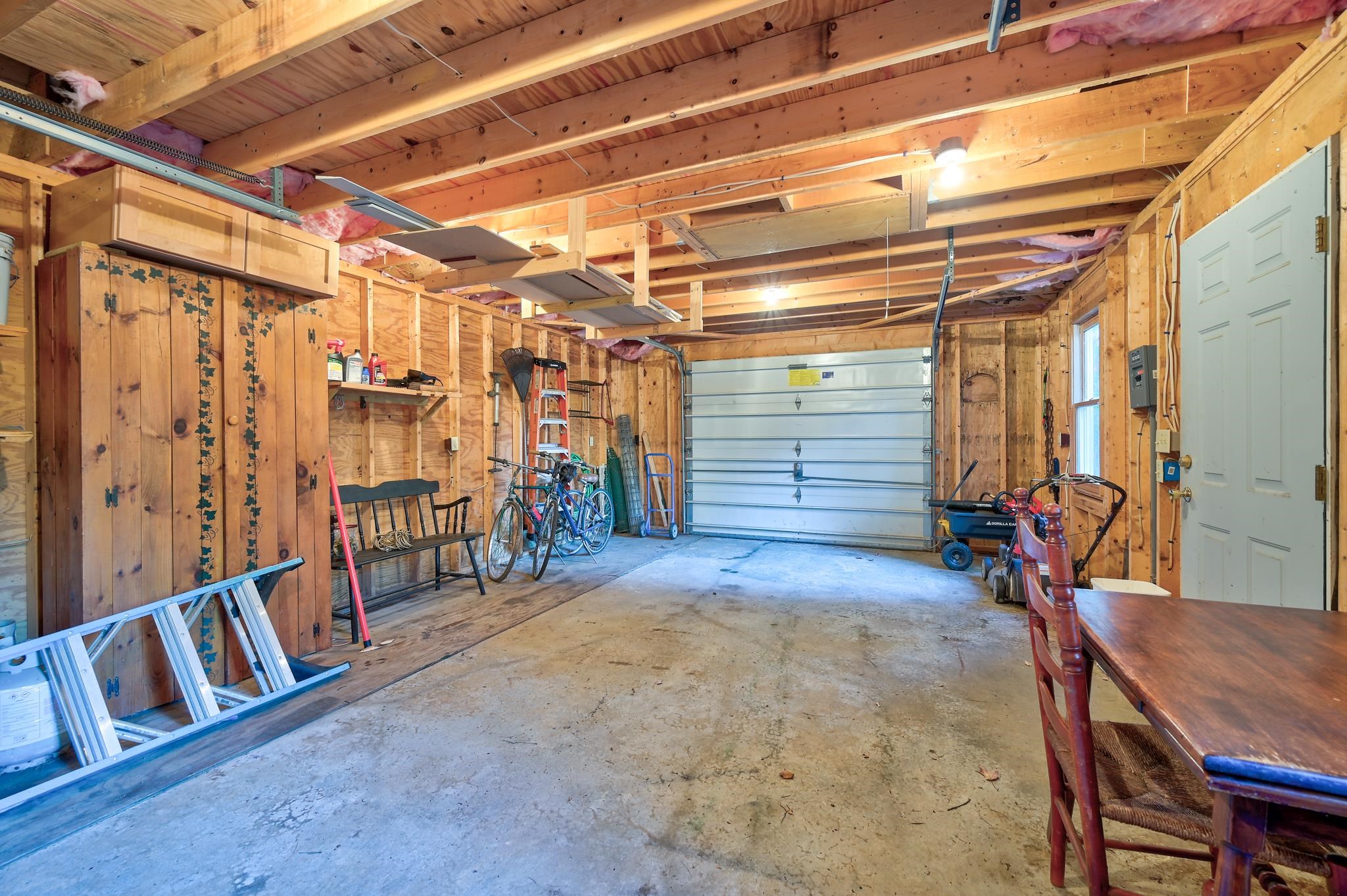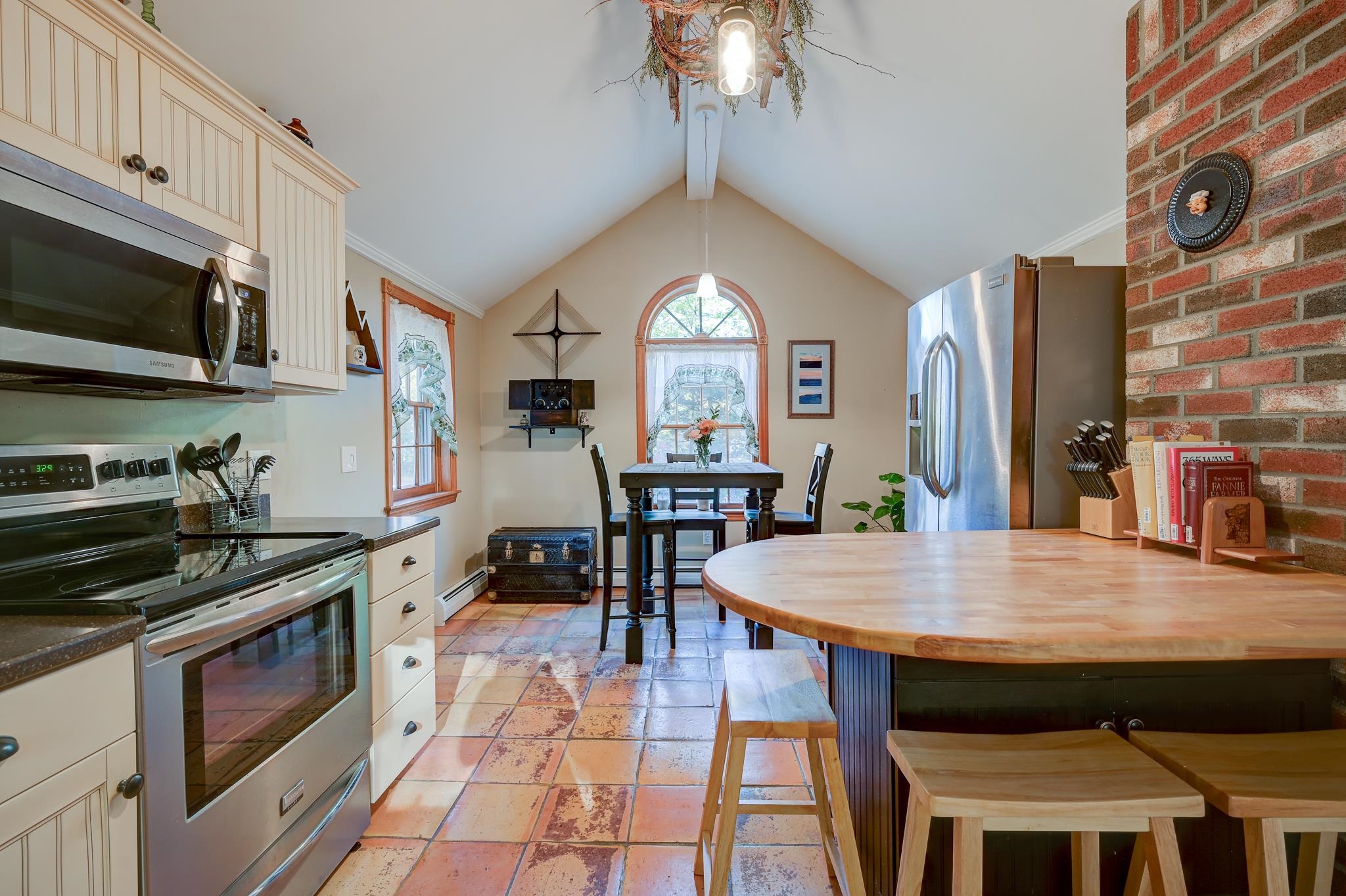 Cozy North Conway bungalow with storybook charm and modern comfort. Located on the North Conway Village side of convenient West Side Road, this 2-bedroom, 1-bath home captures the best of White Mountains living. Enter in through the mudroom with room to store your gear, then into the home. The bright kitchen feels both nostalgic and fresh, with just the right mix of character and updates. Tall ceilings, brick chimney, beadboard cabinets, stainless steel appliances, and an apron sink all lend to the charm. The living room has wide pine floors, a cozy woodstove with a floor-to-ceiling stone hearth, and custom built-in bookshelves. Perfect space to grab a book and curl up by the fire and watch the snow fall through the glass door facing towards the backyard. A laundry room and full bathroom separate the 2 bedrooms. Step outside to find a spacious yard surrounded by mature trees, which is truly the highlight of the property! With .67 acres, there's room for gardens, a firepit area to watch the stars, and a gazebo with seating (also wired for a hot tub!) Can't forget to mention the barn/garage in the fully fenced backyard with 2 doors to pull through with a car, lawnmower, snowmobiles, and any toys you want! Or use it as a game room or hangout space. Good things come in small packages! Sold fully furnished.