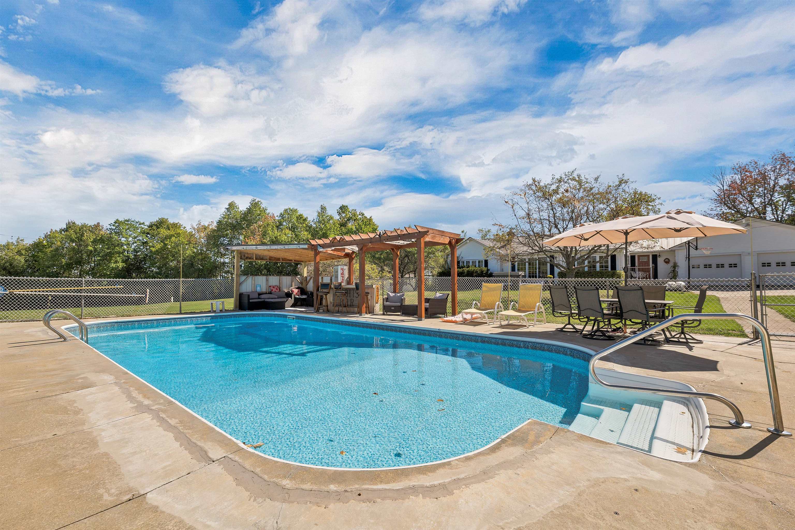 Love to golf, or enjoy taking a swim? Here at 22 N. Town Farm Road, you can do both! Known as East Oxford Highlands Country Club to locals, this single family ranch offers the best of home living and vacation, all in one! Starting in the main house, enjoy the abundant natural light that shines throughout the open-concept living area. The kitchen has been updated with waterproof vinyl plank flooring, an impressive 5-burner gas range, modern touchscreen refrigerator, tile backsplash, and an eat-in island. Hardwood floors flow between the living and dining area, plus step out the new sliding door to the patio, currently set up with a hot tub, and the front yard. Just off the mudroom is the primary suite, with a private bathroom and a walk-in closet. The other two bedrooms, plus a full bath and the stacked washer/dryer are located on the other side of the house. Heading down to the finished basement, kick back and relax with a game of pool or darts, all while watching the game or enjoying family movie night. Around the back of the home is the in-law apartment, a charming one bedroom, one-bath space with a deck that looks out to the pond in the backyard. A whopping 7 acres, this property is home to a personal 9-hole golf course, and an impressive fenced saltwater in-ground pool complete with a cabana and bar area! For the outdoor enthusiasts who love a toy with a motor, the ATV and snowmobile (ITS89) trail systems abut this property. Part of the MSAD#17 school district.