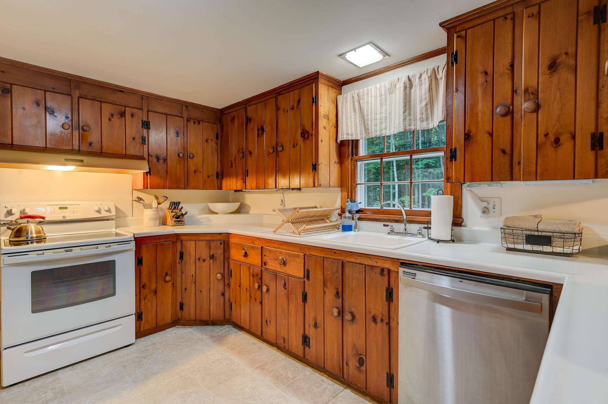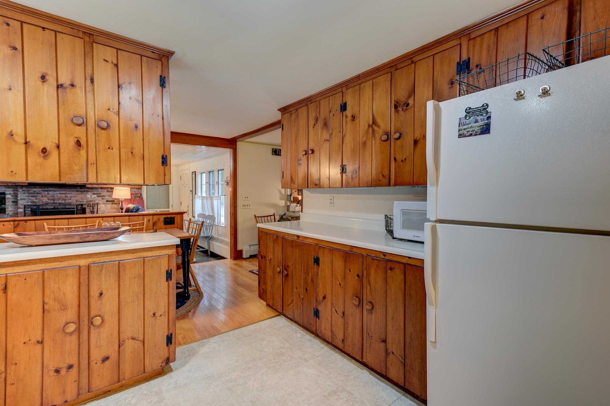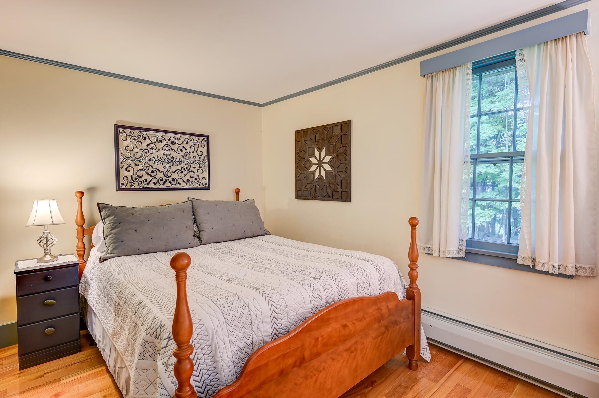 Seasonal Rental November 1-May 5th $13,567 for the season. Adorable and charming rental in prime North Conway location. Fully furnished and ready to move in, enjoy this ski season less than two miles to the base of Cranmore Mountain! This cottage cape is clean, cozy and has been incredibly well maintained. The living room features an inviting sectional sofa with wood burning fireplace and large brick hearth. The large windows with glass sliders leading out to the back patio and level backyard. The kitchen is nicely sized with tons of cabinet and counter space and fully equipped, ready for your home cooked cozy winter meals. The formal dining room off the kitchen is a wonderful space to gather with friends and family. The primary bedroom is comfortable with a convenient half bath, and the second bedroom is spacious with a wall of built-ins for great closet space. Also in the hall is a shared full bathroom. The garage provides extra storage and convenience for your vehicle in the winter months. Come and see!