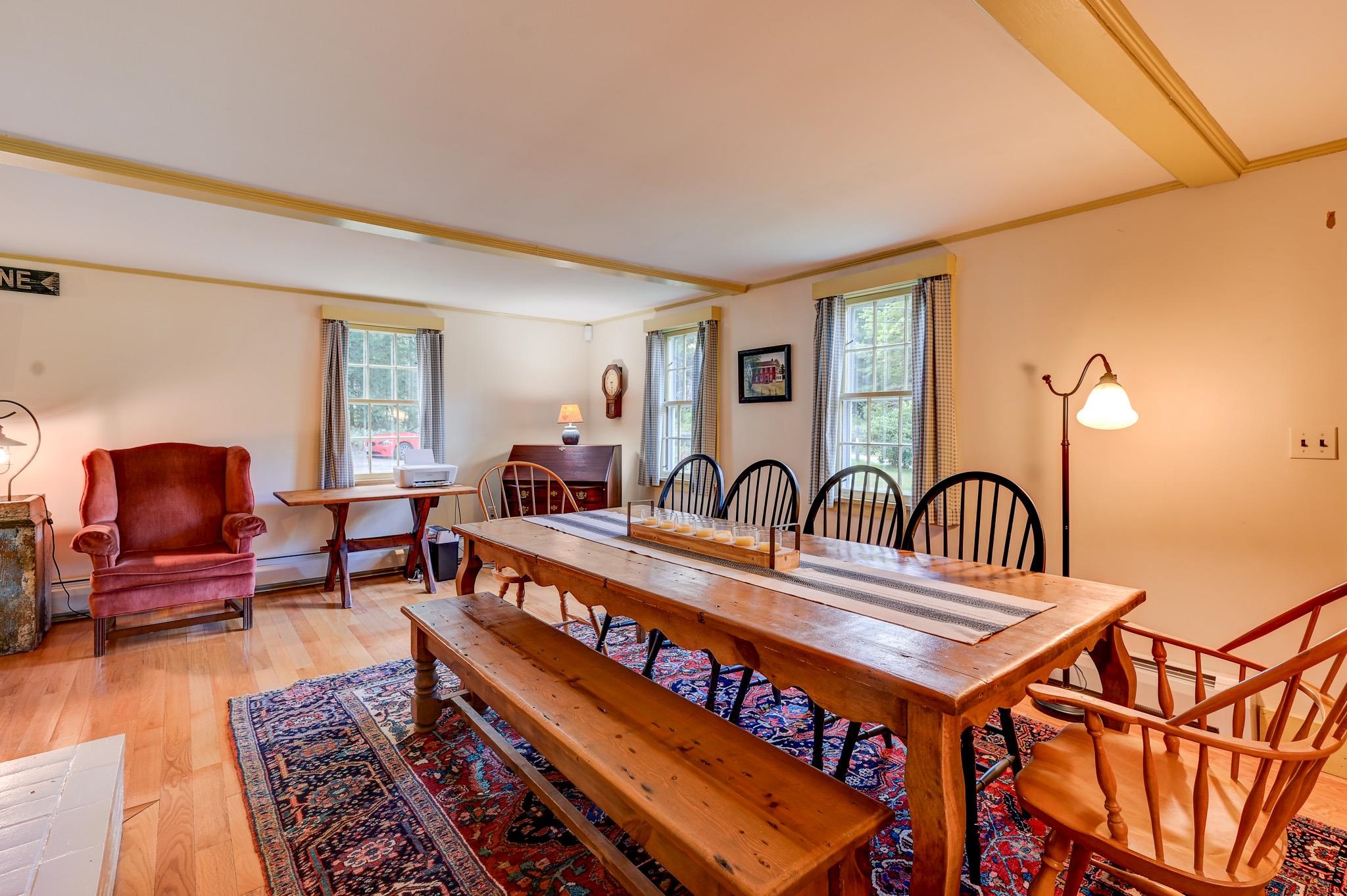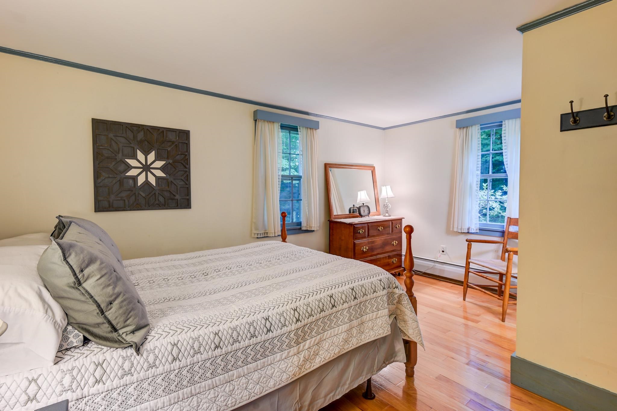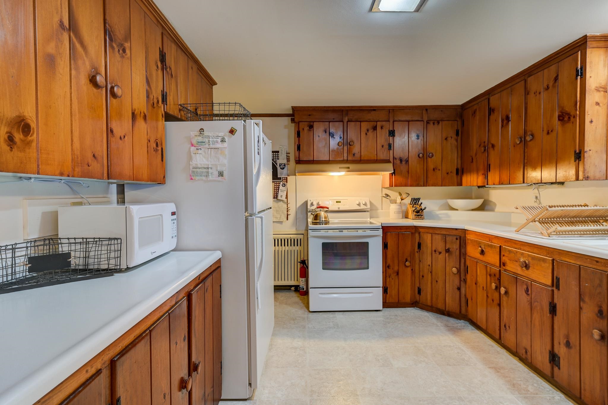 Seasonal Rental November 1-May 5th $13,567 for the season. Adorable and charming rental in prime North Conway location. Fully furnished and ready to move in, enjoy this ski season less than two miles to the base of Cranmore Mountain! This cottage cape is clean, cozy and has been incredibly well maintained. The living room features an inviting sectional sofa with wood burning fireplace and large brick hearth. The large windows with glass sliders leading out to the back patio and level backyard. The kitchen is nicely sized with tons of cabinet and counter space and fully equipped, ready for your home cooked cozy winter meals. The formal dining room off the kitchen is a wonderful space to gather with friends and family. The primary bedroom is comfortable with a convenient half bath, and the second bedroom is spacious with a wall of built-ins for great closet space. Also in the hall is a shared full bathroom. The garage provides extra storage and convenience for your vehicle in the winter months. Come and see!