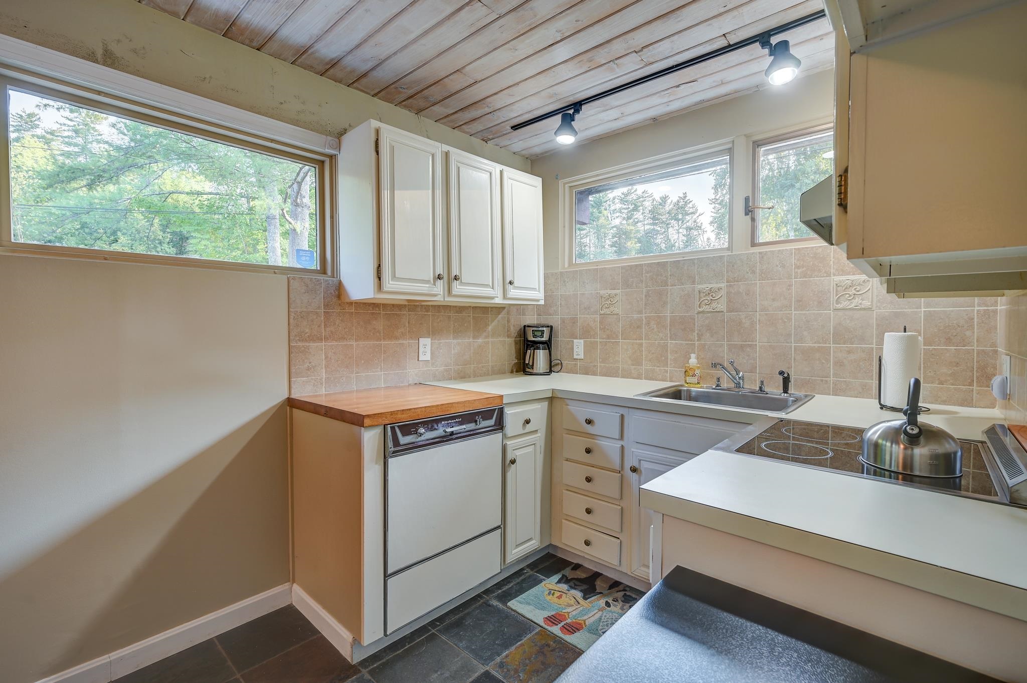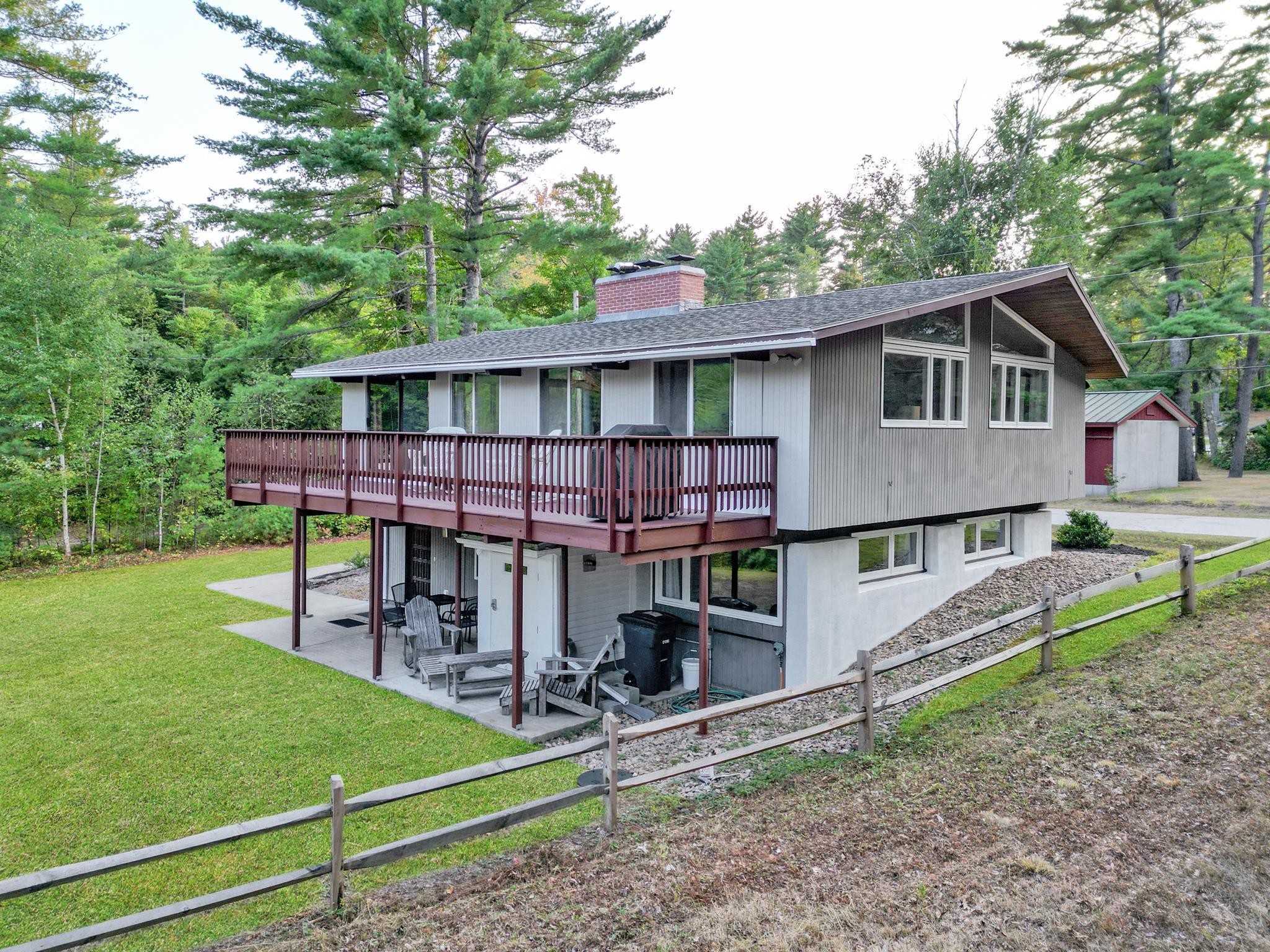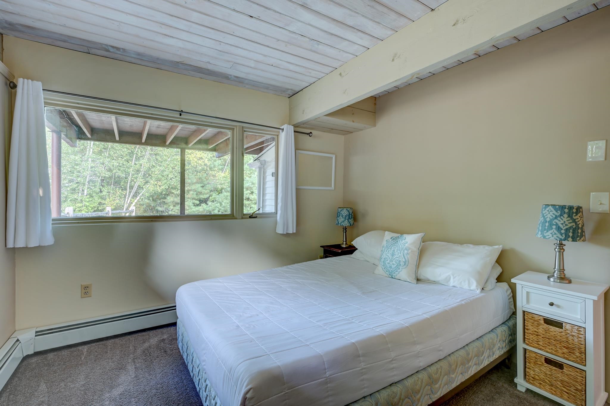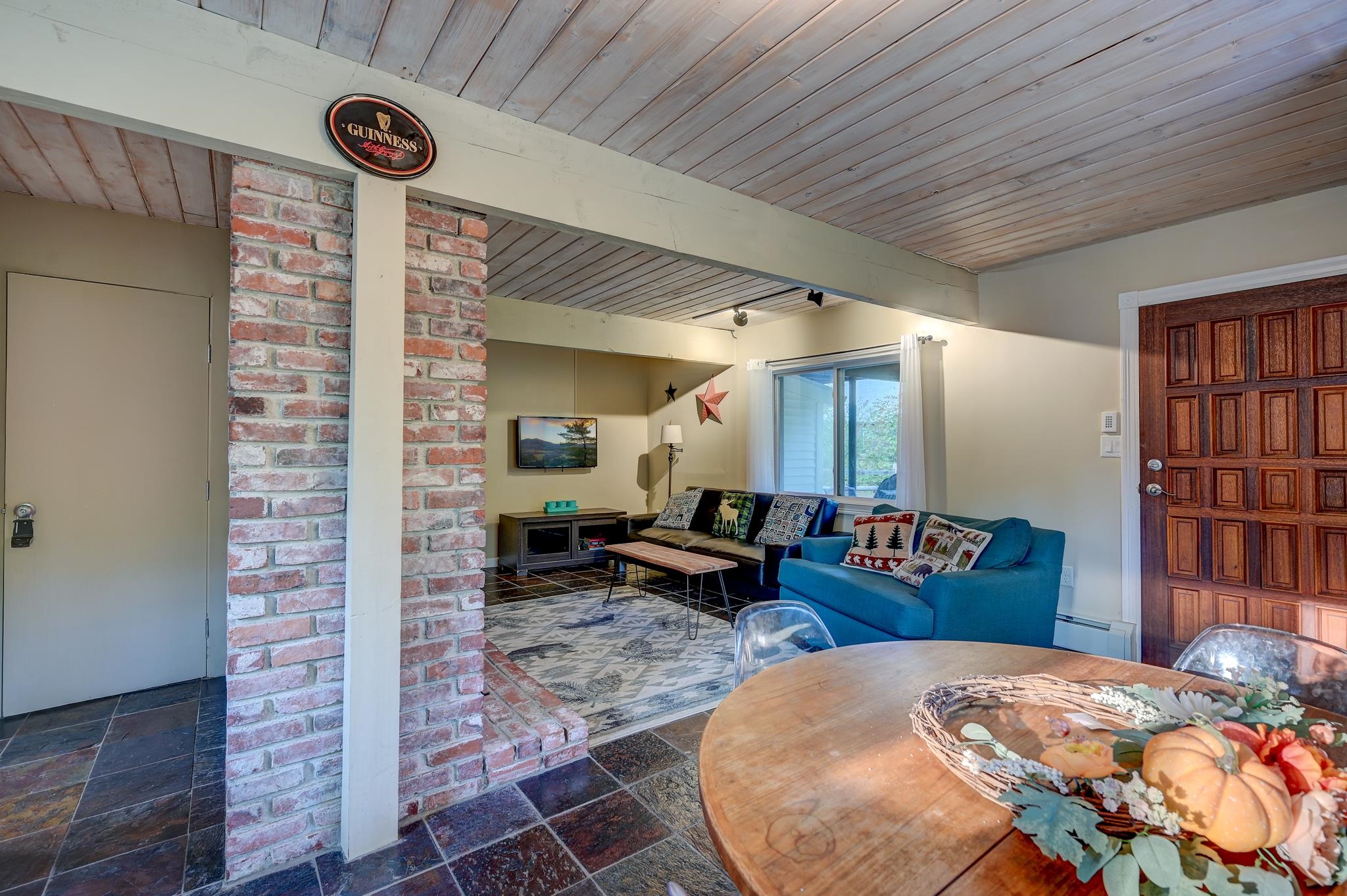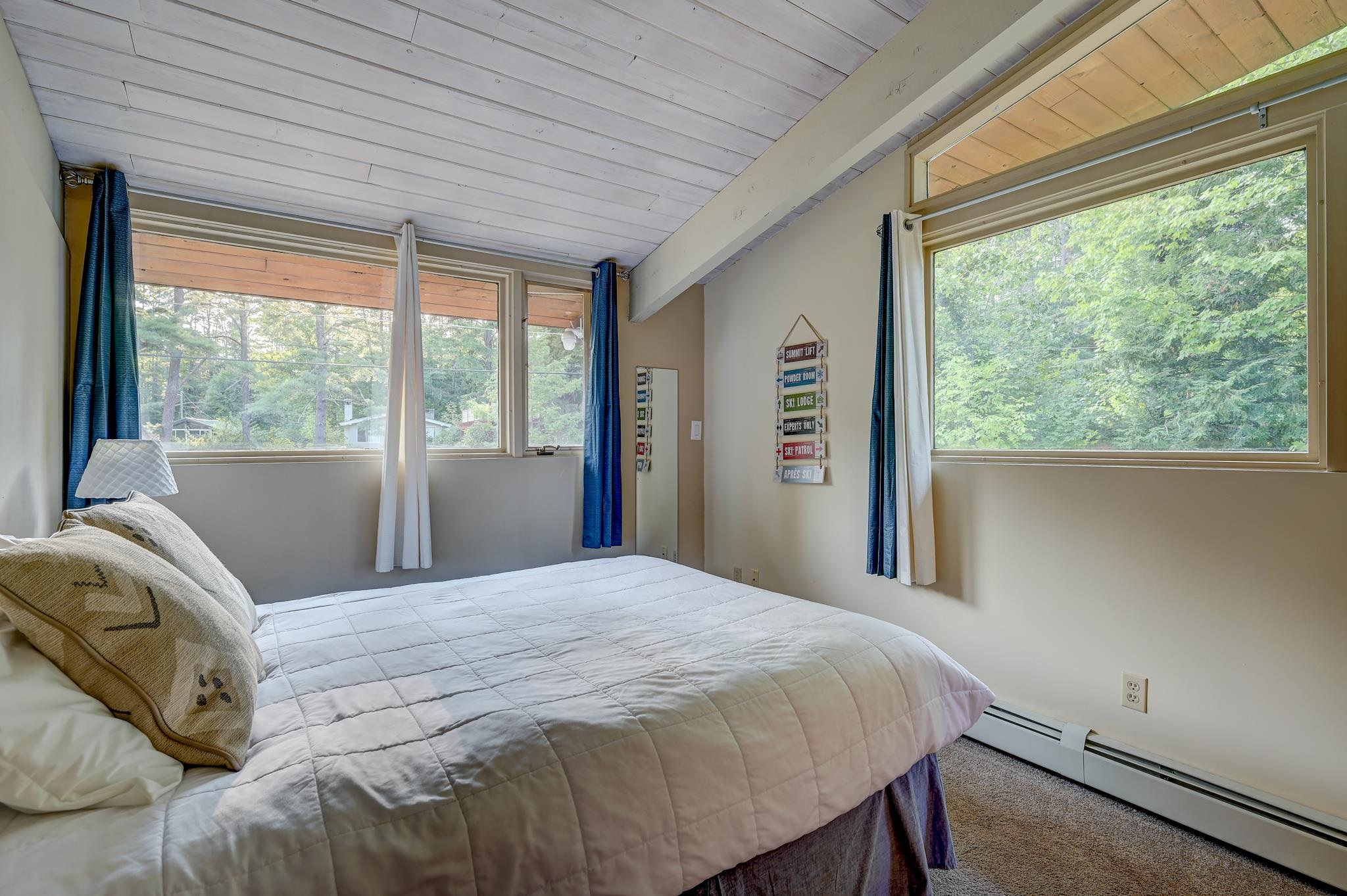 If you've been looking for your Cranmore Mountain home base, you've found it! This charming contemporary is set in one of North Conway's most enviable locations, 749 steps (seriously!) from the chairlift line at Cranmore! Designed as the dream vacation getaway, this home has two stories, each designed to function as a separate unit, with 4 total bedrooms, plenty of space for guests. On the main upper level, you'll find a bright and open living space with cathedral ceilings, plenty of oversized windows that pour in natural light, a cozy wood-burning fireplace tucked into a floor-to-ceiling brick surround, a full kitchen equipped with granite countertops, stainless steel appliances, and ample cabinet space. Sliders lead out to a freshly painted deck. There are two nice-sized bedrooms upstairs, both kept airy and bright by tall ceilings. A full bathroom with stacked laundry is in the hall. Downstairs, you'll find a similar layout with a second wood-burning fireplace in the cozy living area, a kitchen with an electric range, dishwasher, and mini-fridge, plus two additional bedrooms. The backyard has plenty of level space for games, and a large storage shed for your off-season toys. Enjoy year-round recreation at the mountain, including the paved 2.9 mile MWV Rec Path. Come and enjoy North Conway's fastest-growing area at a fraction of the price of the new construction homes that surround it!