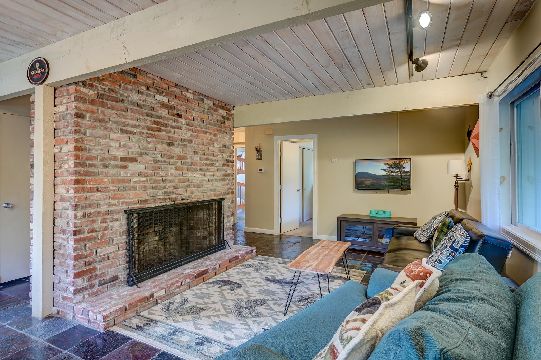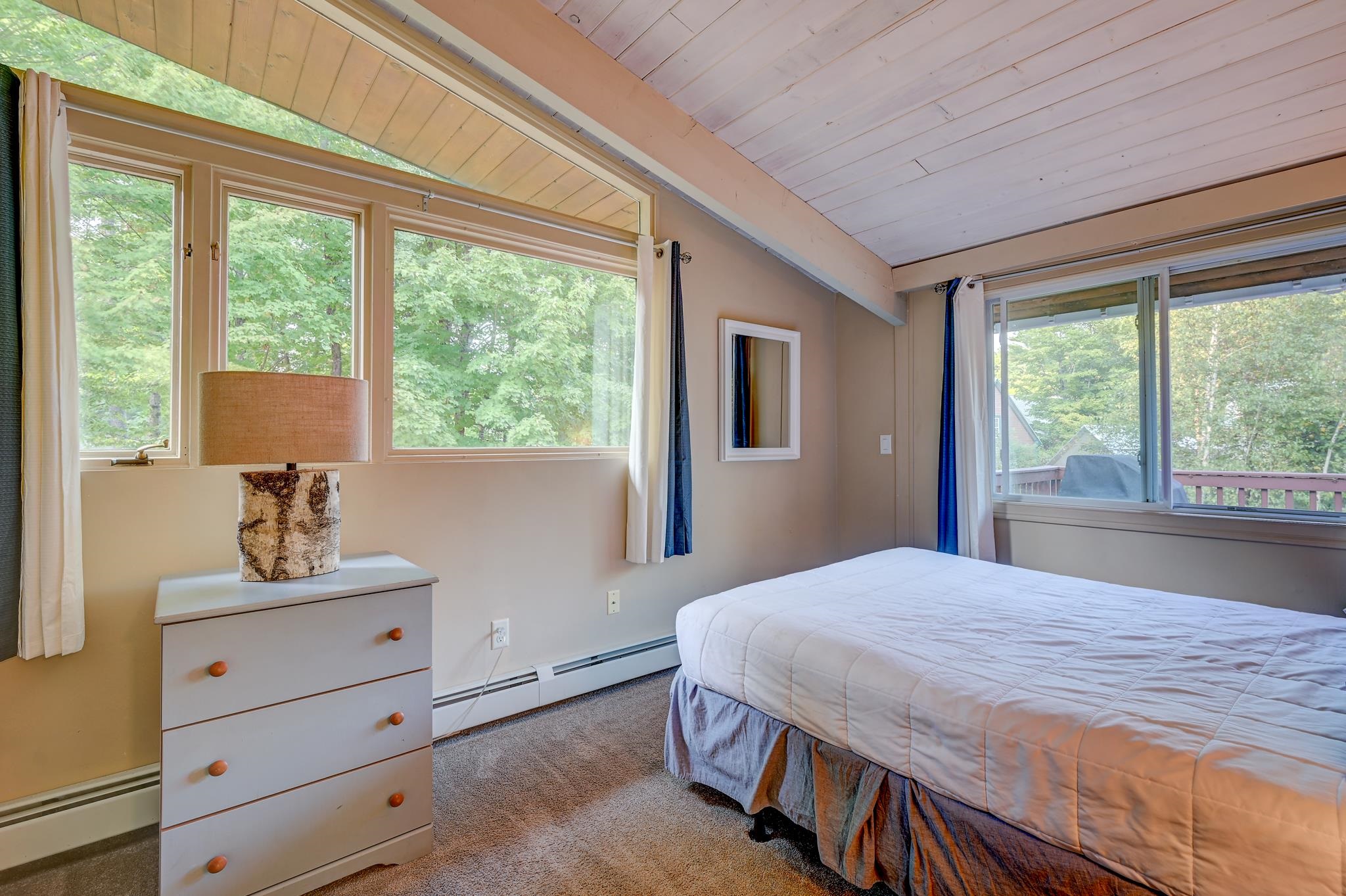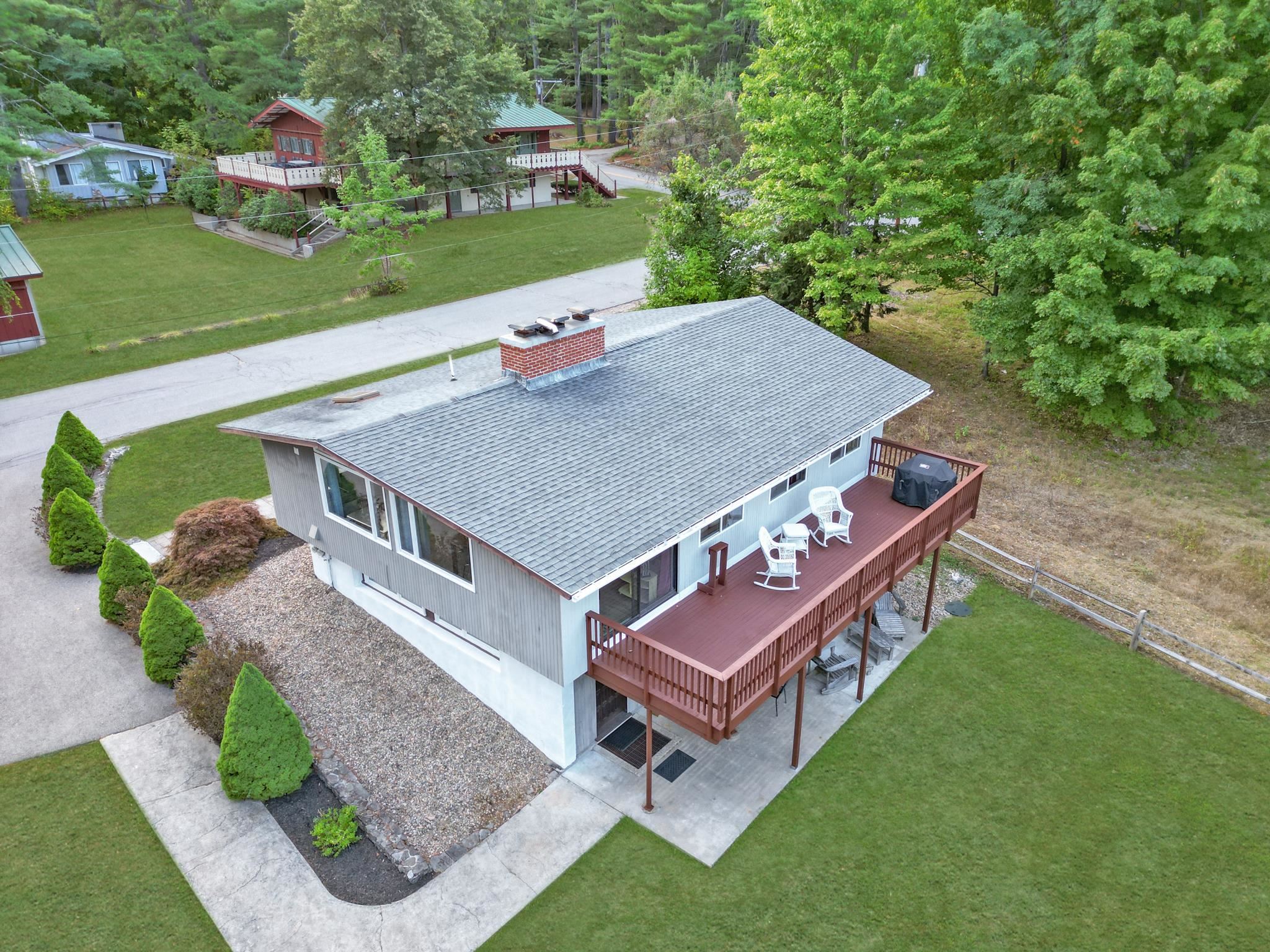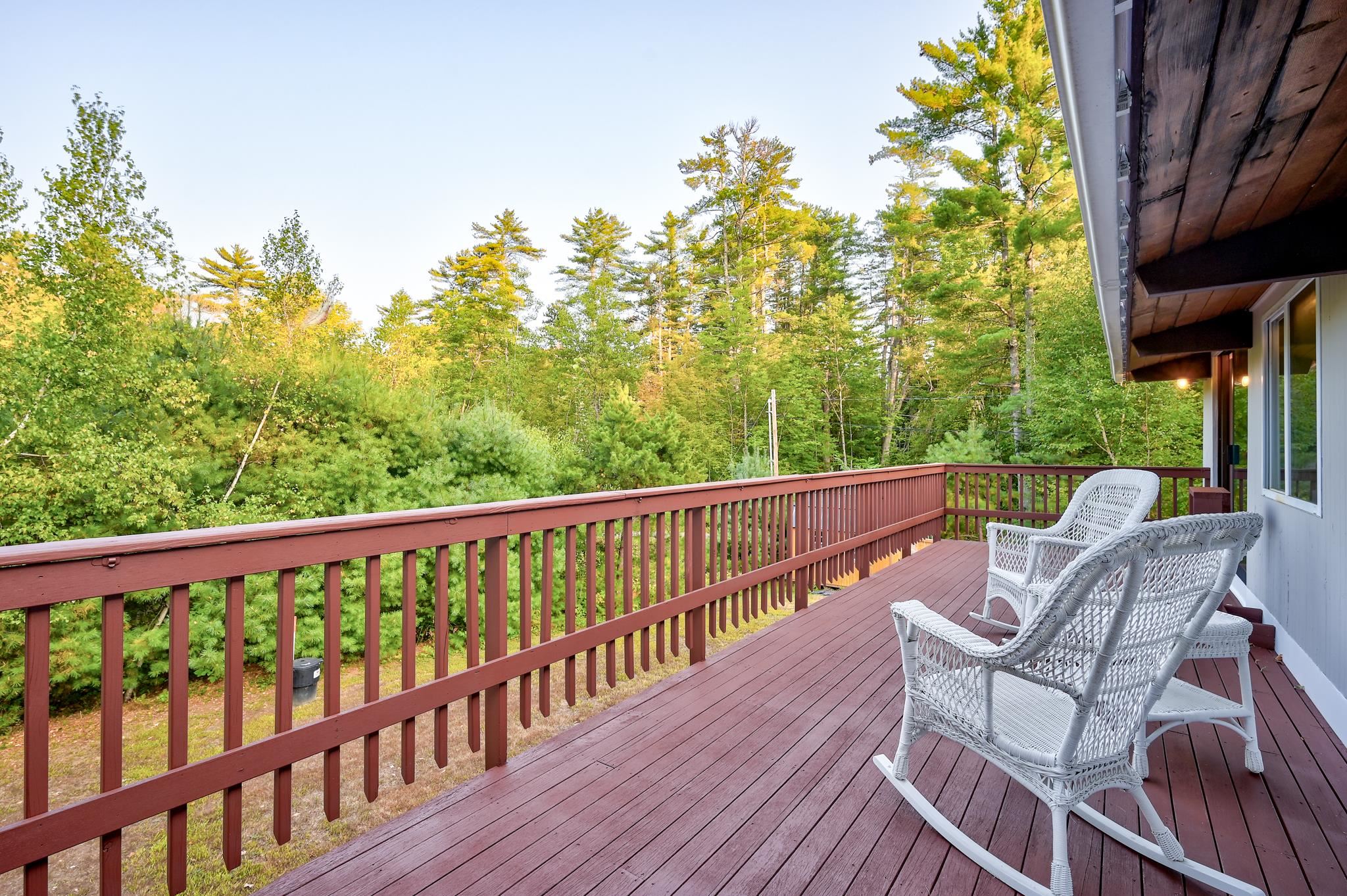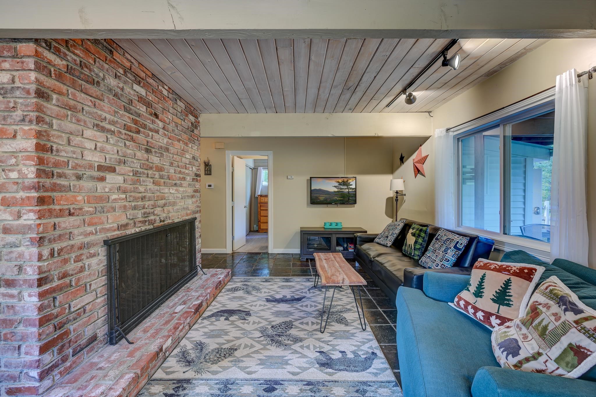 If you've been looking for your Cranmore Mountain home base, you've found it! This charming contemporary is set in one of North Conway's most enviable locations, 749 steps (seriously!) from the chairlift line at Cranmore! Designed as the dream vacation getaway, this home has two stories, each designed to function as a separate unit, with 4 total bedrooms, plenty of space for guests. On the main upper level, you'll find a bright and open living space with cathedral ceilings, plenty of oversized windows that pour in natural light, a cozy wood-burning fireplace tucked into a floor-to-ceiling brick surround, a full kitchen equipped with granite countertops, stainless steel appliances, and ample cabinet space. Sliders lead out to a freshly painted deck. There are two nice-sized bedrooms upstairs, both kept airy and bright by tall ceilings. A full bathroom with stacked laundry is in the hall. Downstairs, you'll find a similar layout with a second wood-burning fireplace in the cozy living area, a kitchen with an electric range, dishwasher, and mini-fridge, plus two additional bedrooms. The backyard has plenty of level space for games, and a large storage shed for your off-season toys. Enjoy year-round recreation at the mountain, including the paved 2.9 mile MWV Rec Path. Come and enjoy North Conway's fastest-growing area at a fraction of the price of the new construction homes that surround it!
