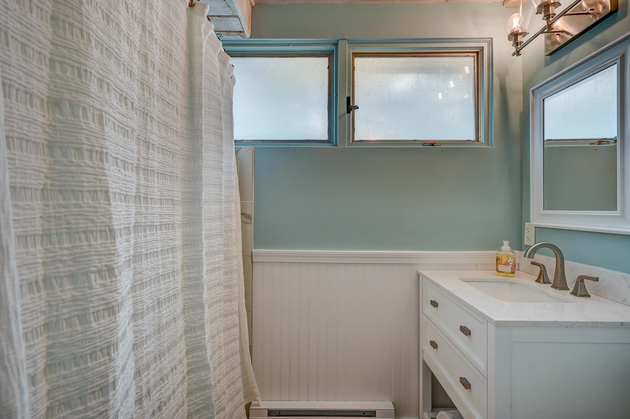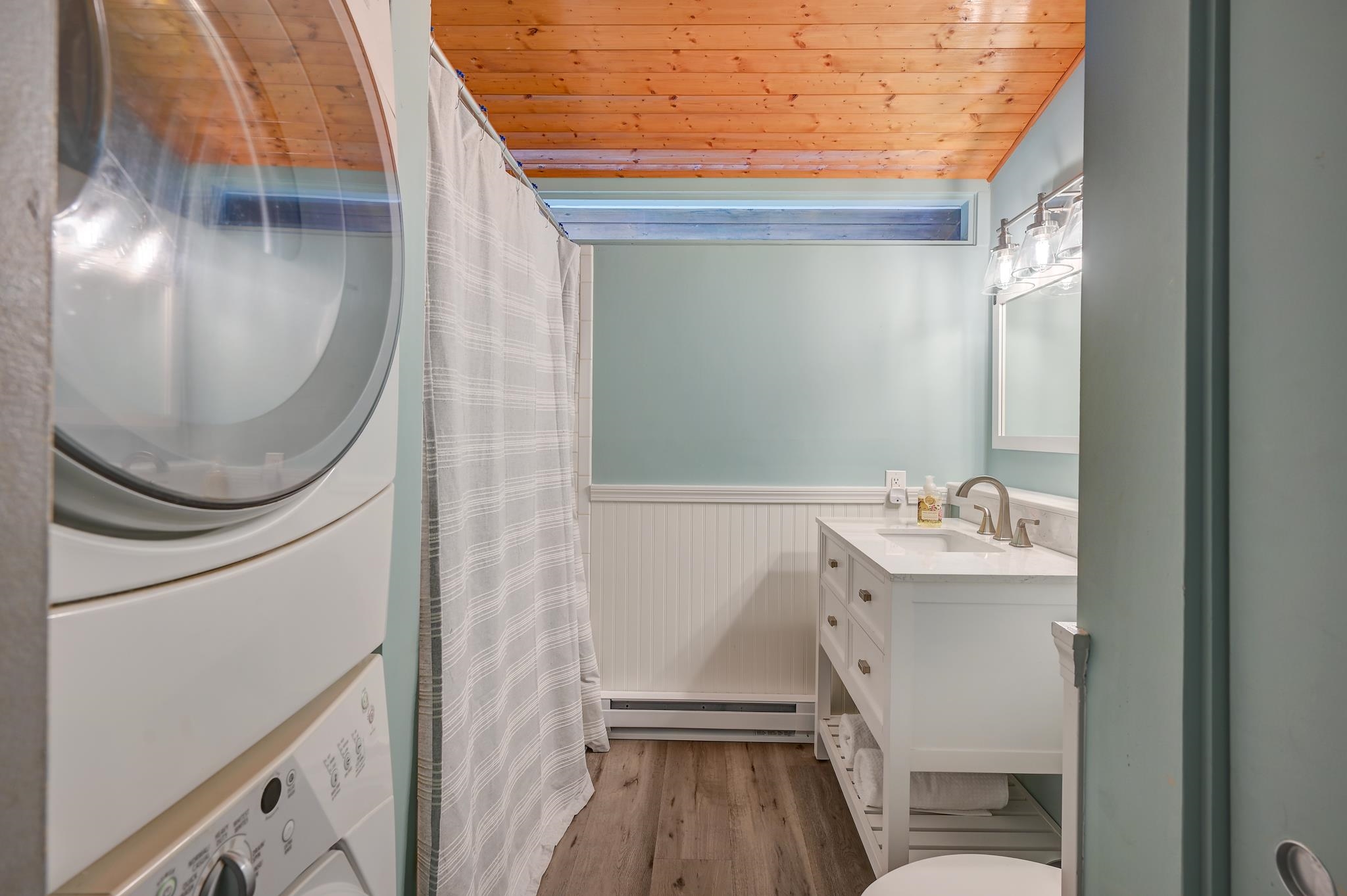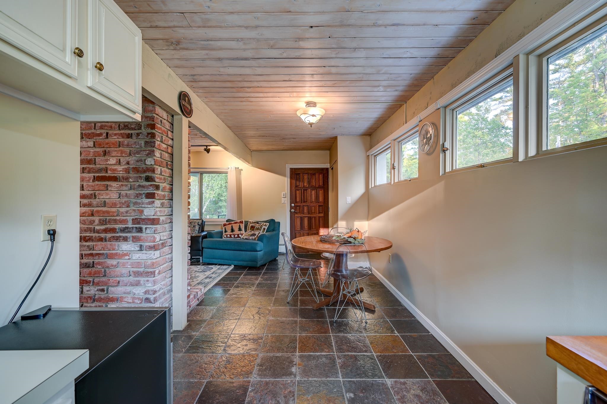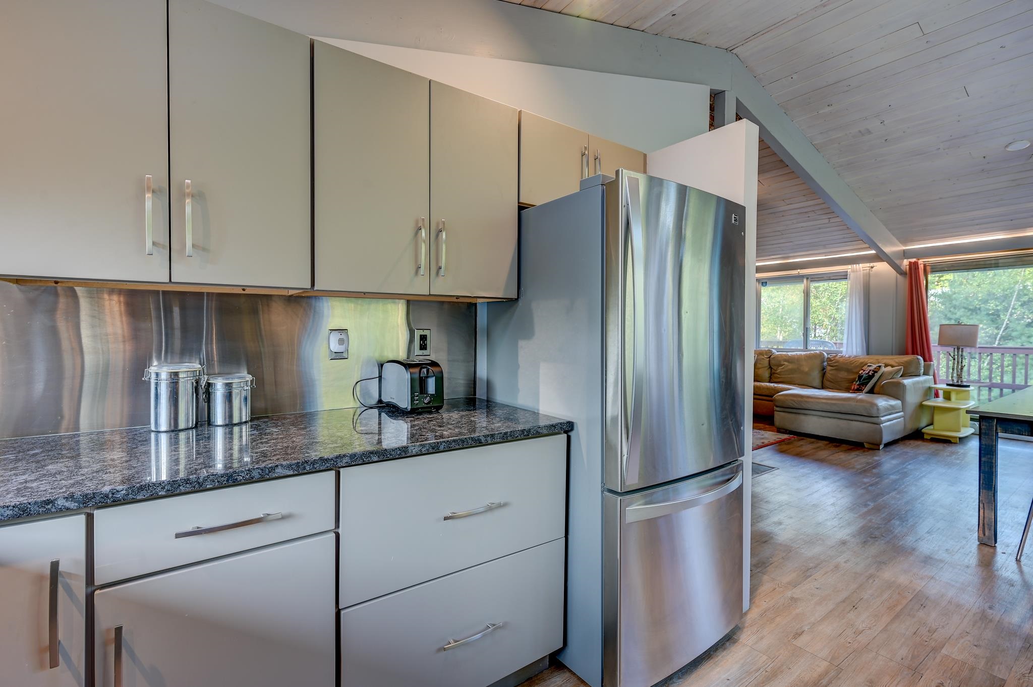 If you've been looking for your Cranmore Mountain home base, you've found it! This charming contemporary is set in one of North Conway's most enviable locations, 749 steps (seriously!) from the chairlift line at Cranmore! Designed as the dream vacation getaway, this home has two stories, each designed to function as a separate unit, with 4 total bedrooms, plenty of space for guests. On the main upper level, you'll find a bright and open living space with cathedral ceilings, plenty of oversized windows that pour in natural light, a cozy wood-burning fireplace tucked into a floor-to-ceiling brick surround, a full kitchen equipped with granite countertops, stainless steel appliances, and ample cabinet space. Sliders lead out to a freshly painted deck. There are two nice-sized bedrooms upstairs, both kept airy and bright by tall ceilings. A full bathroom with stacked laundry is in the hall. Downstairs, you'll find a similar layout with a second wood-burning fireplace in the cozy living area, a kitchen with an electric range, dishwasher, and mini-fridge, plus two additional bedrooms. The backyard has plenty of level space for games, and a large storage shed for your off-season toys. Enjoy year-round recreation at the mountain, including the paved 2.9 mile MWV Rec Path. Come and enjoy North Conway's fastest-growing area at a fraction of the price of the new construction homes that surround it!