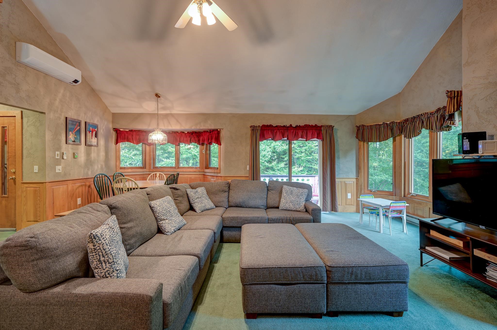 Spacious 2+ bedroom condo at Christmas Mountain, with a loft! This larger floor plan offers room for everyone, with two levels of living space. The main floor features a bright living room with cathedral ceilings and a cozy gas stove, a full kitchen, laundry, and a primary suite with walk-in closet and private bath. A second bedroom and full bath complete this level. Upstairs you'll find a versatile loft which is perfect for a playroom, office, or second living room, plus French doors that open to an additional bonus room. Mini-splits provide year-round comfort. Conveniently located in low-tax Bartlett, you'll be minutes from Story Land, Attitash, and just a short drive to North Conway Village. A great opportunity to make this condo your own mountain retreat! Showings begin 9/1 in the late afternoon.