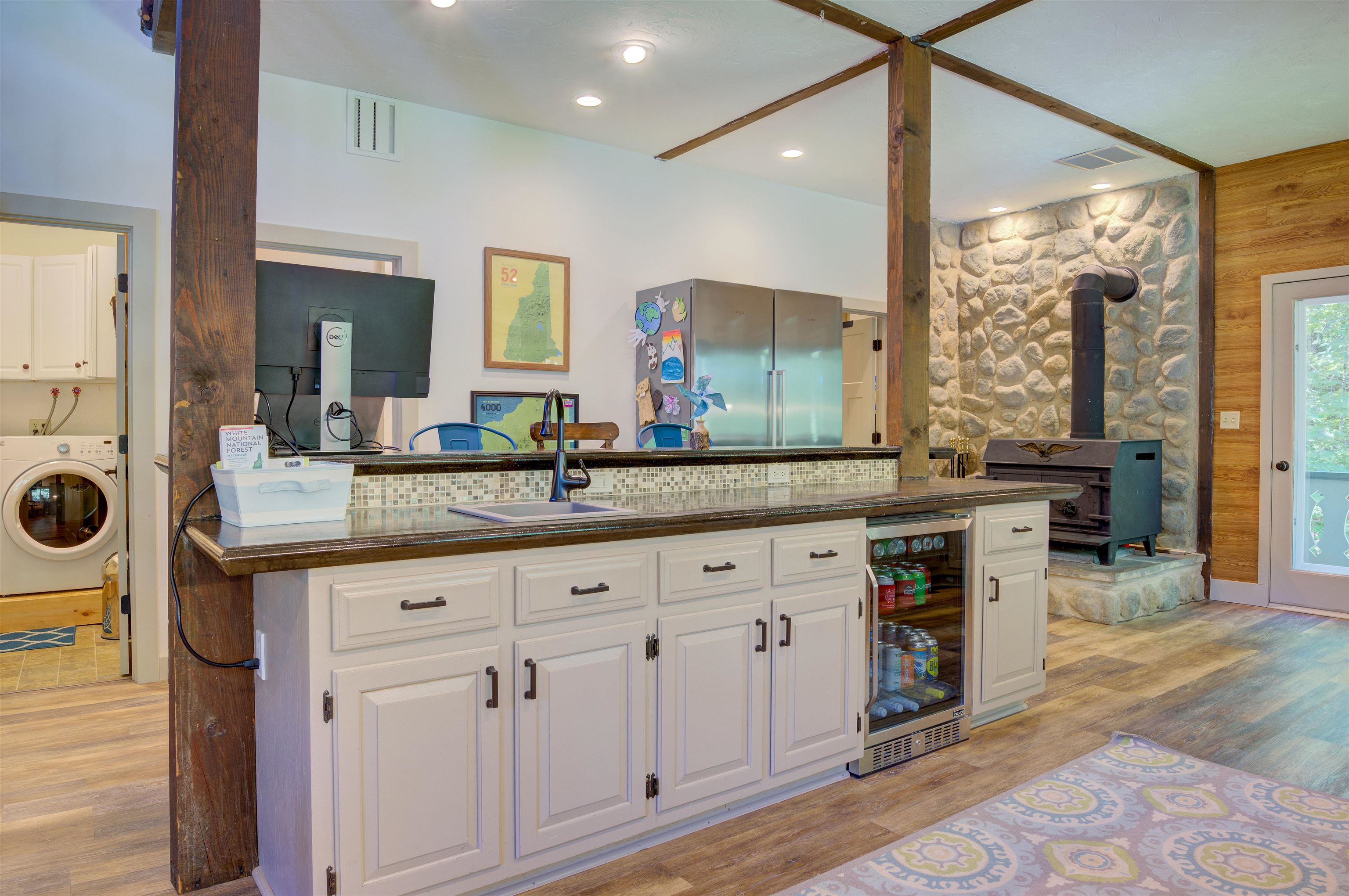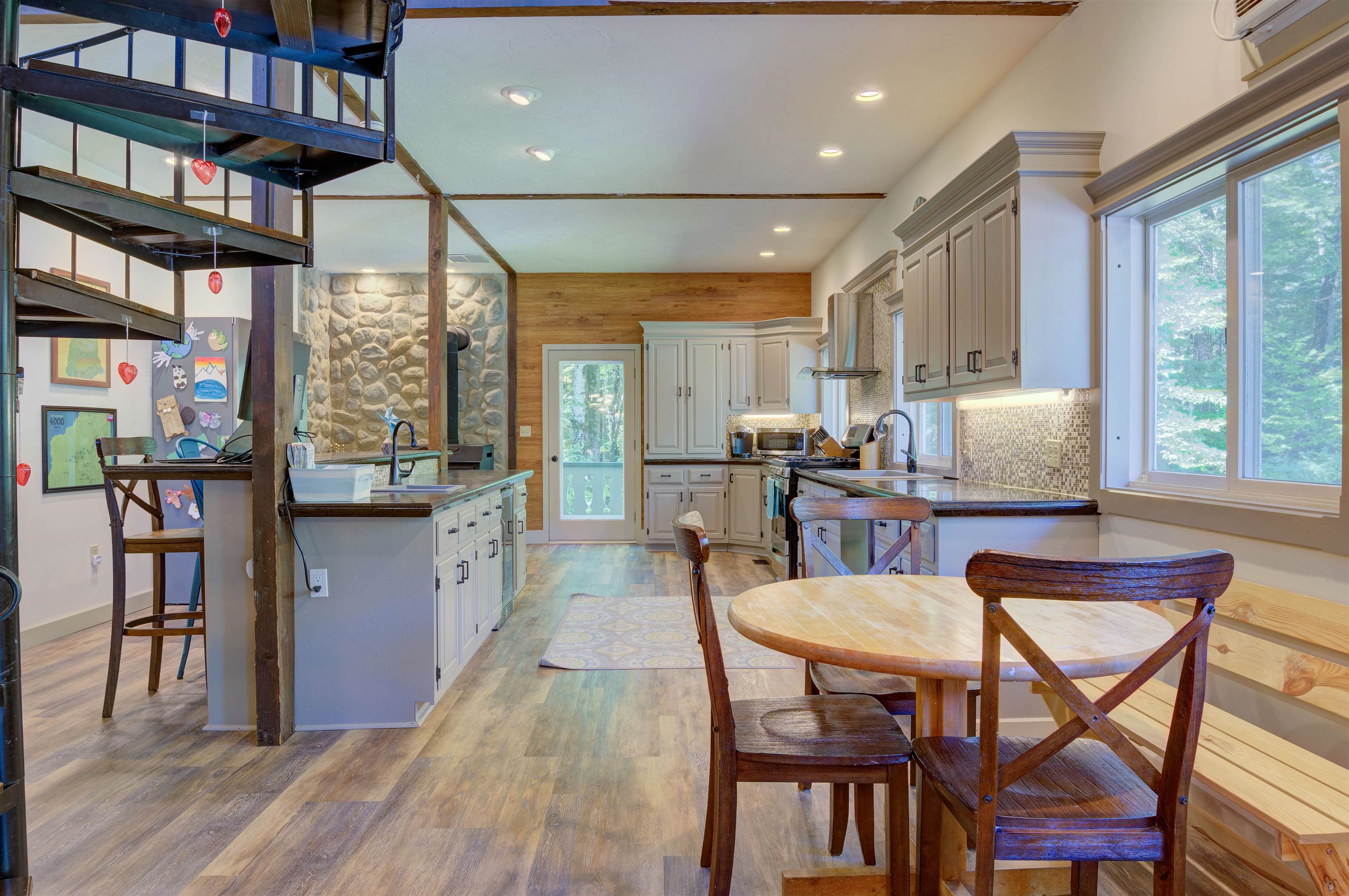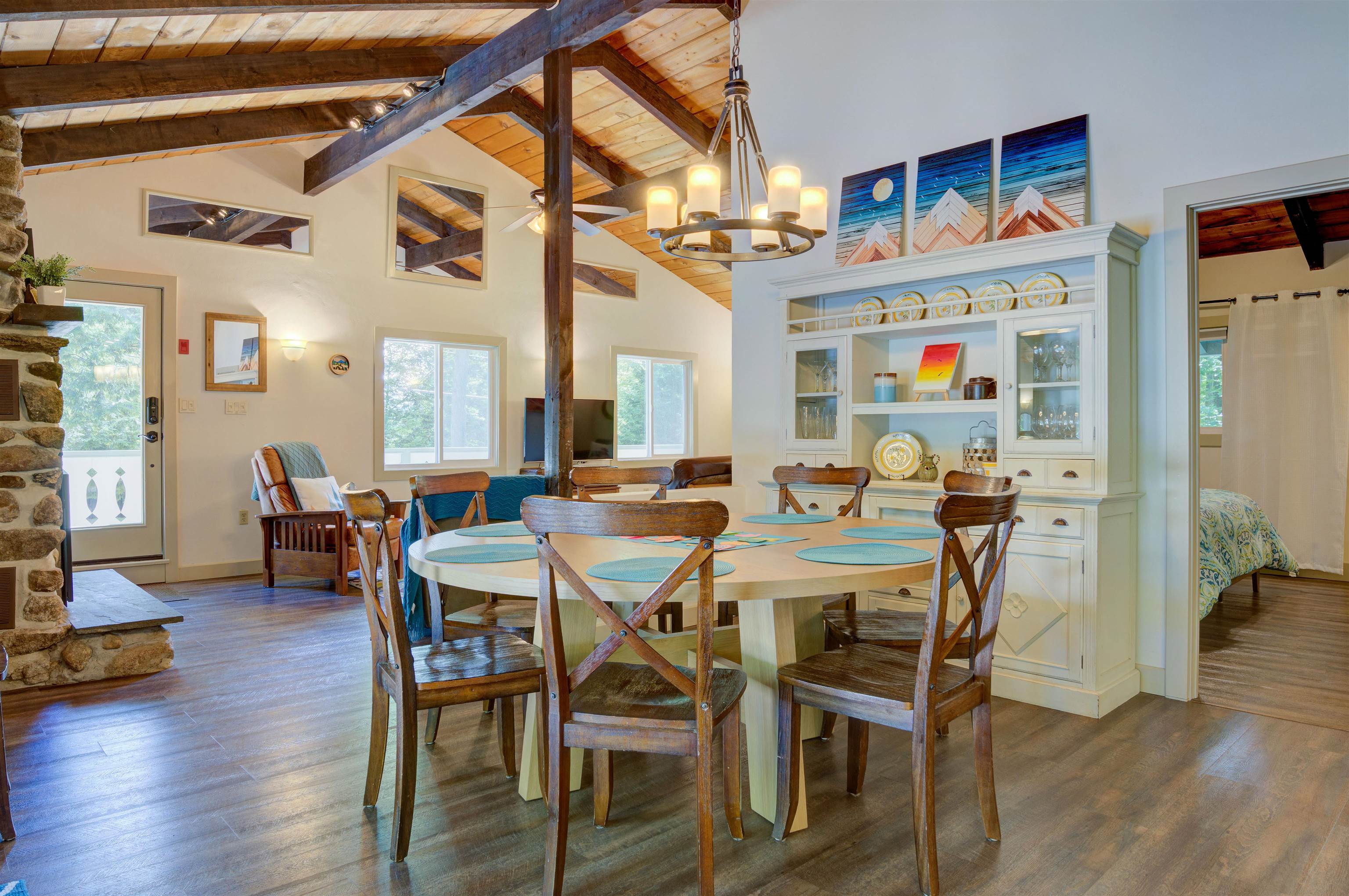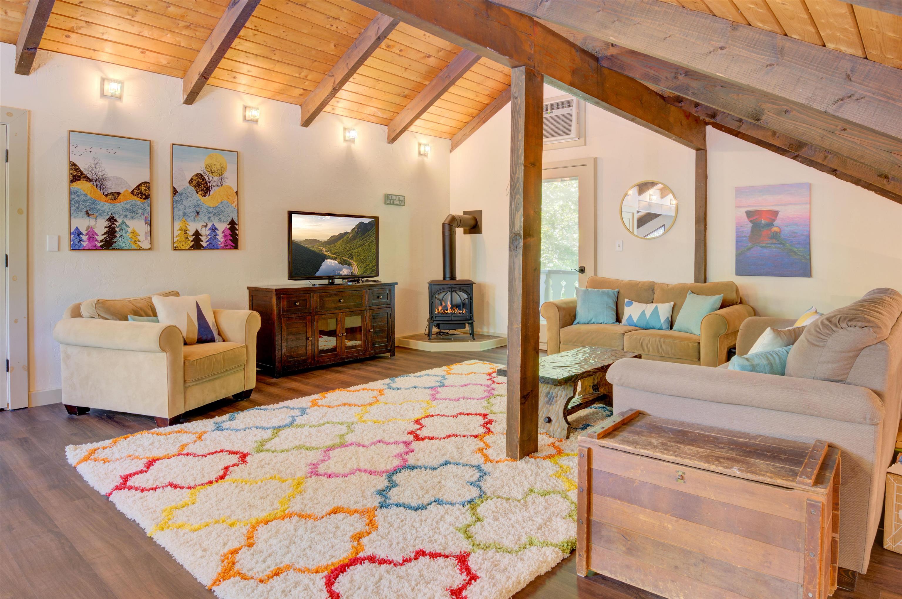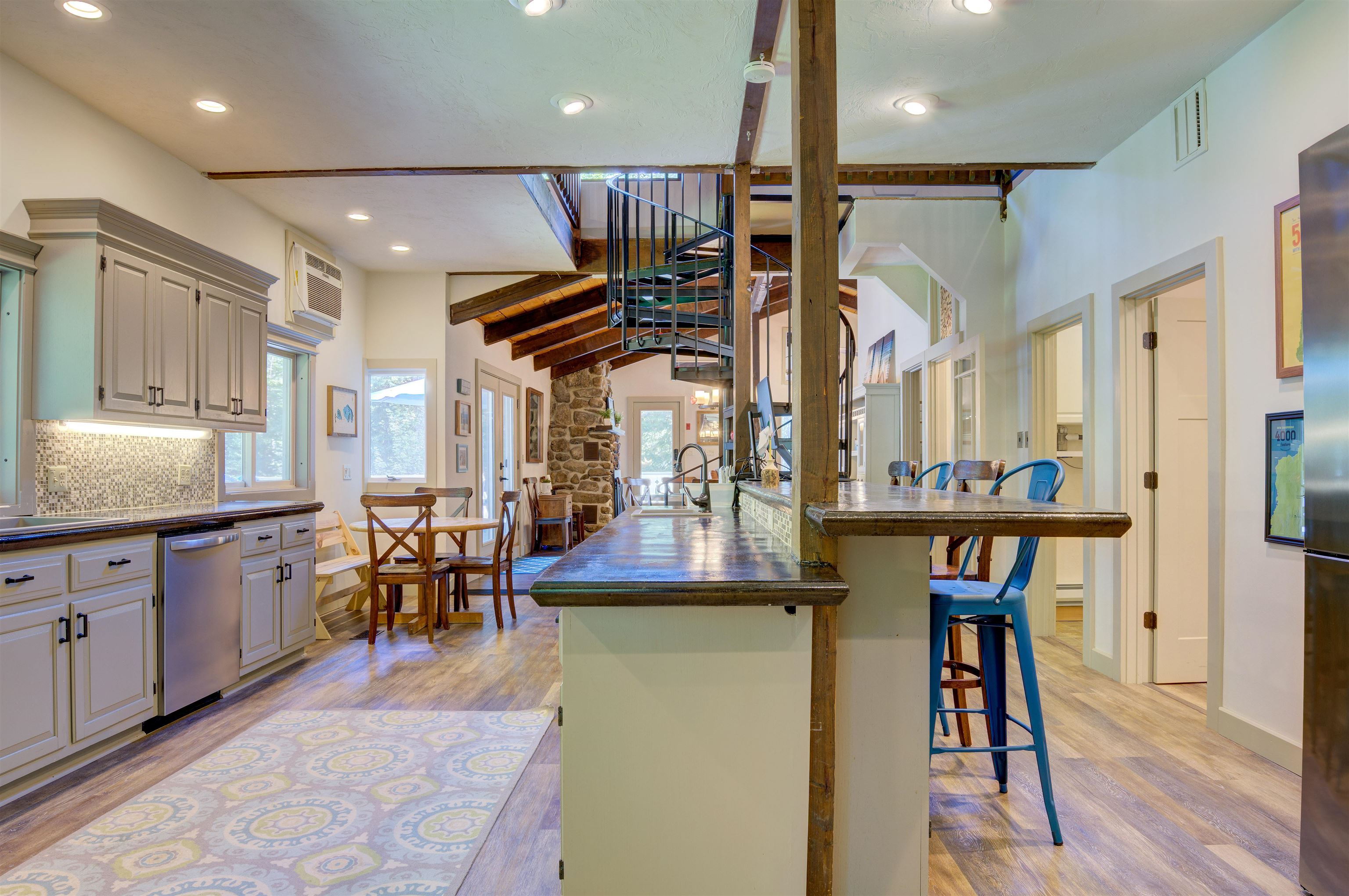 This oversized Eidelweiss Chalet has it all! Enjoy year-round quintessential NH living steps to sandy Thusis Beach on the peaceful shores of Big Pea Porridge Pond where in summer you can swim, fish, and boat (with storage on the beach racks), and in winter you can cross country ski, snowshoe, and ice fish. This house is beautifully updated and includes numerous bedrooms for all your family and friends! The main floor features a spacious living room with gas fireplace, open dining room, expansive modern kitchen, bedrooms, bathrooms, laundry, and a 700 square foot deck for outdoor entertaining. Upstairs is a large family room with gas fireplace that feels both connected to the main level and private. Downstairs has extensive room for guests with plenty of privacy. One half includes a mudroom, bedrooms, and bathroom. The other half is an apartment/in-law suite with bedrooms, living/game room, kitchen, and bathroom. The apartment has separate entrances from both the backyard and garage allowing it to be incorporated into the main home or rented as a separate space. Complemented by a two-car garage and large flat yard with firepit, this home truly offers more than most every other home in this wonderful neighborhood. Get to know your new neighbors at the numerous Eidelweiss community events, including cookouts and concerts on the beach, ice cream socials, and fall foliage walks. Enjoy this incredible house and all the activities the nearby White Mountains have to offer!