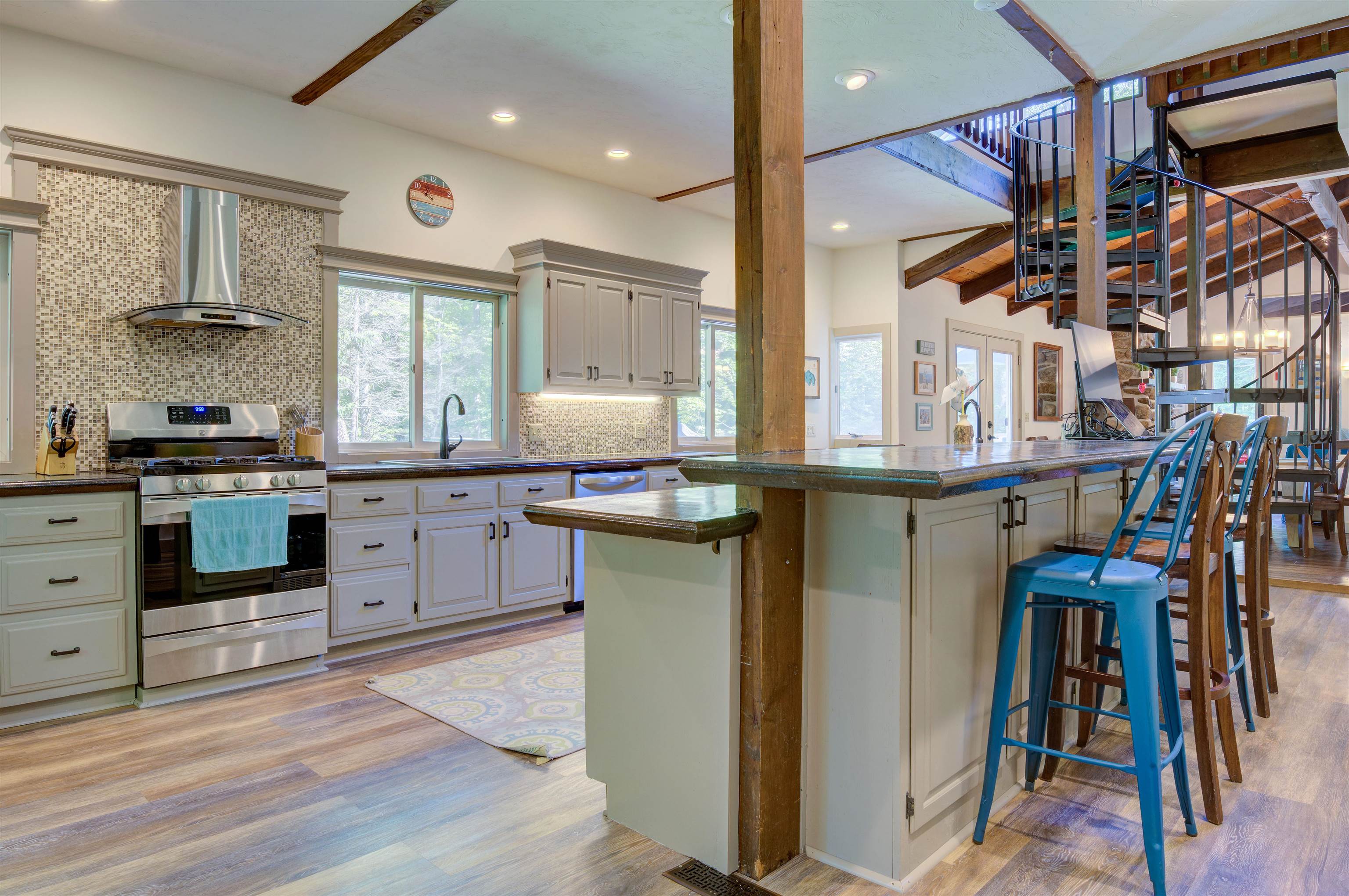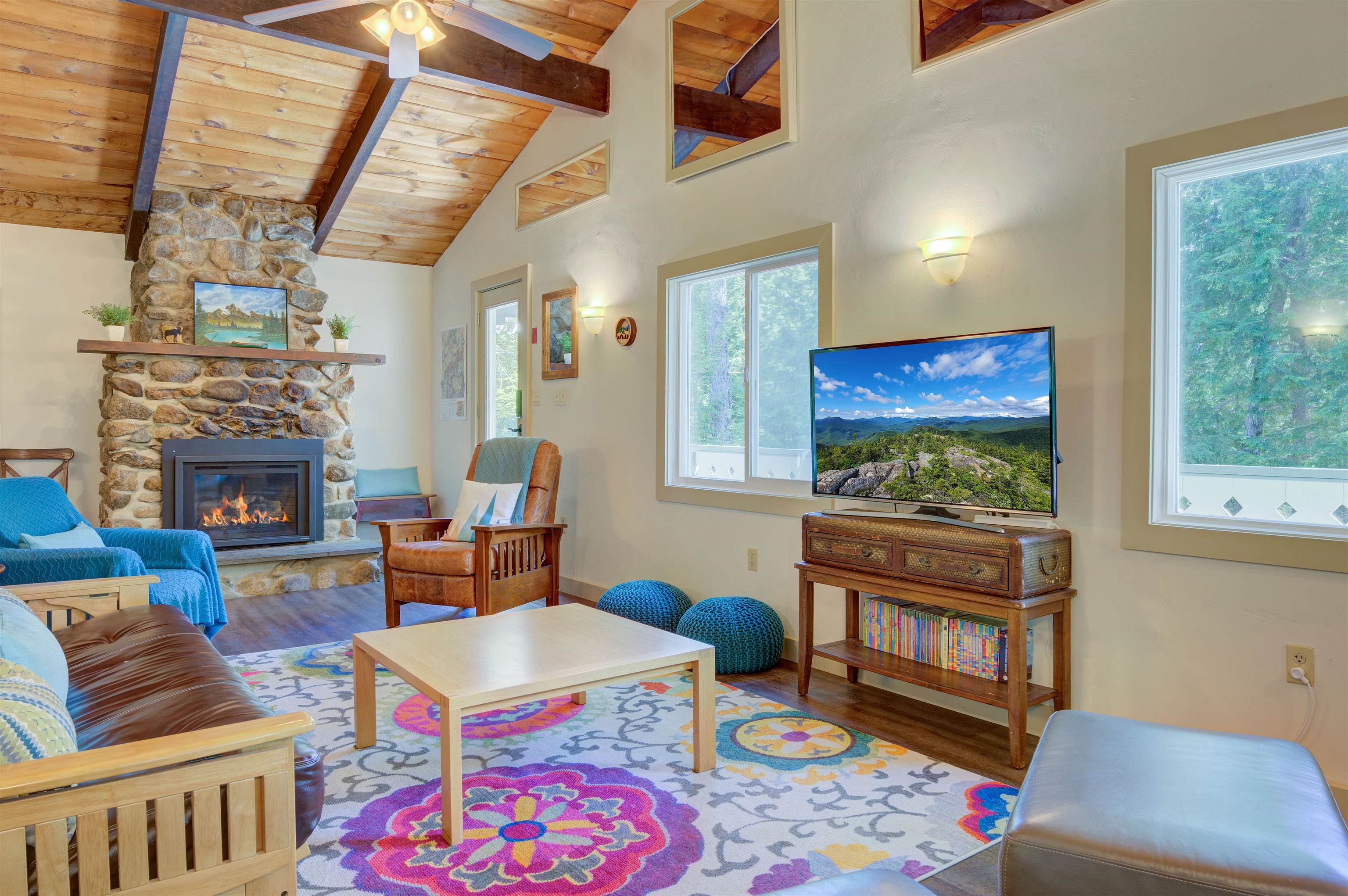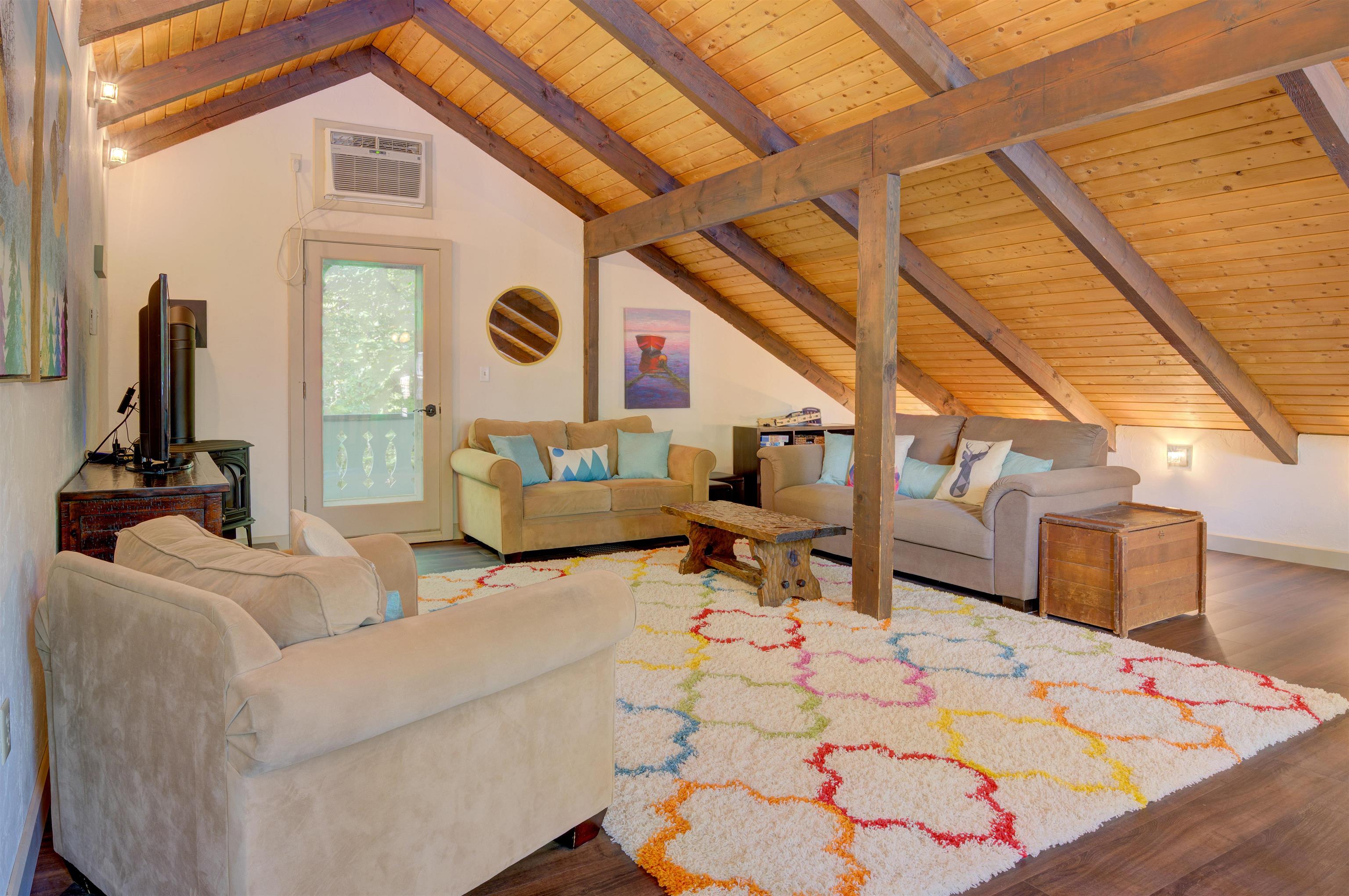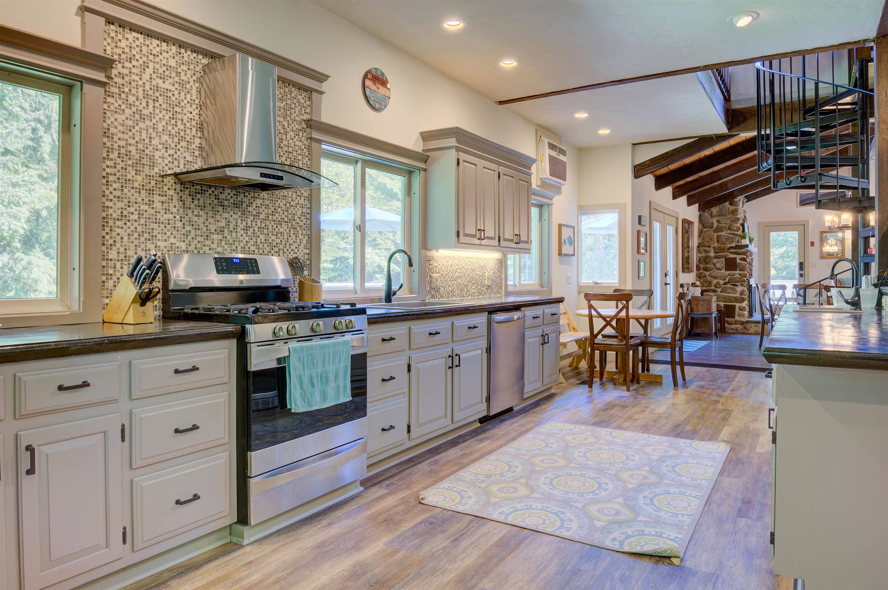 This oversized Eidelweiss Chalet has it all! Enjoy year-round quintessential NH living steps to sandy Thusis Beach on the peaceful shores of Big Pea Porridge Pond where in summer you can swim, fish, and boat (with storage on the beach racks), and in winter you can cross country ski, snowshoe, and ice fish. This house is beautifully updated and includes numerous bedrooms for all your family and friends! The main floor features a spacious living room with gas fireplace, open dining room, expansive modern kitchen, bedrooms, bathrooms, laundry, and a 700 square foot deck for outdoor entertaining. Upstairs is a large family room with gas fireplace that feels both connected to the main level and private. Downstairs has extensive room for guests with plenty of privacy. One half includes a mudroom, bedrooms, and bathroom. The other half is an apartment/in-law suite with bedrooms, living/game room, kitchen, and bathroom. The apartment has separate entrances from both the backyard and garage allowing it to be incorporated into the main home or rented as a separate space. Complemented by a two-car garage and large flat yard with firepit, this home truly offers more than most every other home in this wonderful neighborhood. Get to know your new neighbors at the numerous Eidelweiss community events, including cookouts and concerts on the beach, ice cream socials, and fall foliage walks. Enjoy this incredible house and all the activities the nearby White Mountains have to offer!