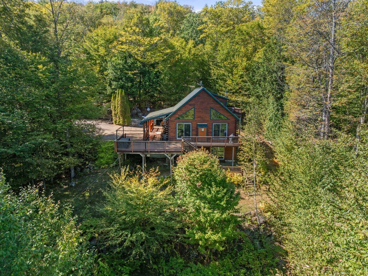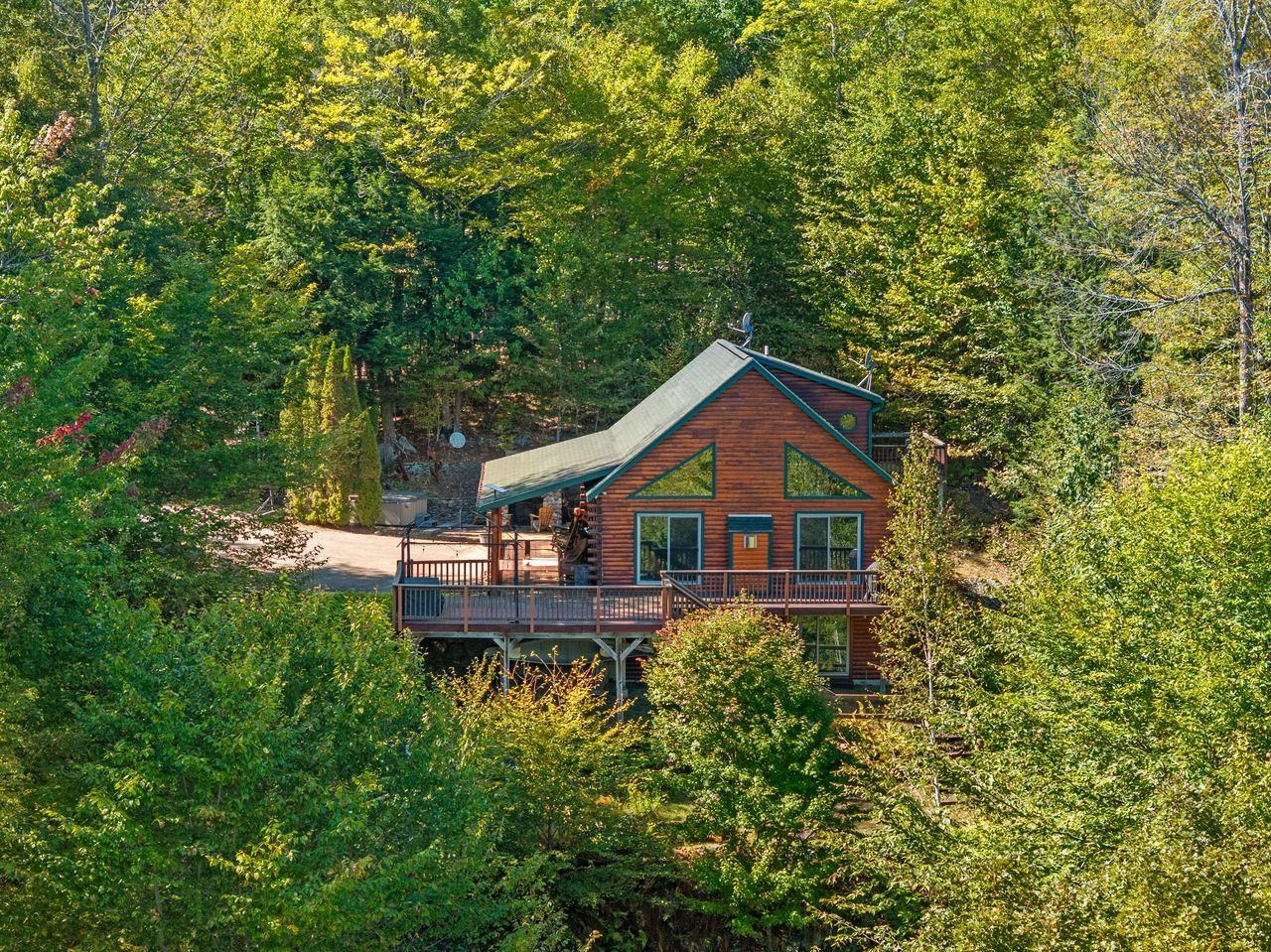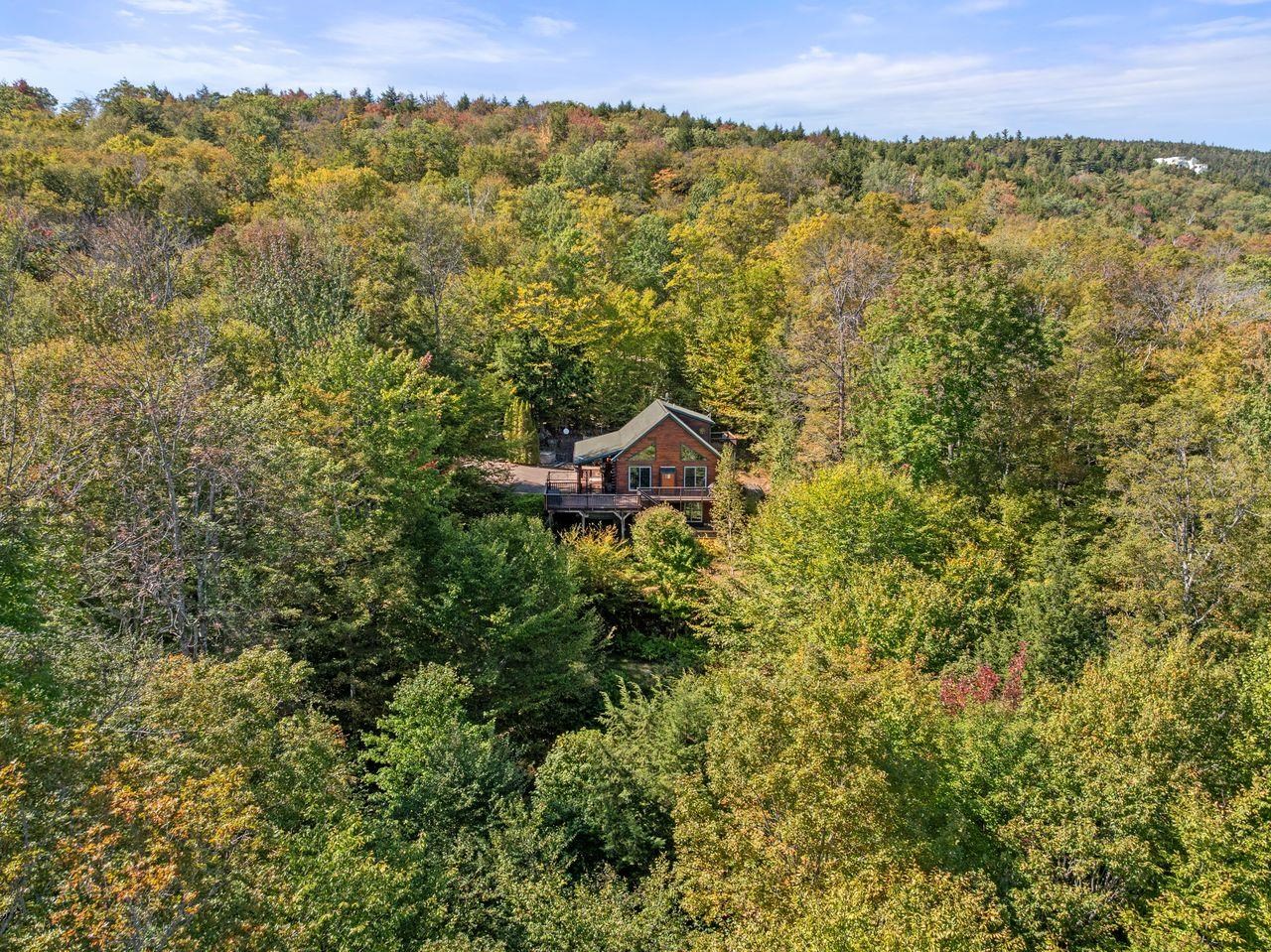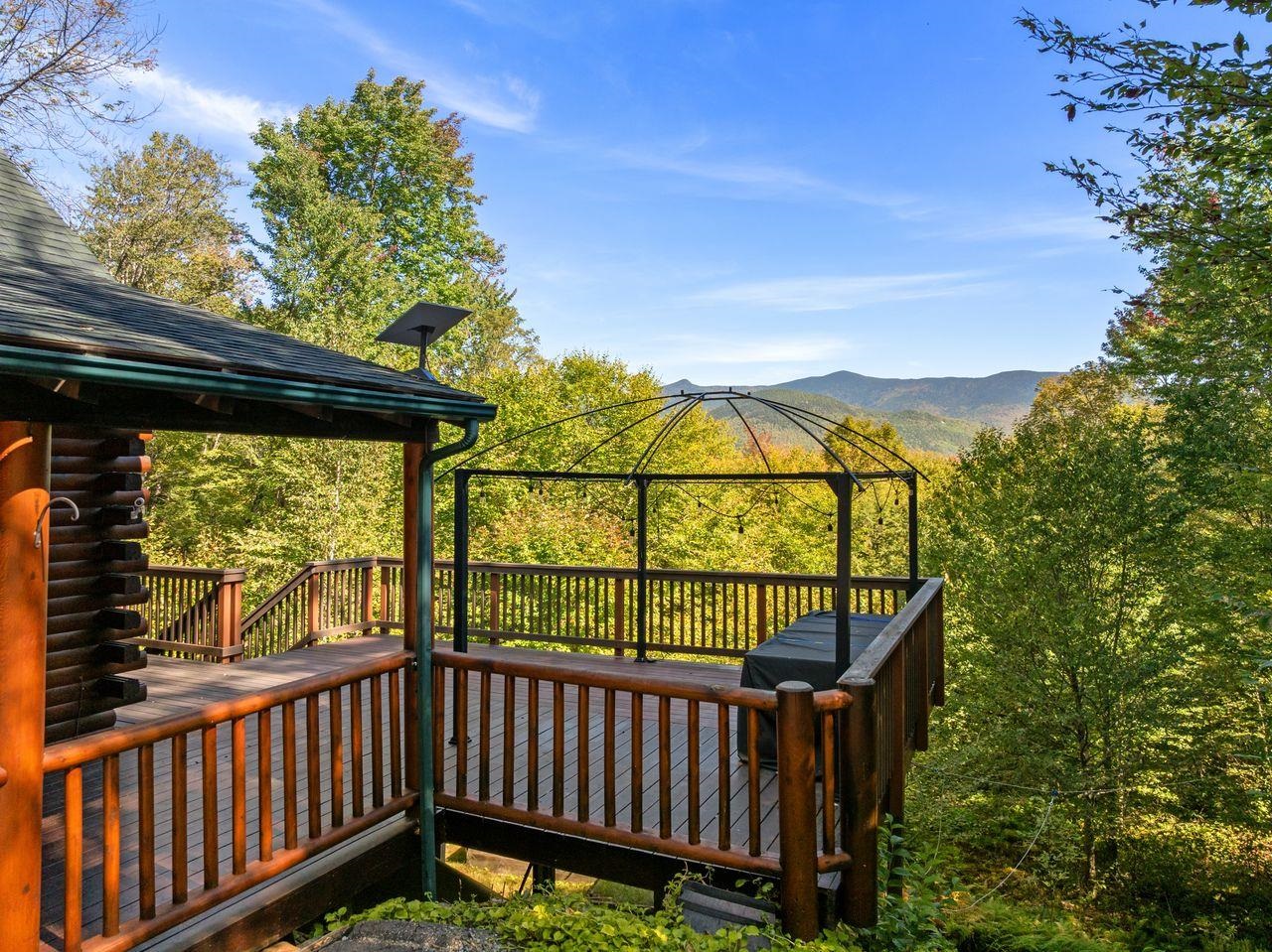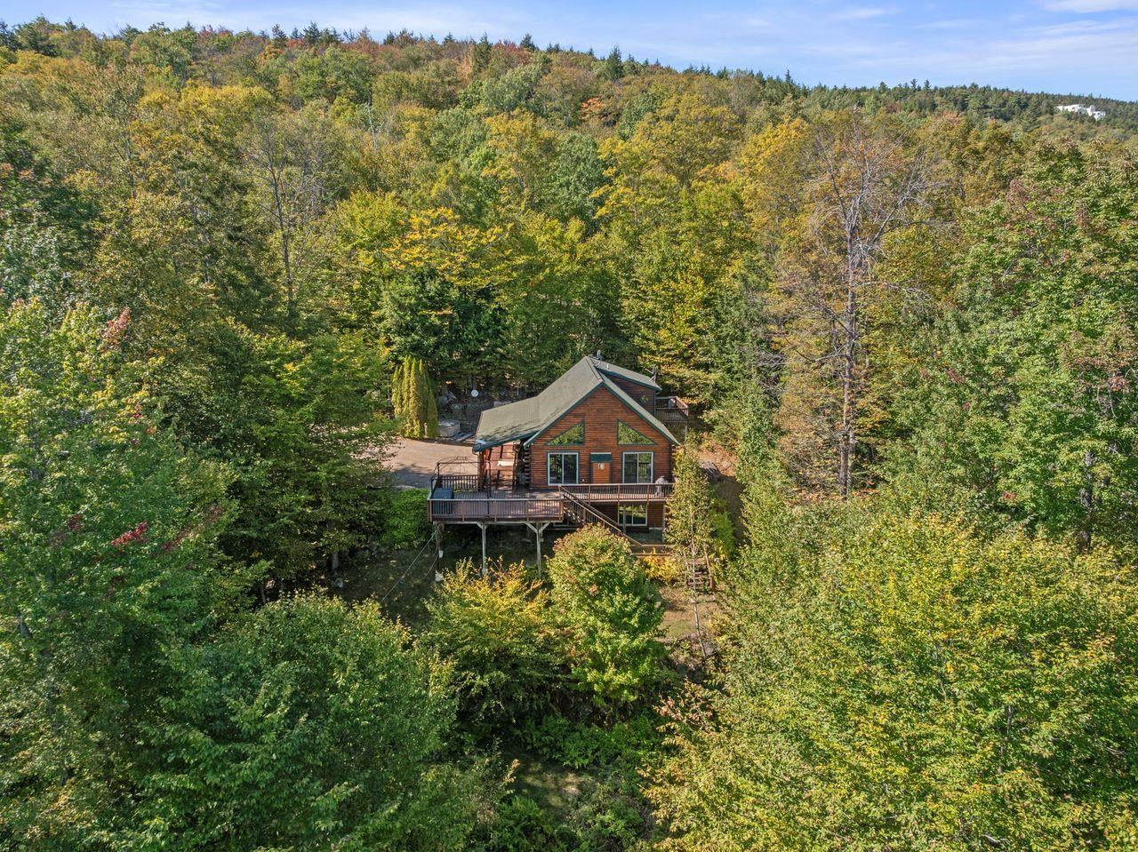 Views! Views! Views! Welcome to a wonderful log home nestled on the side of Cone Mountain with beautiful mountain views both inside and out. Perfect for all seasons, enjoy relaxing on the deck overlooking the Sandwich Notch. Fantastic outside fireplace with patio and hot tub makes this home feel like you are always on vacation. The farmers porch leads to the entrance which opens to the great room with cathedral ceilings, gas fireplace with marble facing, dining area and a wonderful kitchen for entertaining. The first floor also has two bedrooms and a full bath. As you go upstairs you will find a loft which makes a nice office area or additional sleeping space. The spacious primary room is on this level with a primary bath and access to a side balcony. The finished family room in the lower level is ready for your next gathering with a wet bar, keg fridge, mini fridge and pool table. There is also a bathroom with a shower and another room which could be used as an office/study. This property is minutes away from Waterville Valley Resort, White Mountain Athletic Club and up the street from Welch & Dickey Trail. Residence of the Woodwinds area enjoy five acres of common land with the spring-fed Dickey Pond. Perfect as a primary or vacation home. Enjoy peace of mind with an 18kw Generac Generator. Being sold furnished with some exclusions.