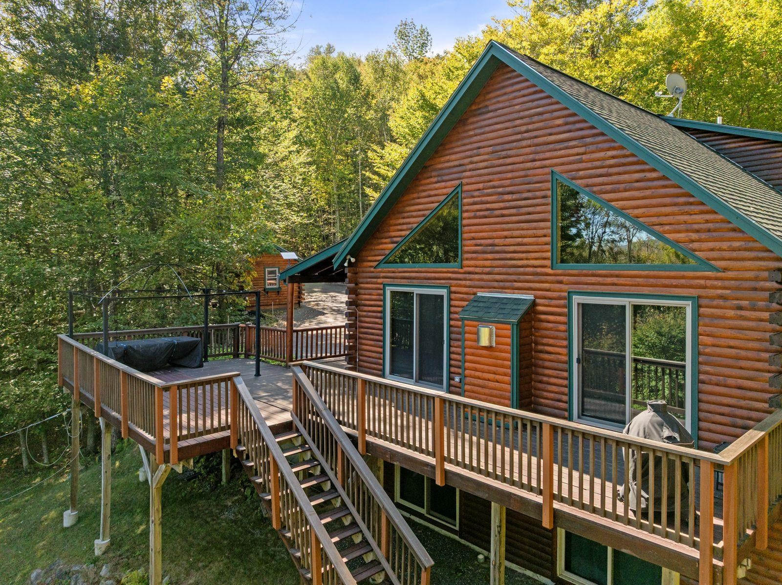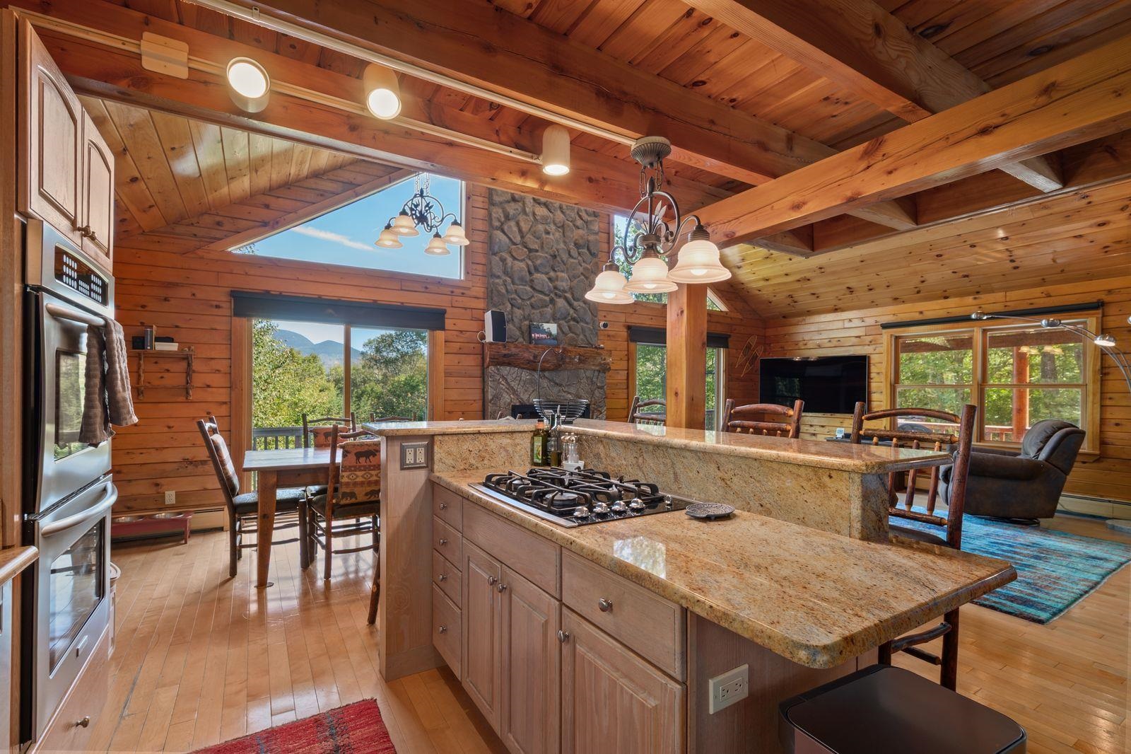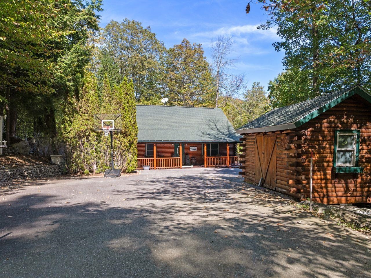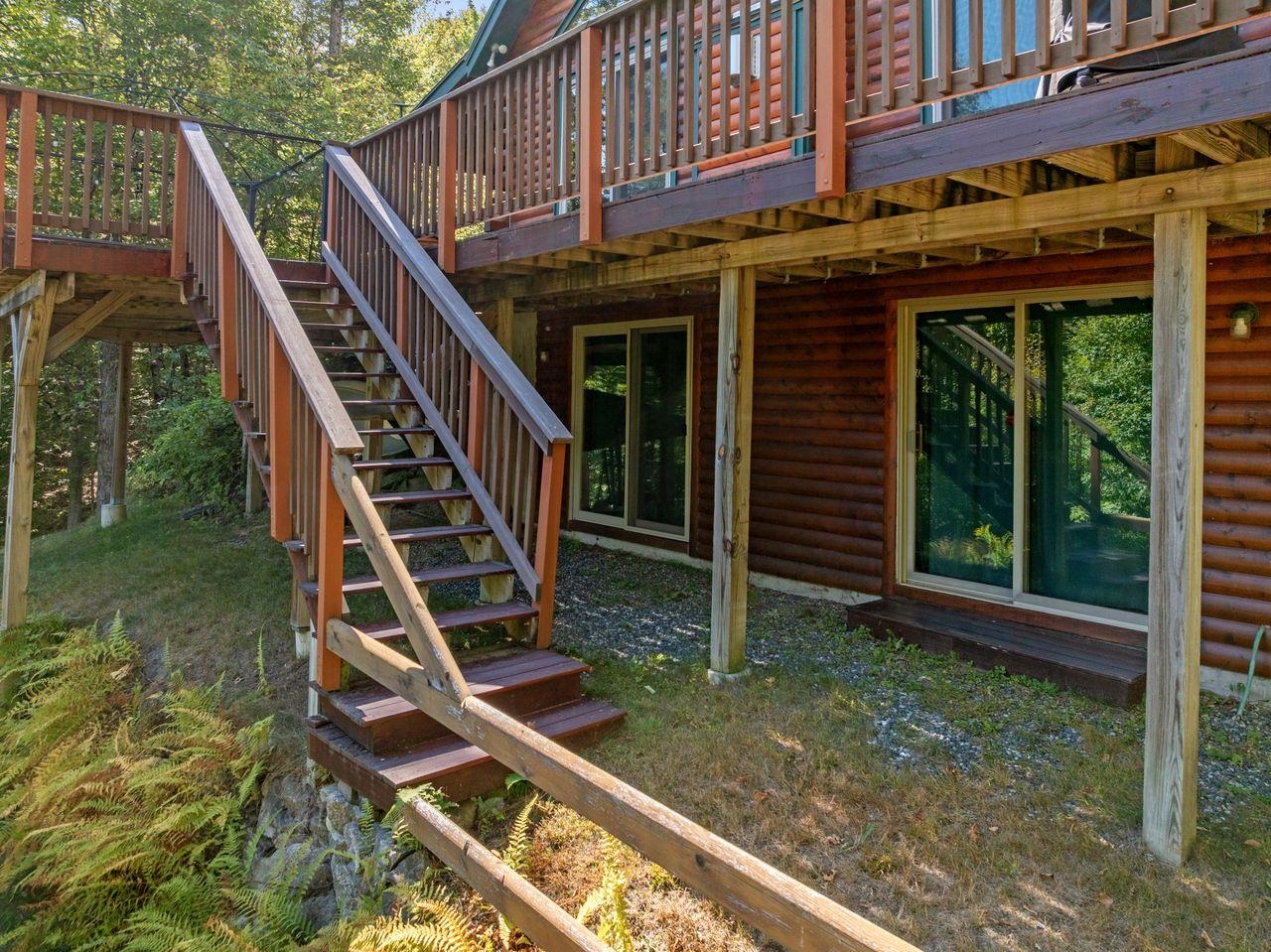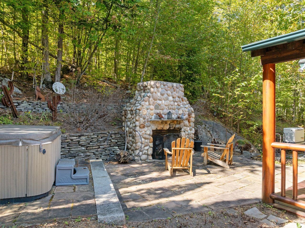 Views! Views! Views! Welcome to a wonderful log home nestled on the side of Cone Mountain with beautiful mountain views both inside and out. Perfect for all seasons, enjoy relaxing on the deck overlooking the Sandwich Notch. Fantastic outside fireplace with patio and hot tub makes this home feel like you are always on vacation. The farmers porch leads to the entrance which opens to the great room with cathedral ceilings, gas fireplace with marble facing, dining area and a wonderful kitchen for entertaining. The first floor also has two bedrooms and a full bath. As you go upstairs you will find a loft which makes a nice office area or additional sleeping space. The spacious primary room is on this level with a primary bath and access to a side balcony. The finished family room in the lower level is ready for your next gathering with a wet bar, keg fridge, mini fridge and pool table. There is also a bathroom with a shower and another room which could be used as an office/study. This property is minutes away from Waterville Valley Resort, White Mountain Athletic Club and up the street from Welch & Dickey Trail. Residence of the Woodwinds area enjoy five acres of common land with the spring-fed Dickey Pond. Perfect as a primary or vacation home. Enjoy peace of mind with an 18kw Generac Generator. Being sold furnished with some exclusions.