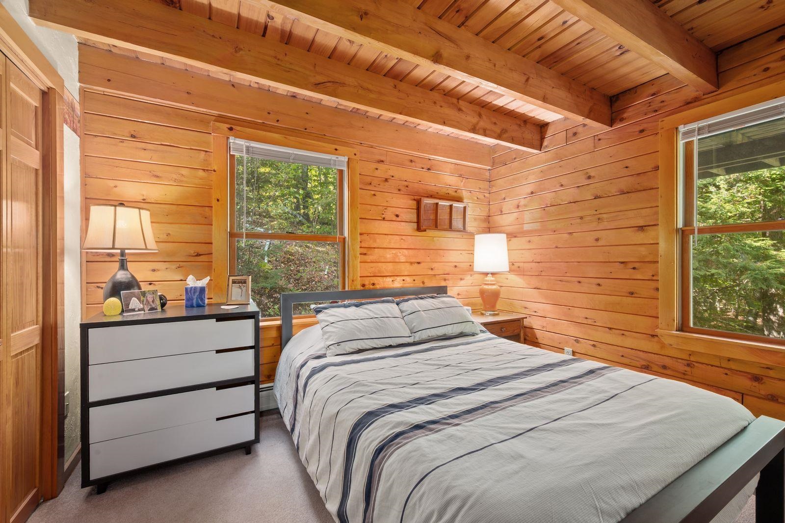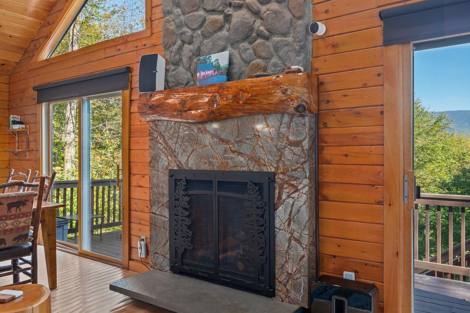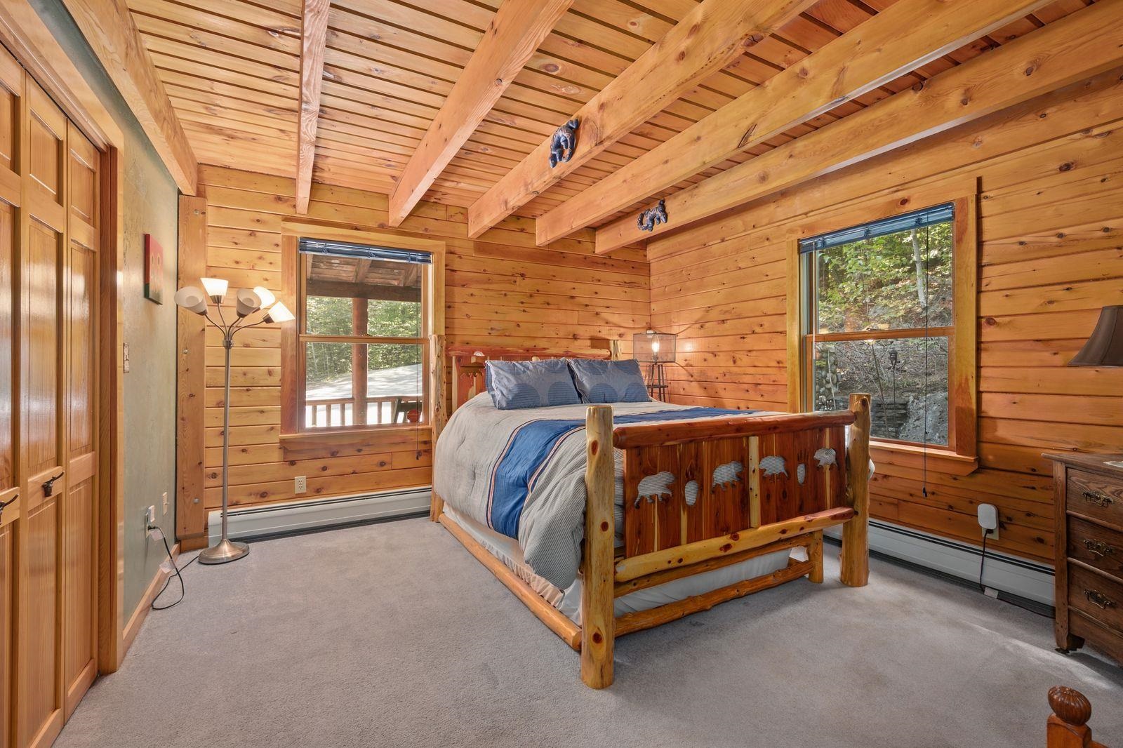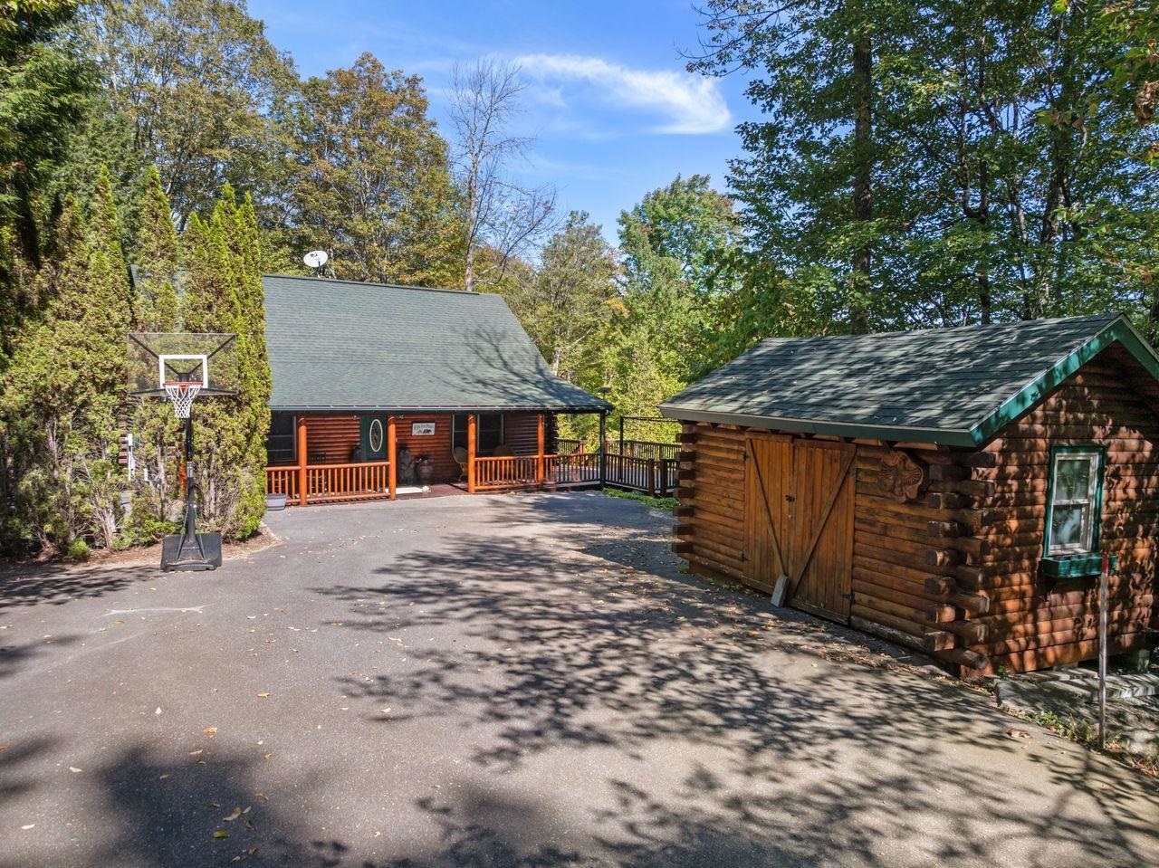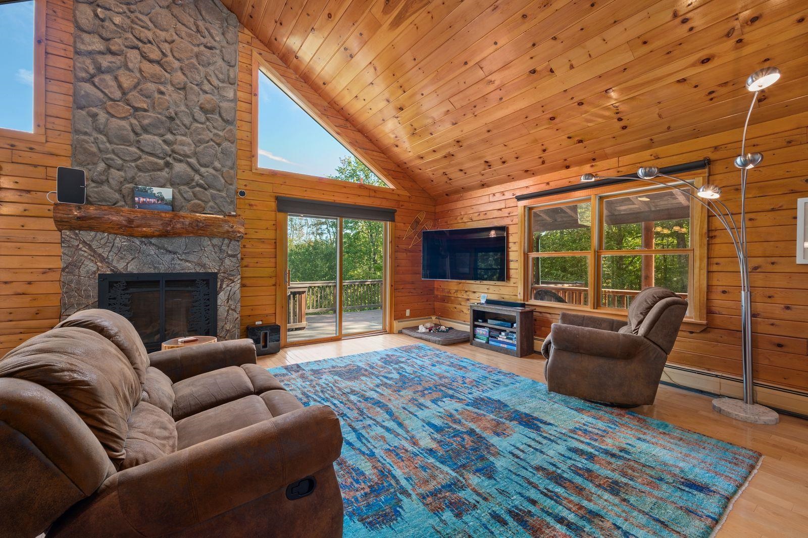 Views! Views! Views! Welcome to a wonderful log home nestled on the side of Cone Mountain with beautiful mountain views both inside and out. Perfect for all seasons, enjoy relaxing on the deck overlooking the Sandwich Notch. Fantastic outside fireplace with patio and hot tub makes this home feel like you are always on vacation. The farmers porch leads to the entrance which opens to the great room with cathedral ceilings, gas fireplace with marble facing, dining area and a wonderful kitchen for entertaining. The first floor also has two bedrooms and a full bath. As you go upstairs you will find a loft which makes a nice office area or additional sleeping space. The spacious primary room is on this level with a primary bath and access to a side balcony. The finished family room in the lower level is ready for your next gathering with a wet bar, keg fridge, mini fridge and pool table. There is also a bathroom with a shower and another room which could be used as an office/study. This property is minutes away from Waterville Valley Resort, White Mountain Athletic Club and up the street from Welch & Dickey Trail. Residence of the Woodwinds area enjoy five acres of common land with the spring-fed Dickey Pond. Perfect as a primary or vacation home. Enjoy peace of mind with an 18kw Generac Generator. Being sold furnished with some exclusions.