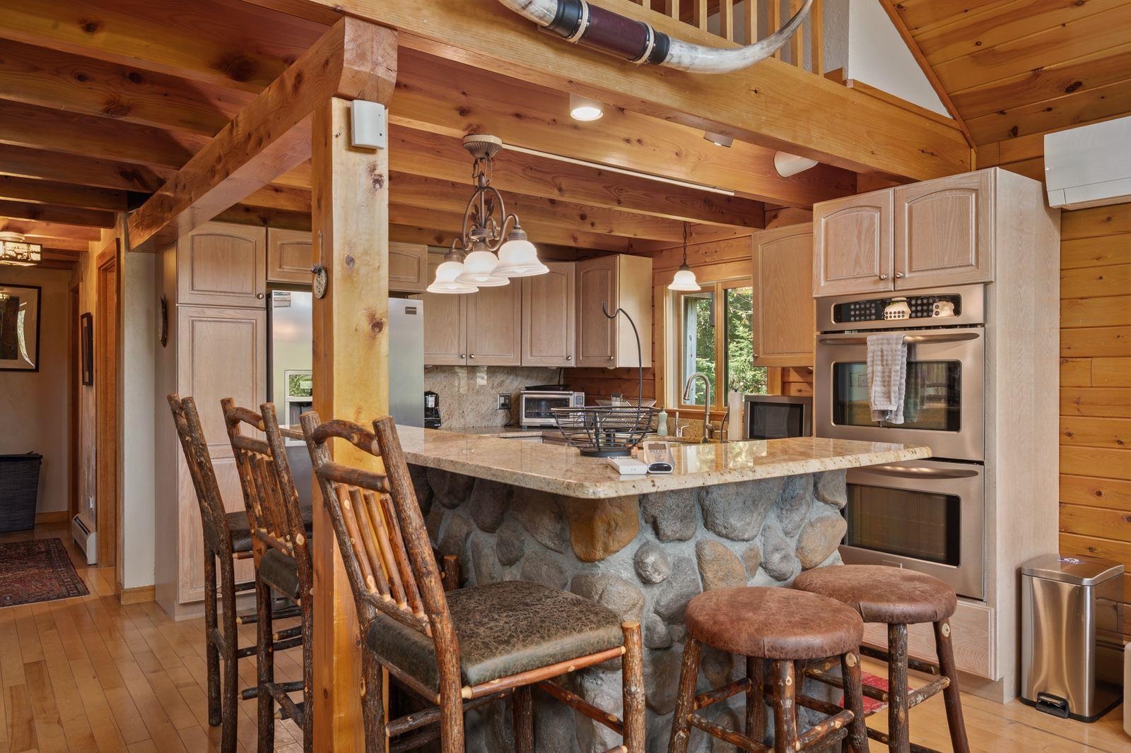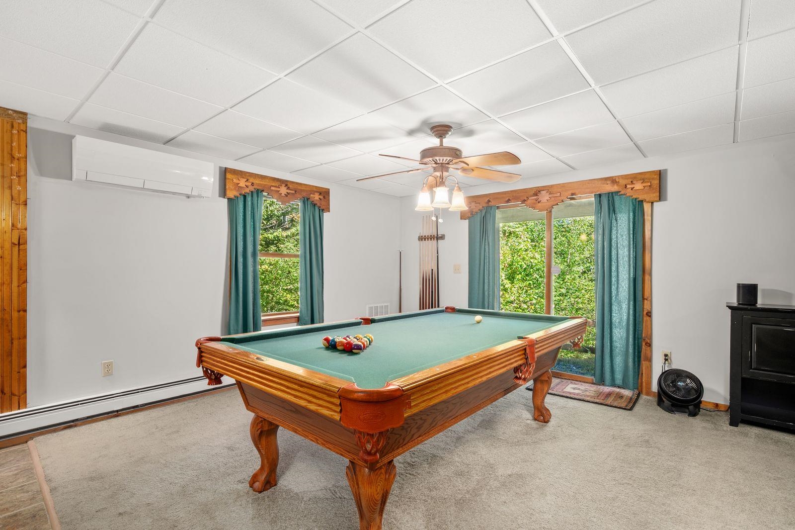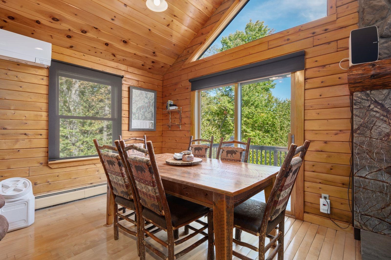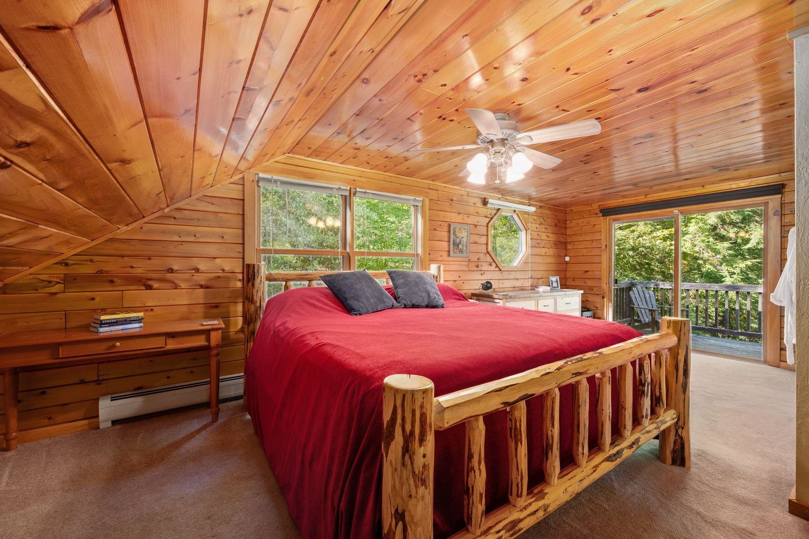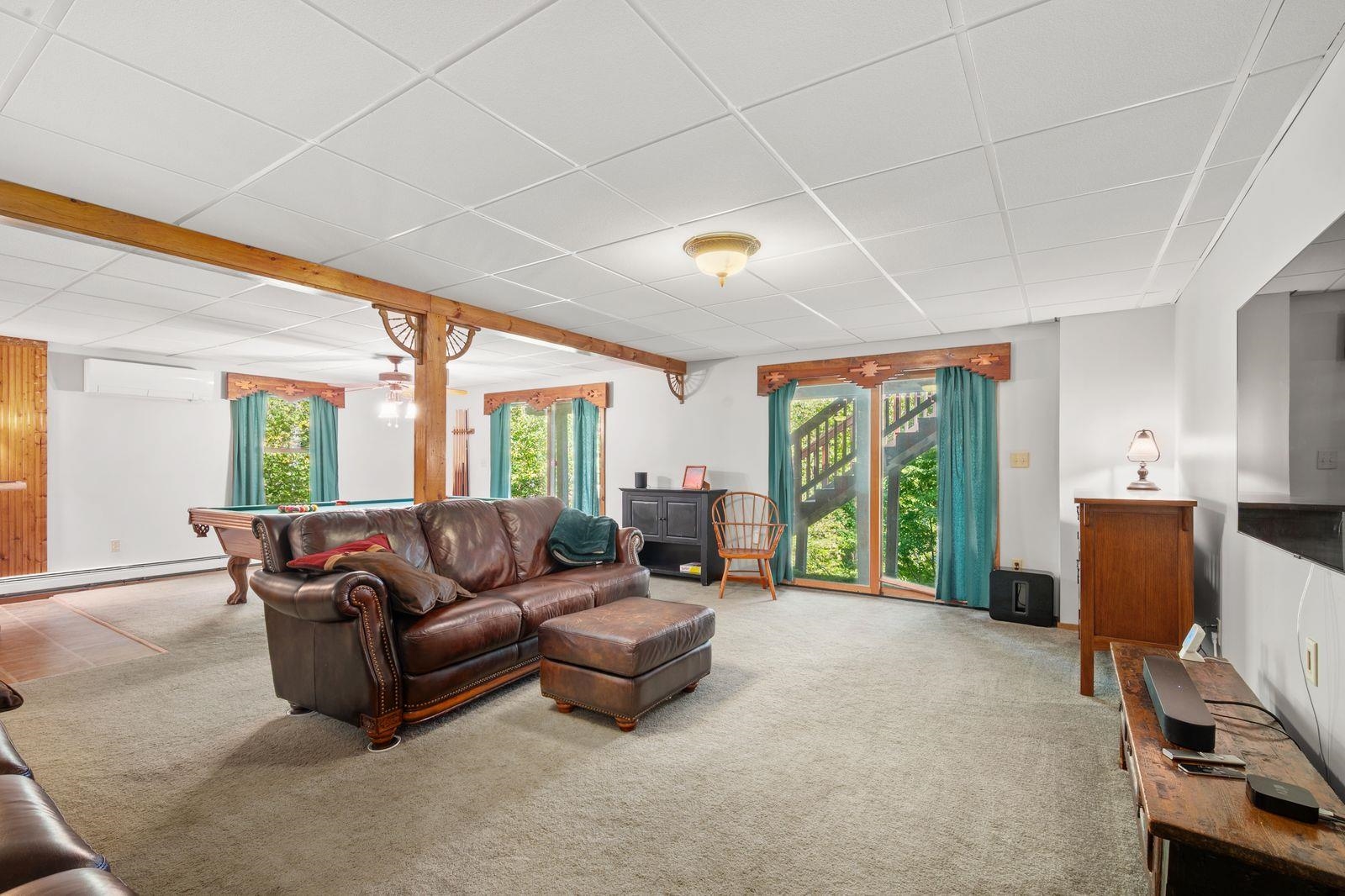 Views! Views! Views! Welcome to a wonderful log home nestled on the side of Cone Mountain with beautiful mountain views both inside and out. Perfect for all seasons, enjoy relaxing on the deck overlooking the Sandwich Notch. Fantastic outside fireplace with patio and hot tub makes this home feel like you are always on vacation. The farmers porch leads to the entrance which opens to the great room with cathedral ceilings, gas fireplace with marble facing, dining area and a wonderful kitchen for entertaining. The first floor also has two bedrooms and a full bath. As you go upstairs you will find a loft which makes a nice office area or additional sleeping space. The spacious primary room is on this level with a primary bath and access to a side balcony. The finished family room in the lower level is ready for your next gathering with a wet bar, keg fridge, mini fridge and pool table. There is also a bathroom with a shower and another room which could be used as an office/study. This property is minutes away from Waterville Valley Resort, White Mountain Athletic Club and up the street from Welch & Dickey Trail. Residence of the Woodwinds area enjoy five acres of common land with the spring-fed Dickey Pond. Perfect as a primary or vacation home. Enjoy peace of mind with an 18kw Generac Generator. Being sold furnished with some exclusions.