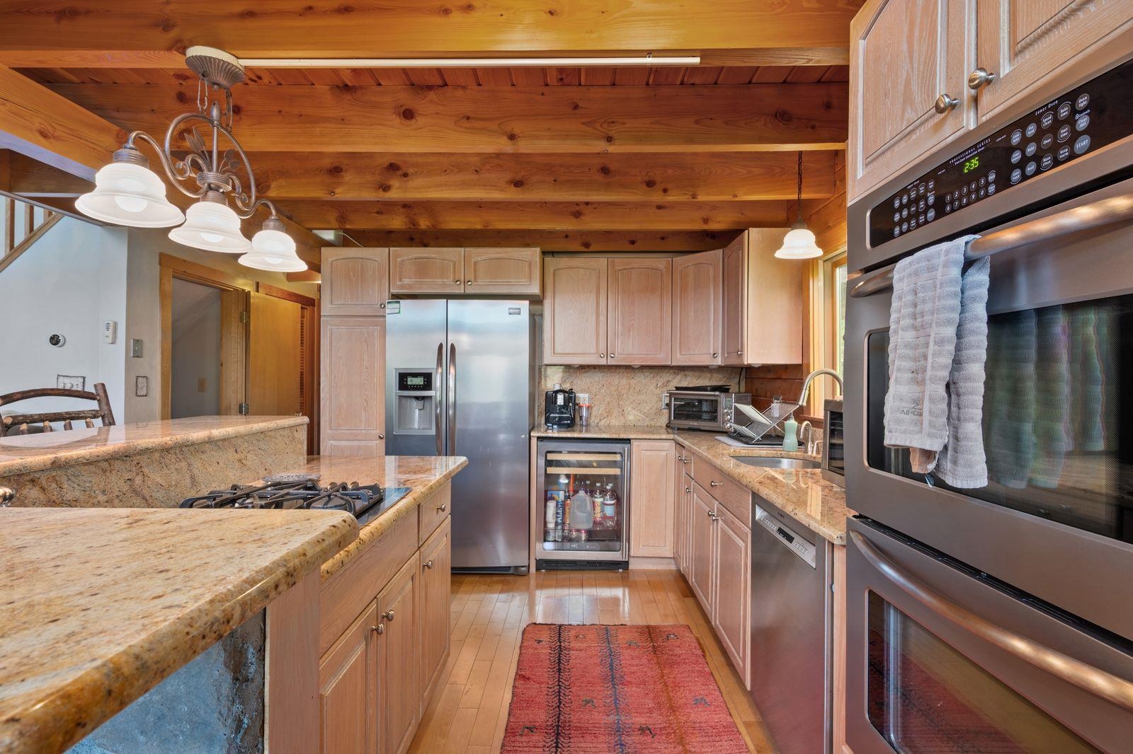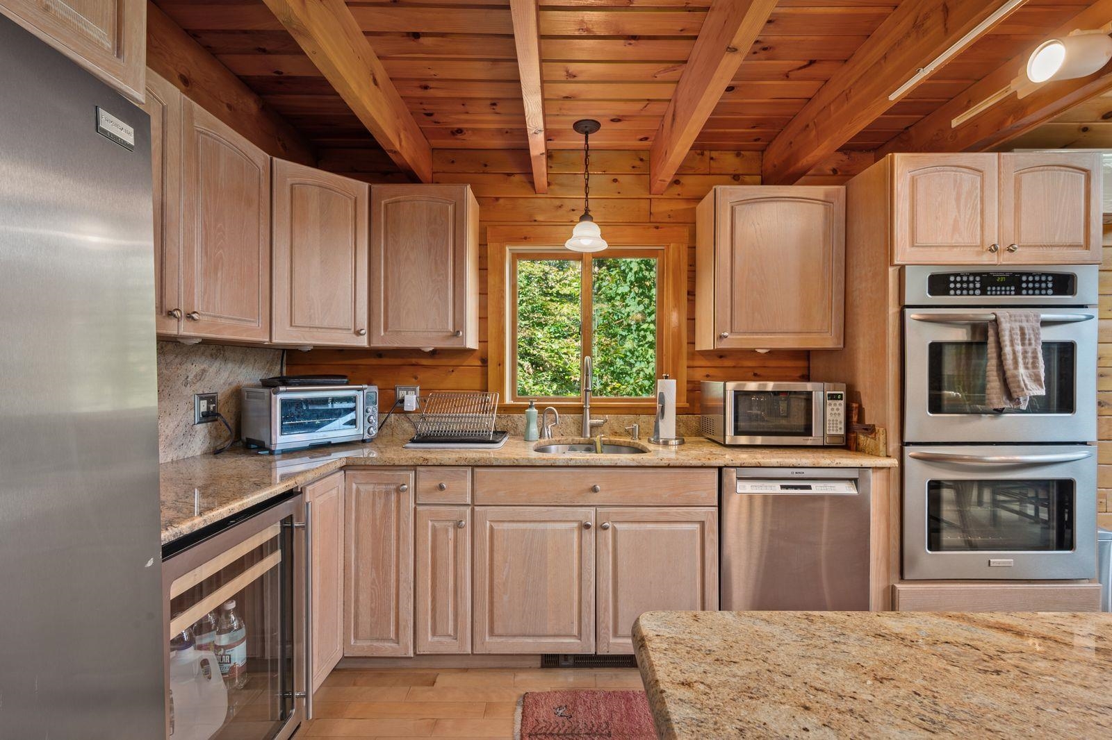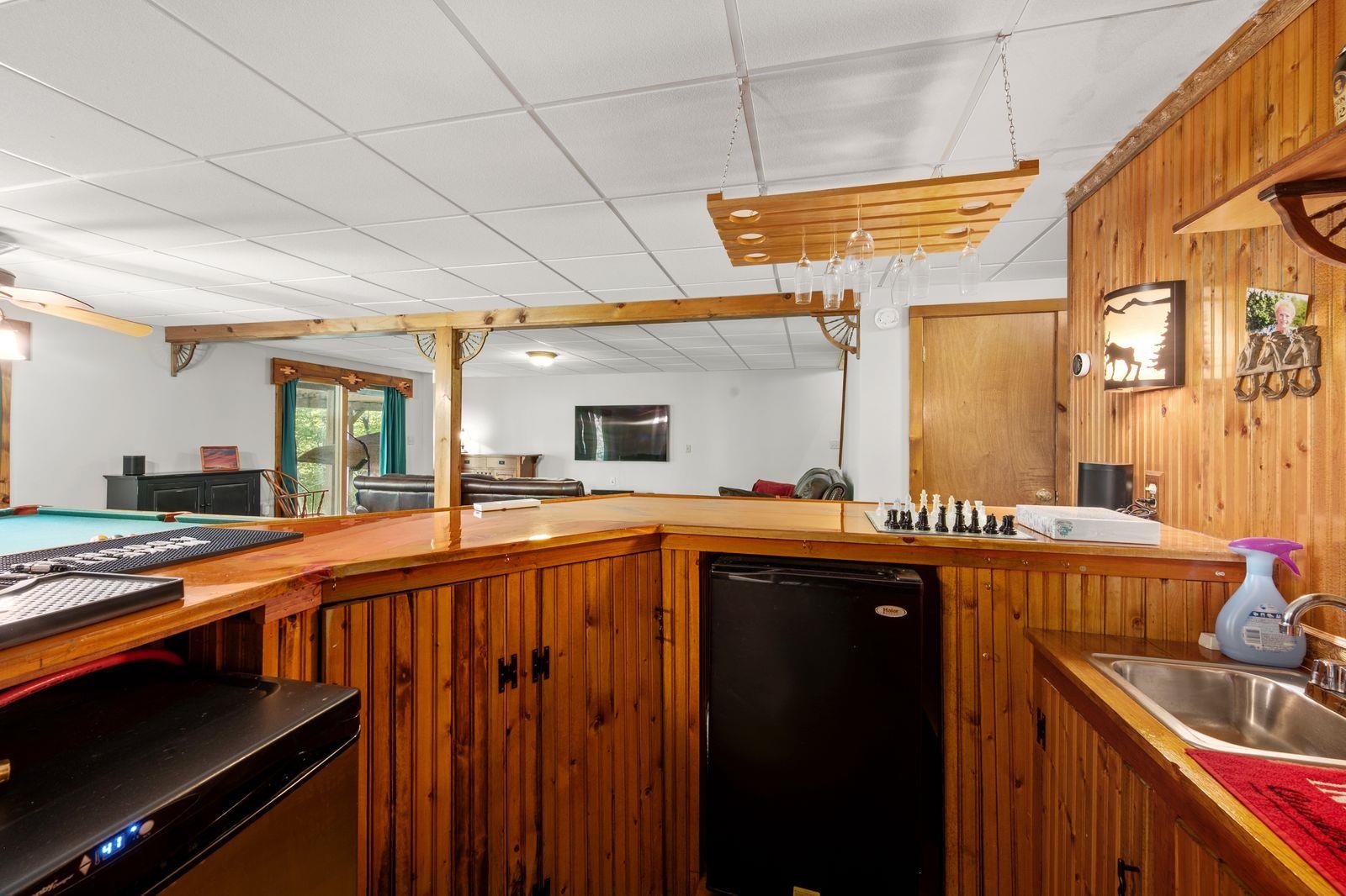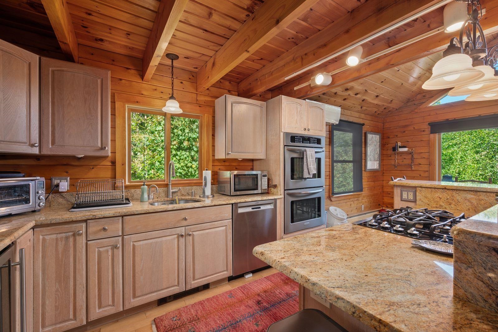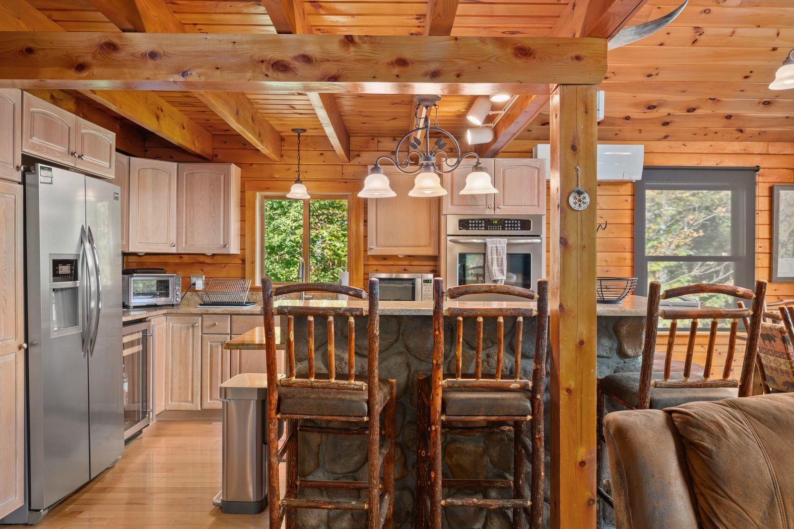 Views! Views! Views! Welcome to a wonderful log home nestled on the side of Cone Mountain with beautiful mountain views both inside and out. Perfect for all seasons, enjoy relaxing on the deck overlooking the Sandwich Notch. Fantastic outside fireplace with patio and hot tub makes this home feel like you are always on vacation. The farmers porch leads to the entrance which opens to the great room with cathedral ceilings, gas fireplace with marble facing, dining area and a wonderful kitchen for entertaining. The first floor also has two bedrooms and a full bath. As you go upstairs you will find a loft which makes a nice office area or additional sleeping space. The spacious primary room is on this level with a primary bath and access to a side balcony. The finished family room in the lower level is ready for your next gathering with a wet bar, keg fridge, mini fridge and pool table. There is also a bathroom with a shower and another room which could be used as an office/study. This property is minutes away from Waterville Valley Resort, White Mountain Athletic Club and up the street from Welch & Dickey Trail. Residence of the Woodwinds area enjoy five acres of common land with the spring-fed Dickey Pond. Perfect as a primary or vacation home. Enjoy peace of mind with an 18kw Generac Generator. Being sold furnished with some exclusions.