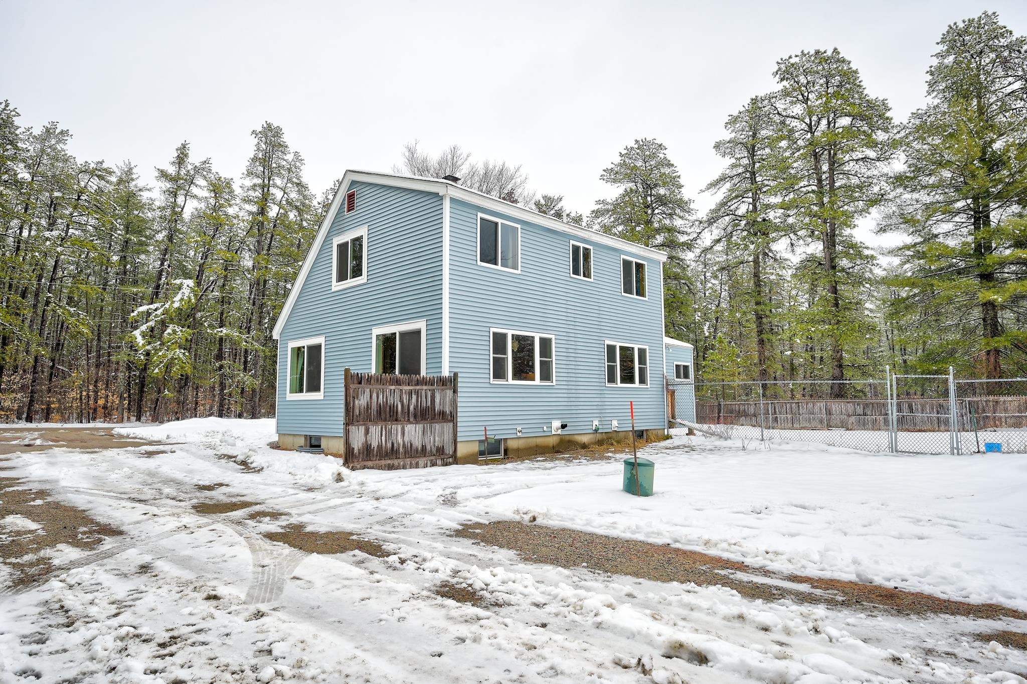 This charming 3 bedrooms, 1 full bath Silver Lake saltbox sits on a large 1+ acre lot abutting access to recreation in the Ossipee Pine Barrens Conservation Area! The interior of the home is welcoming, with warm wood tones throughout the open floor plan. Enter through the front where you will find the kitchen, which enjoys ample storage space in the natural wood cabinets and matching black appliances. The kitchen looks over the dining nook and living room, which enjoys large windows to capture the warm sunlight while overlooking the sprawling yard. Off to the side is access to a well appointed mud room with an access door to the large fenced yard for your four-legged friends and a covered porch to keep you out of the elements while grilling. The first bedroom is located on the main level while upstairs, you will find the other two generously-sized bedrooms, as well as the spacious full bathroom. Downstairs, the basement is partially finished, but can be completed for even more living space for your gym or bonus space. The laundry area and a woodstove, for supplemental heat, are also located in the utility side of the basement. Outside in the wide open yard, there's plenty of room for gardens, a firepit area, swingset, outbuilding, garage and more! Don't let this opportunity pass you by! Just 2 minutes from the boat launch on Silver Lake and just about 1 mile from the stunning Resident's only beach!