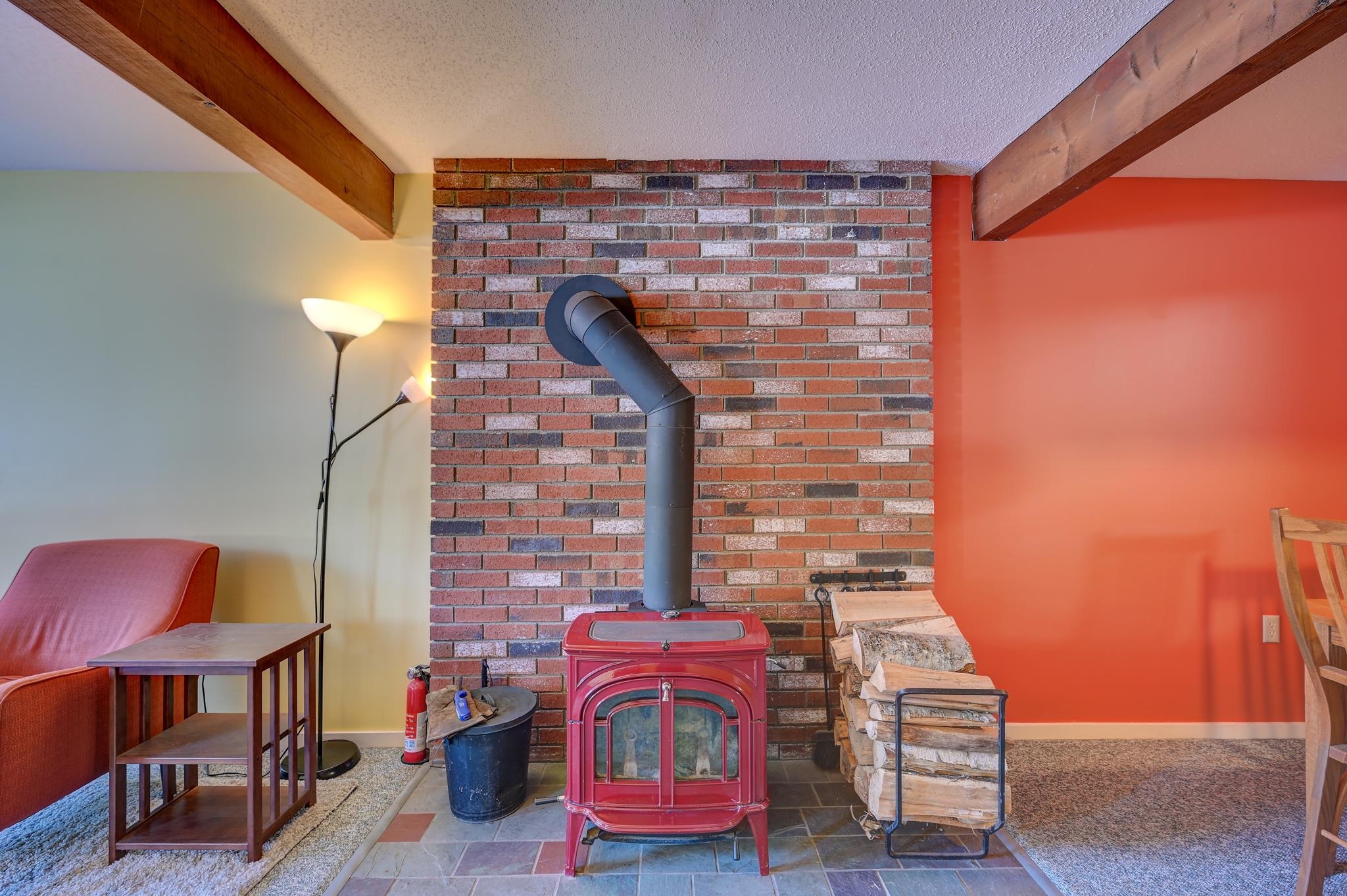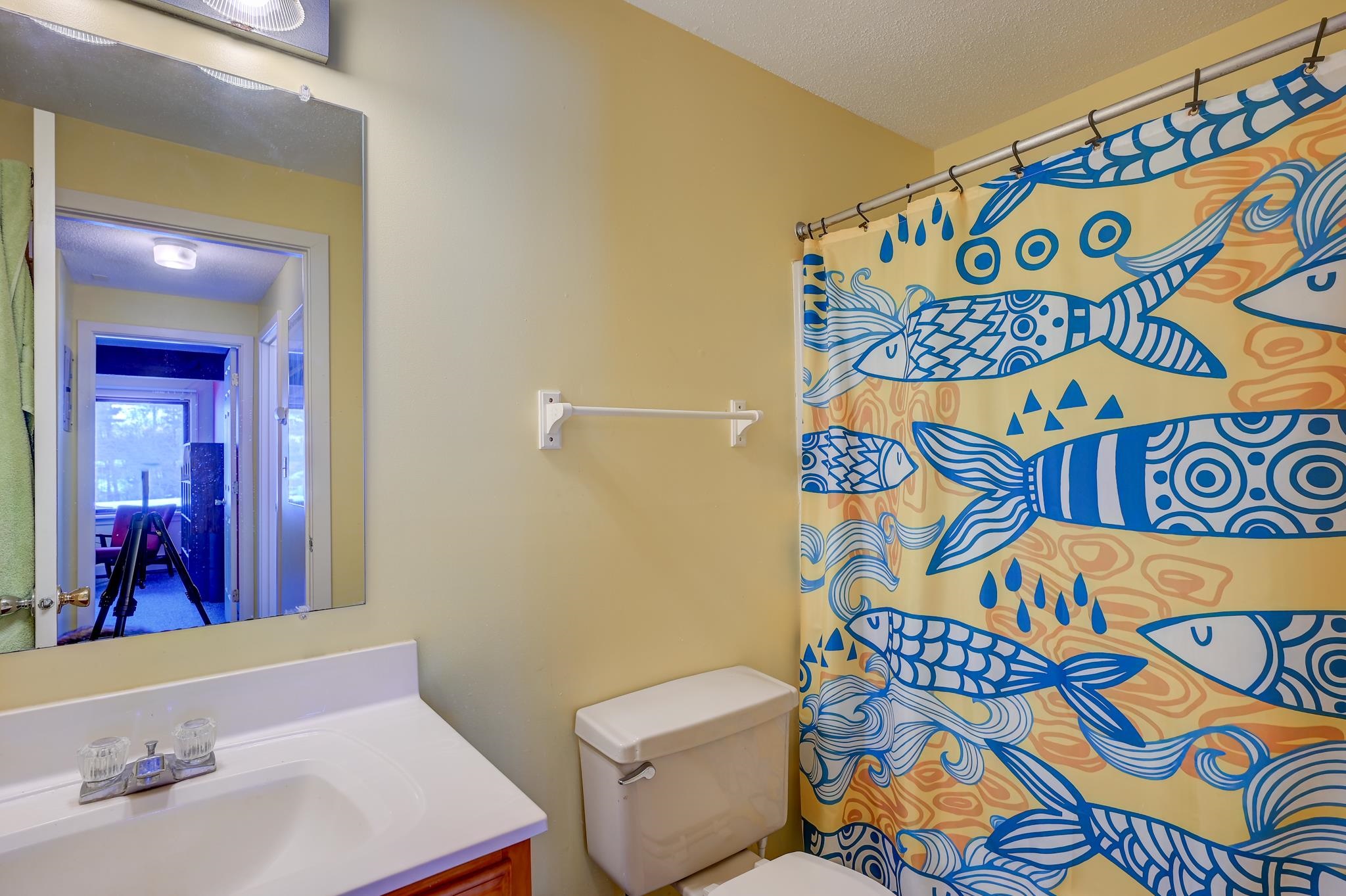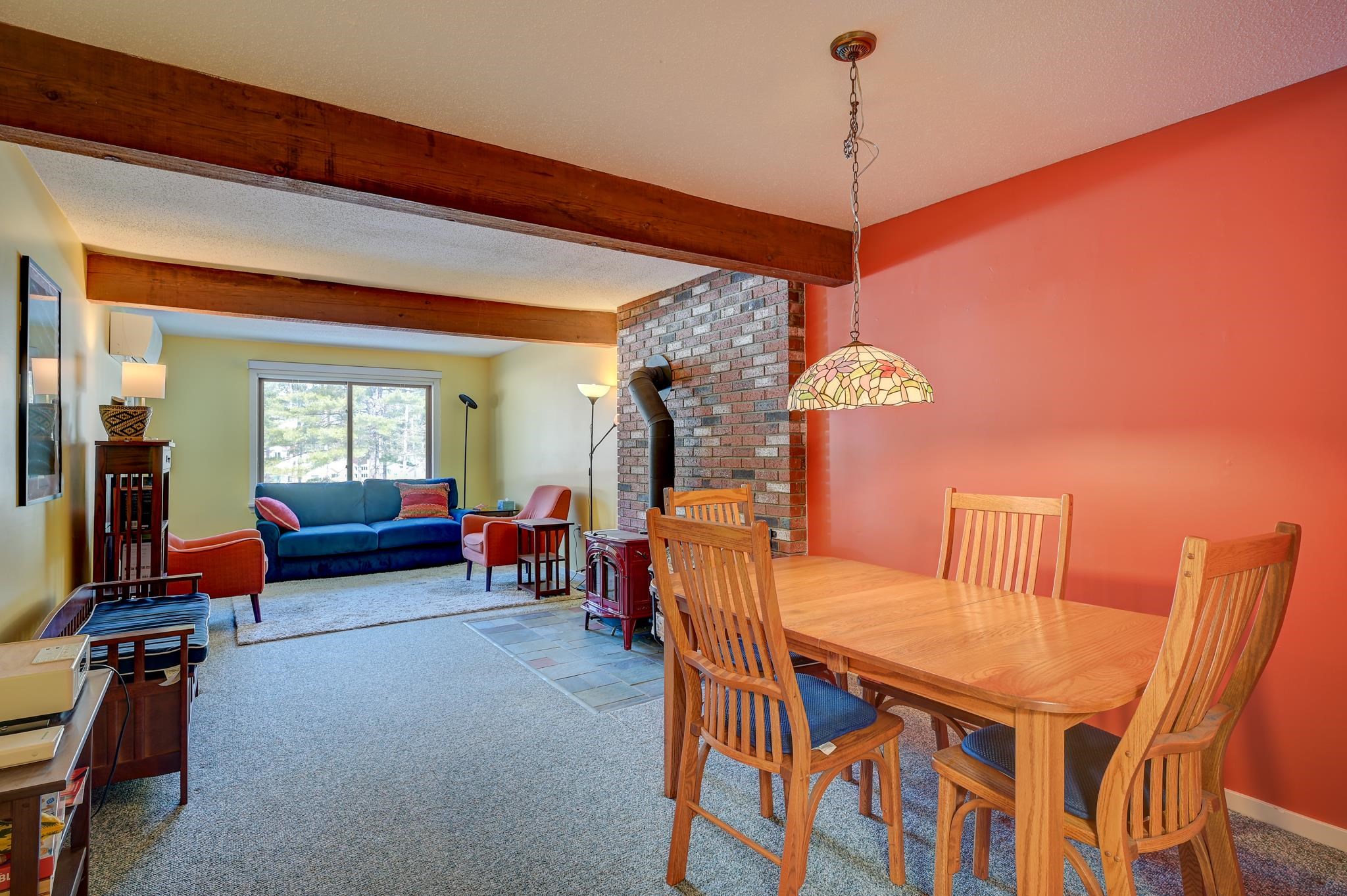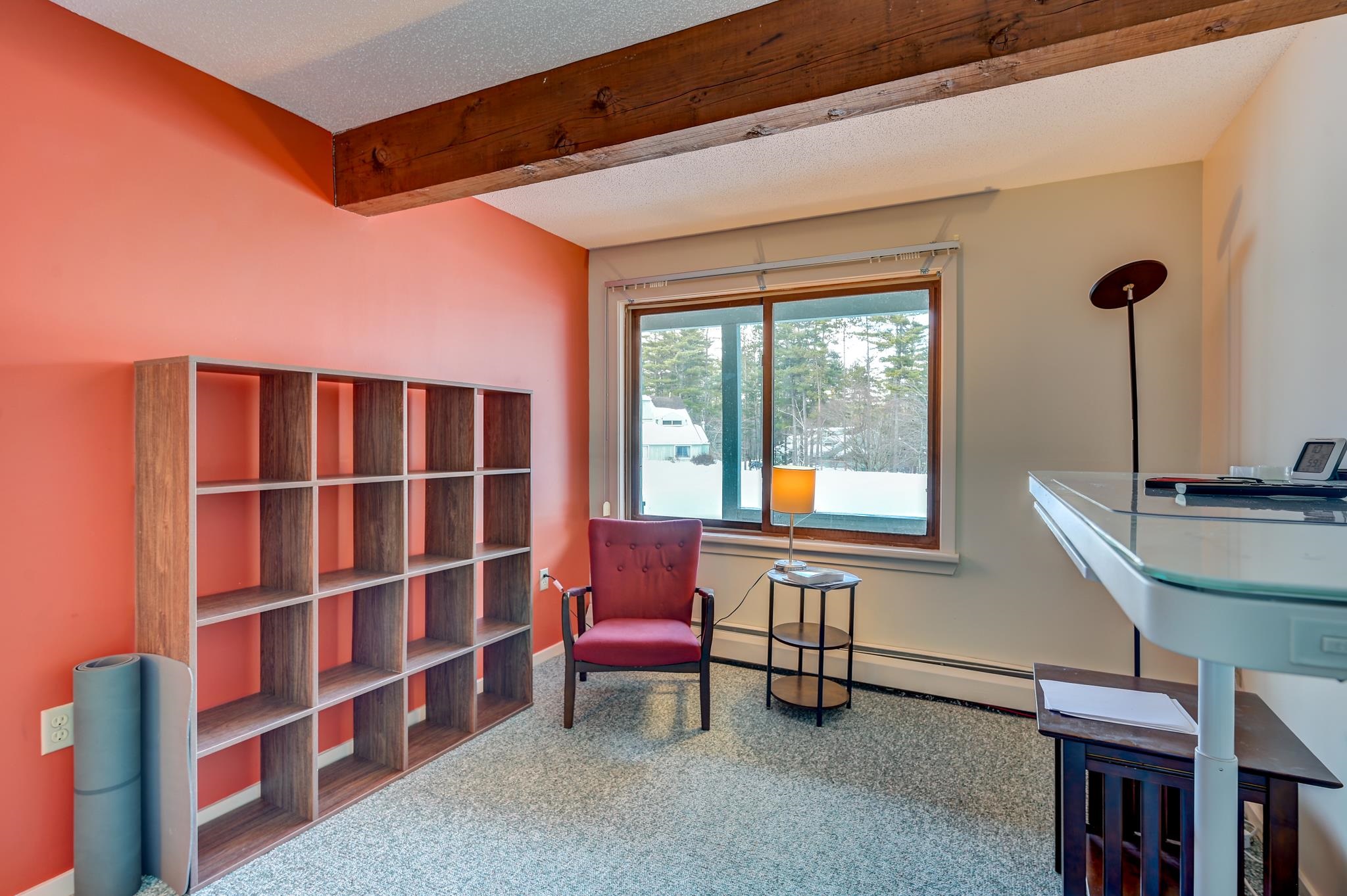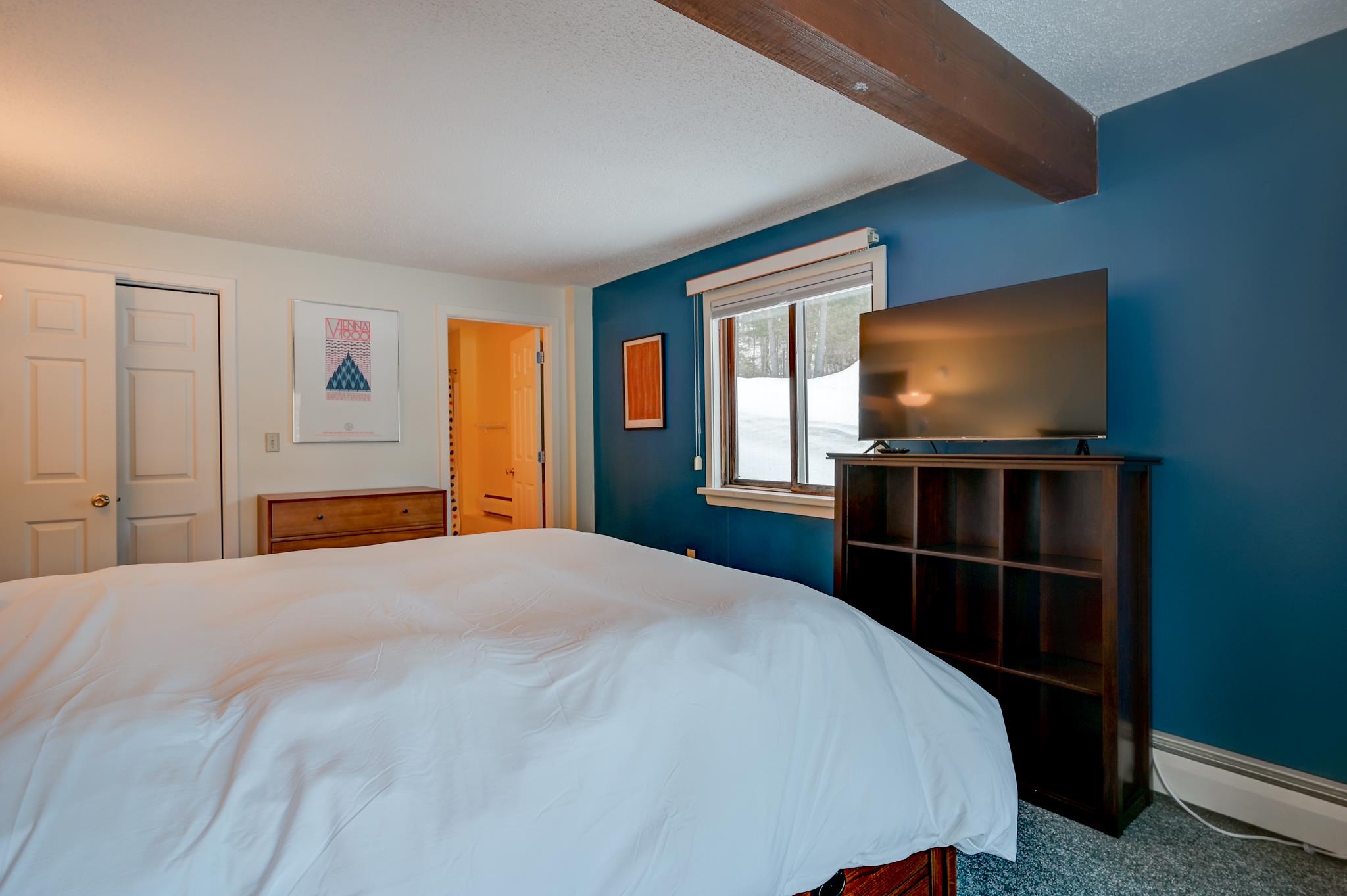 Nestled in one of the most private buildings at The Seasons at Attitash and just steps from the breathtaking White Mountain National Forest, this garden-level unit offers the perfect mountain escape. The unit is sold fully furnished and boasts a fully updated kitchen with modern cabinets, stylish countertops, and sleek tile flooring. In the open-concept dining and living area, a cozy Vermont Castings red-enameled wood stove sets a warm, inviting atmosphere, while cellular energy-saving shades in the windows enhance both comfort and energy efficiency. A standout feature of this home is the private back porch entrance, designed for unmatched convenience when bringing in groceries, firewood, or outdoor gear. This entrance also provides direct access to the front lawn, making grilling and outdoor activities a breeze. Additional conveniences include a high-efficiency heat pump that provides both air conditioning and heating, and a private secure storage area in the basement to accommodate your extra belongings. Residents also enjoy year-round amenities at The Seasons, such as an indoor pool, fitness center, hot tub, sauna, and more. Plus, internet and cable are included in the HOA, and owners interested in renting their units when they're not in use may take advantage of the on-site rental program. Conveniently located just one mile from Attitash Mountain and a short drive from all the best Mt Washington Valley has to offer, this property truly offers a refined mountain lifestyle.
