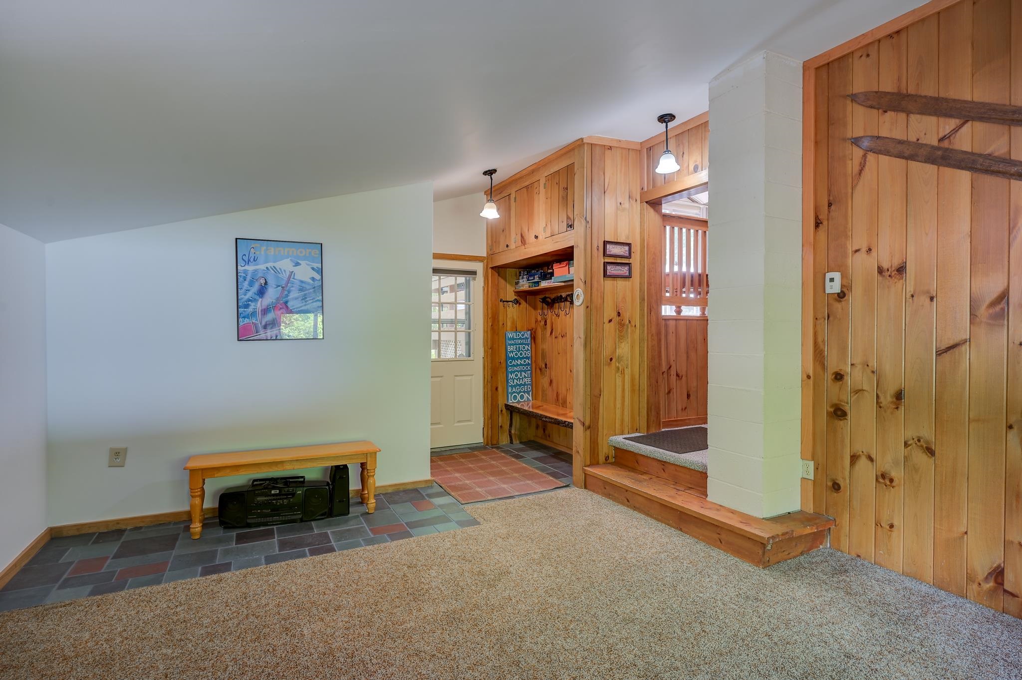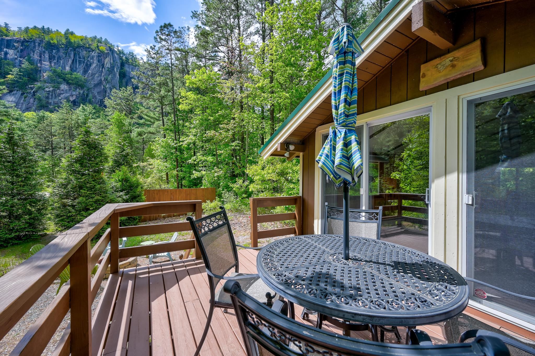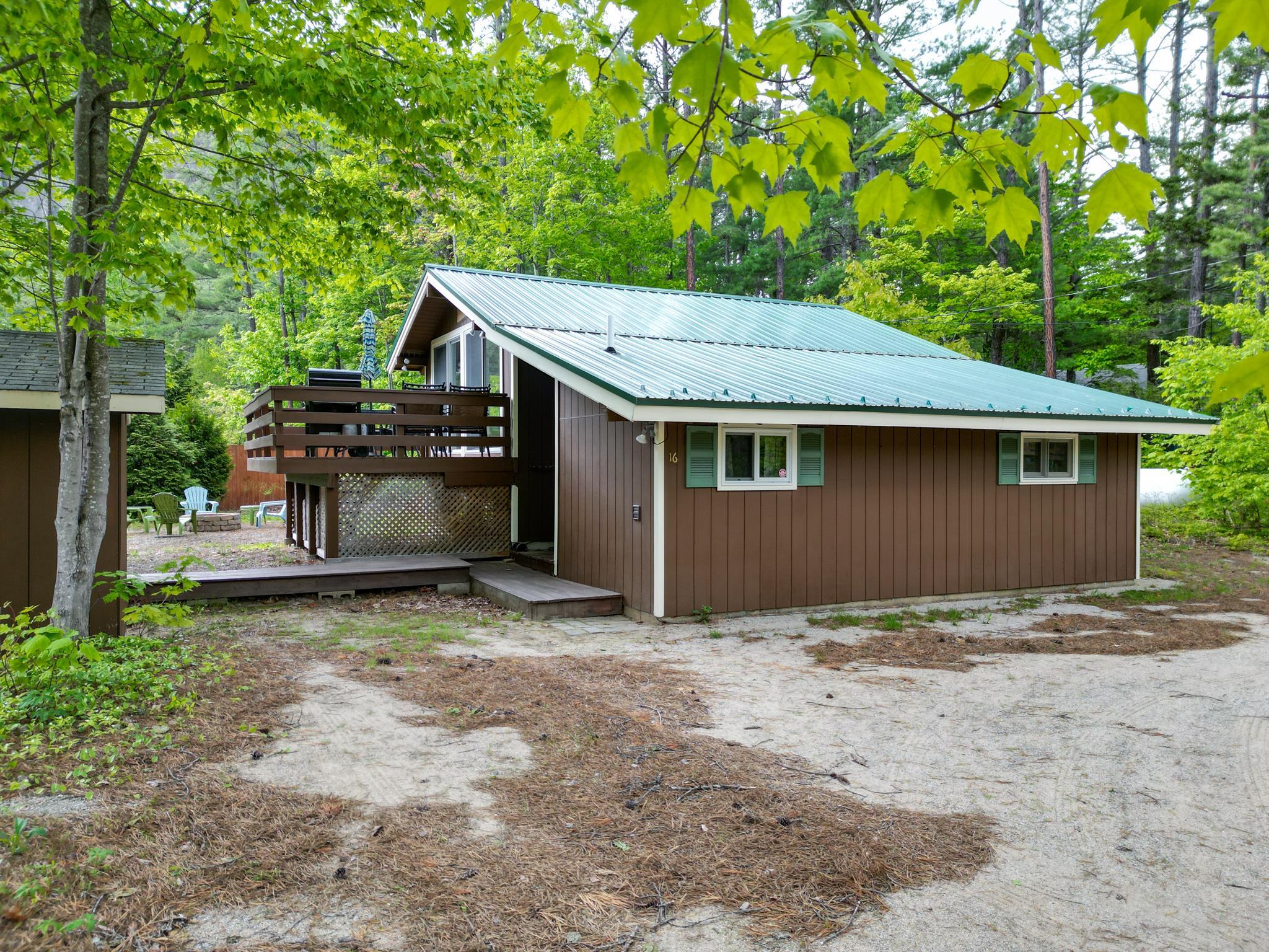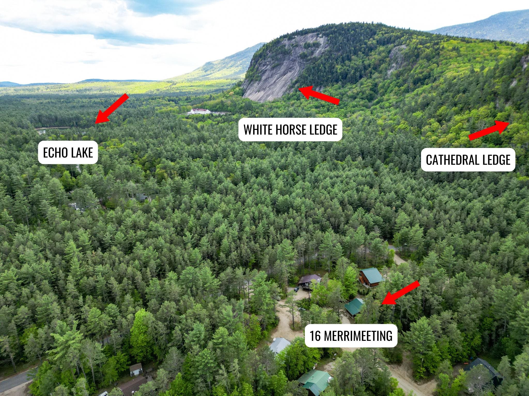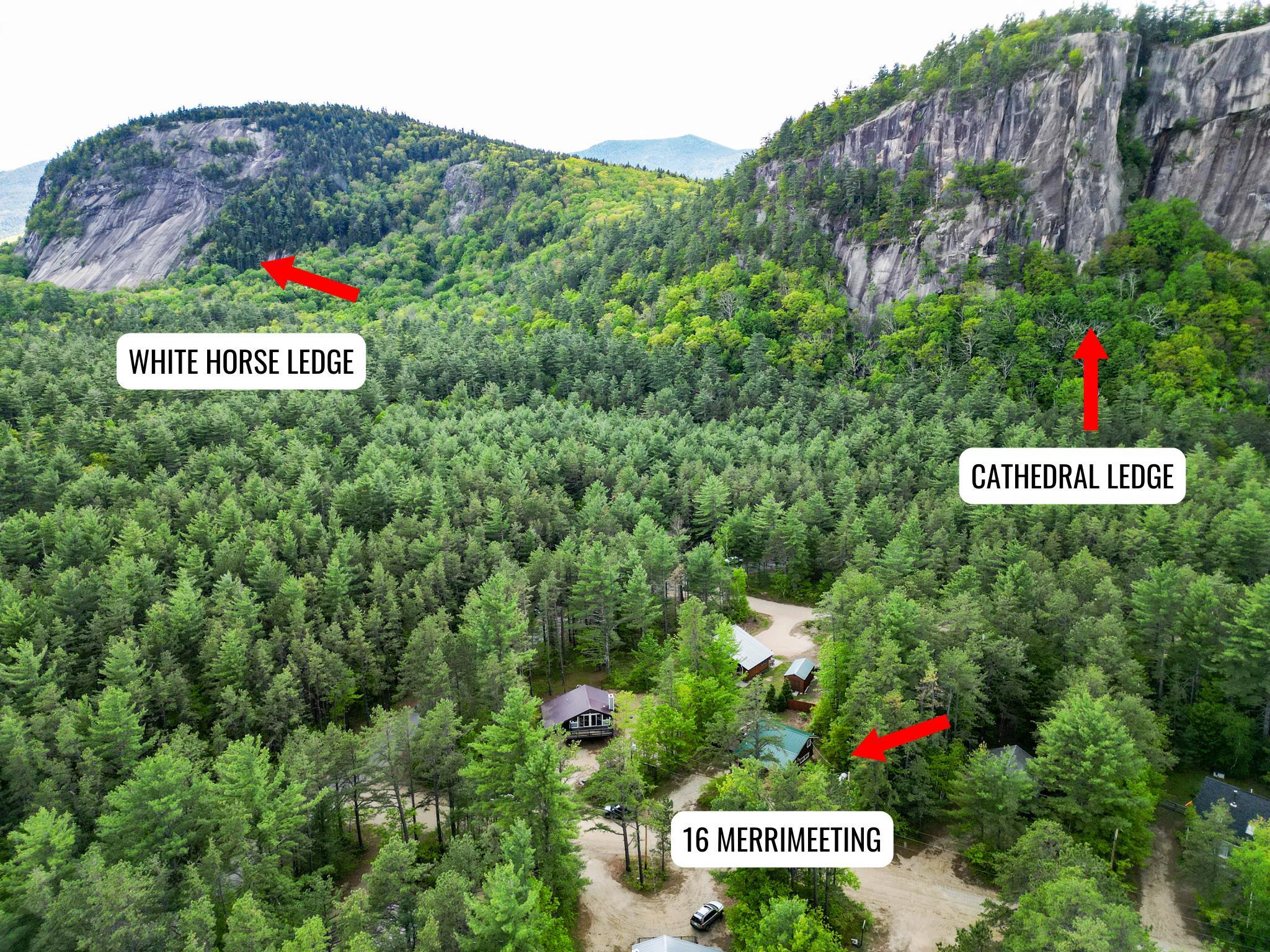 Welcome to the ultimate alpine retreat, this charming chalet is perfectly situated at the base of the iconic Cathedral Ledge, offering unmatched views and immediate access to hiking trails and Echo Lake State Park. Whether you're an outdoor enthusiast or simply seeking serenity, this location is truly one-of-a-kind. Step inside and discover a thoughtfully designed 2-bedroom, 1.5-bath home that's both inviting and functional across three cozy levels. The lower level features a comfortable family room with a half bath and laundry area. Just down a short flight of stairs, you'll find two peaceful bedrooms and a full bath. Up above, the open concept kitchen, dining, and living space is bright and airy, leading out to a generous deck where you can soak in panoramic views of the surrounding cliffs. After a day of exploring nearby trails, skiing, or enjoying the shops and restaurants of North Conway, return to your peaceful haven and unwind with a drink on the deck, your front row seat to nature's beauty.