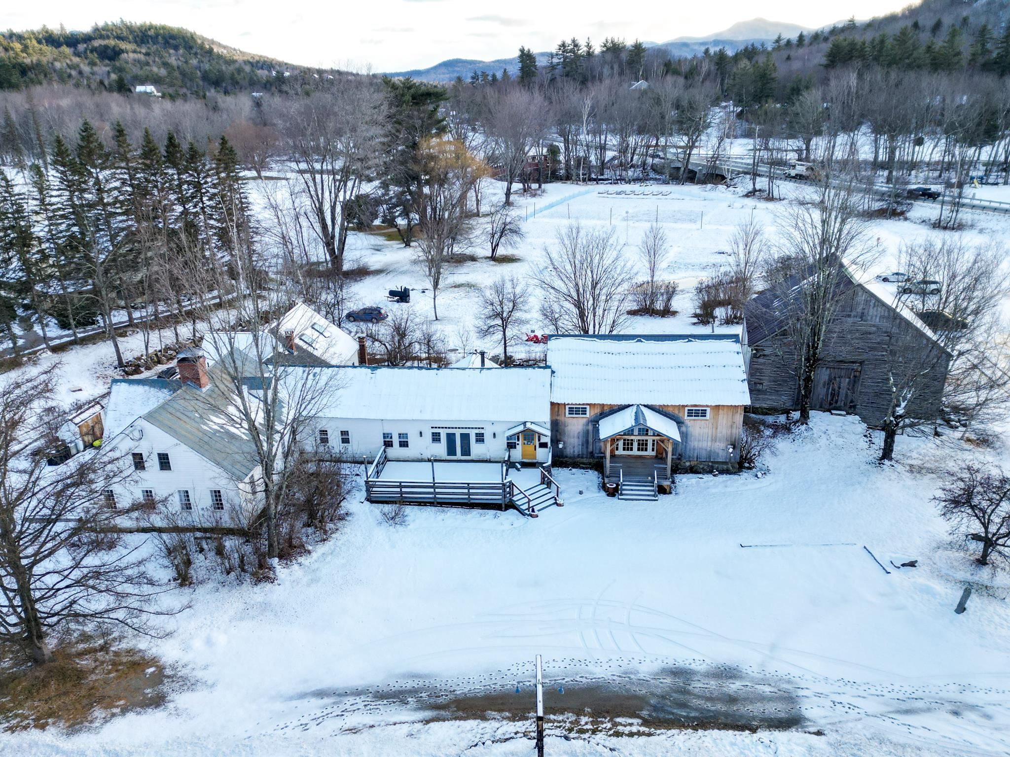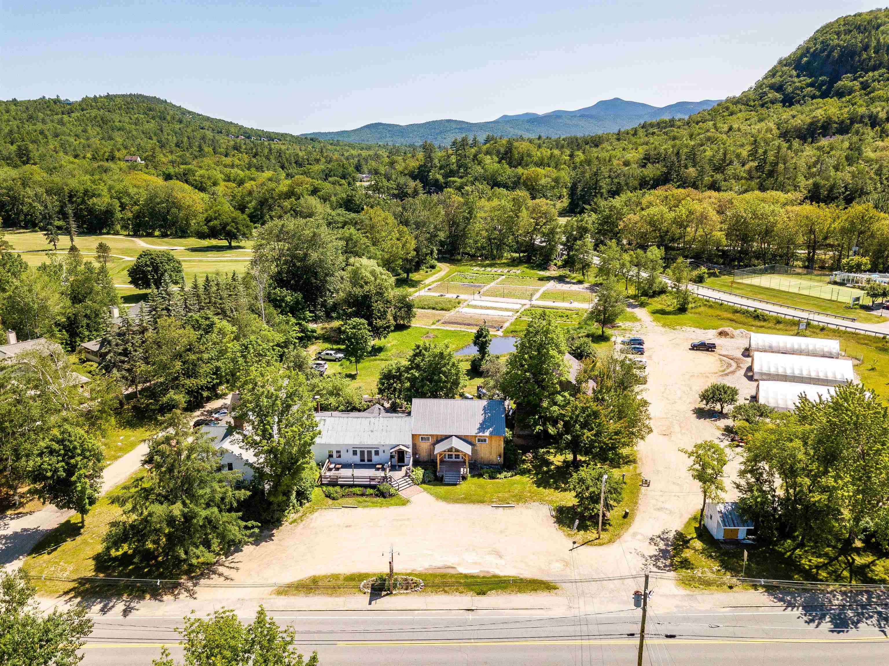 This incredible property in the heart of Jackson, NH offers a unique and versatile opportunity for a variety of uses. Currently, it operates as a nationally recognized, award winning, farm-to-table restaurant with a beautiful residence and catering facility along with attached retail space and extensive gardens, making it perfect for those seeking a business venture in a picturesque New England setting. The property has been thoughtfully upgraded, including a new roof, heating system, electrical service in the barn's retail space, and custom upgrades in the restaurant. The facility is fully equipped and ready for operation. In addition to the main buildings, there are three greenhouses with water and power, along with a farmstand for selling produce or homemade goods. The restaurant features local artistry, with custom cherry tables and hand-hewn beams, contributing to its unique charm. The attached farmhouse, which serves as the owner's quarters, has also undergone recent upgrades, including a new furnace. Commercial zoning offers flexibility, allowing for potential reconfiguration for mixed-use or residential purposes. The expansive parking area and high-capacity septic system further enhance the property's potential for various endeavors, from weddings and catering to other business opportunities. This is a rare chance to own an expansive property in Jackson Village with such flexibility and character, offering a truly special New England experience.