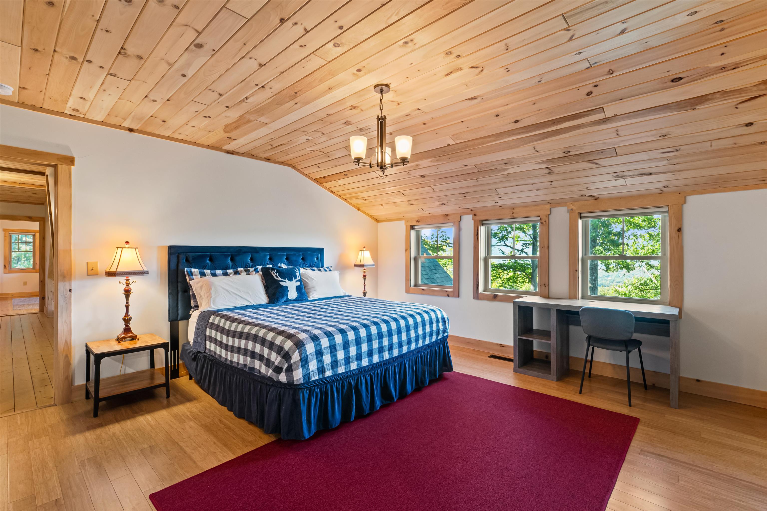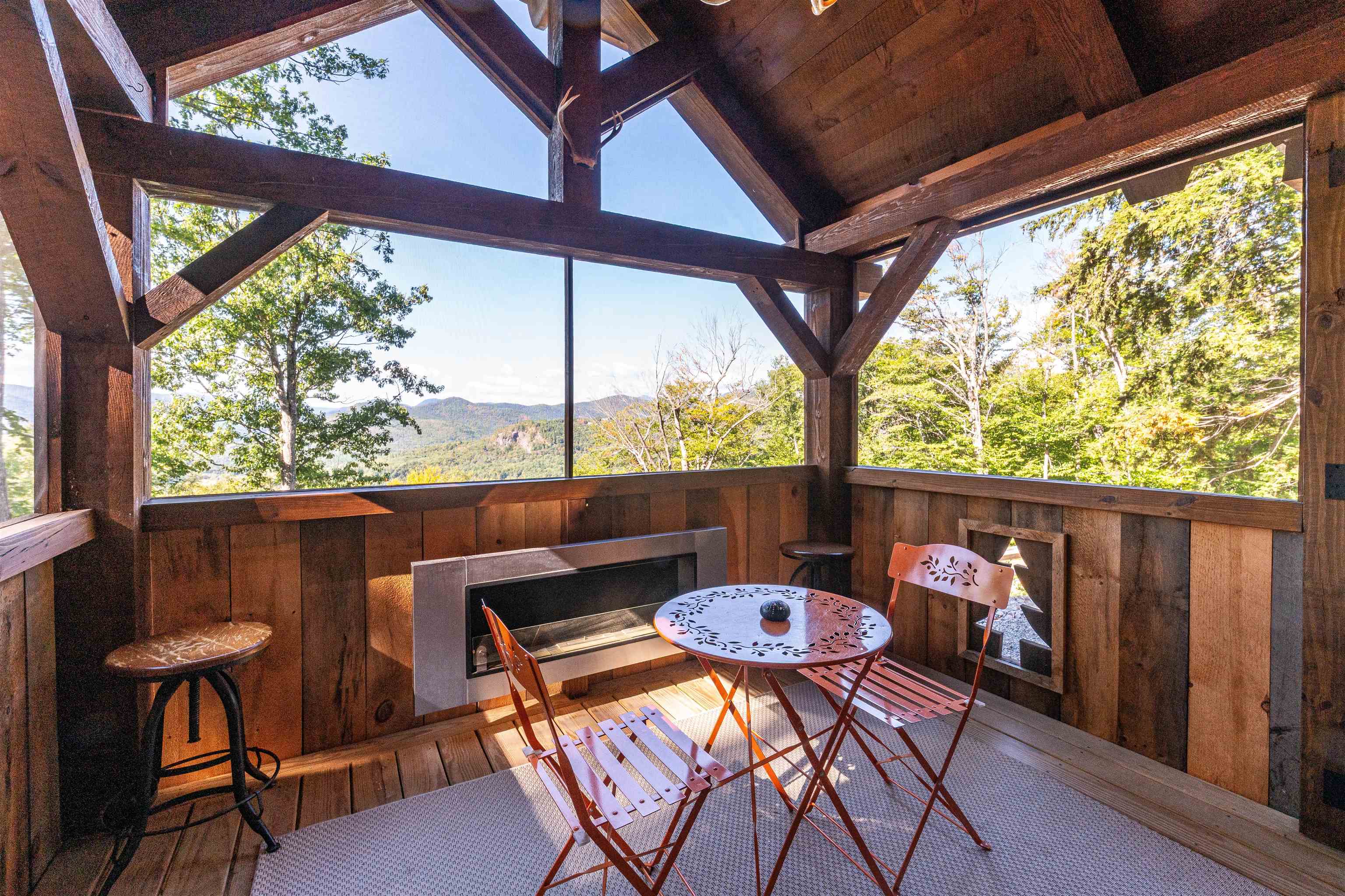 Experience White Mountain living in Bartlett, NH at its best in this furnished winter retreat and a welcoming year-round escape. This luxury 2022-built home in Linderhof is set on a private 1.7-acre lot with panoramic mountain views and space to breathe. Offering 4 bedrooms, 4.5 baths, and a guest apartment with its own entrance, kitchen, and bath, the layout is perfectly suited for full-time living, a second home, multi-generational use, hosting, or rental/income potential. Inside, the great room makes an immediate impression with soaring tongue-and-groove ceilings and windows that bring the outdoors in. The open-concept main level is designed for effortless gathering, featuring a well-appointed kitchen, stainless steel appliances, and a large center island, flowing into dining/living space anchored by a stone propane fireplace, the perfect backdrop for winter evenings and apres-ski comfort. A highlight is the screened porch with its own fireplace, extending the seasons and creating a cozy place to enjoy fresh mountain air throughout the year. Multiple primary suites offer convenience, privacy and comfort, while the guest apartment adds flexibility for visitors or additional income. Overlooking Bartlett and in the sought-after Linderhof, you'll enjoy easy access to skiing, hiking, golf, pickleball and bocce courts - all in the heart of the Mount Washington Valley. The HOA covers plowing, supporting low-stress winter ownership and first tracks!