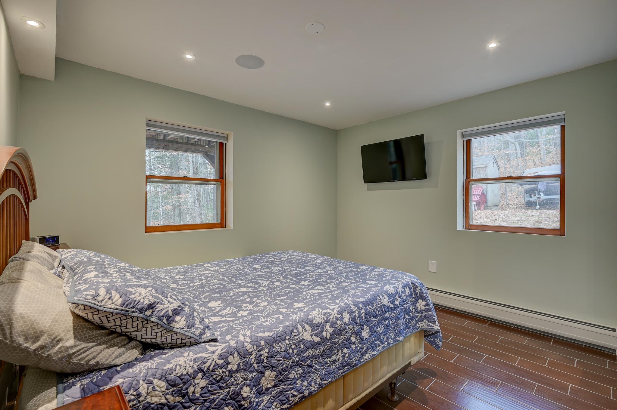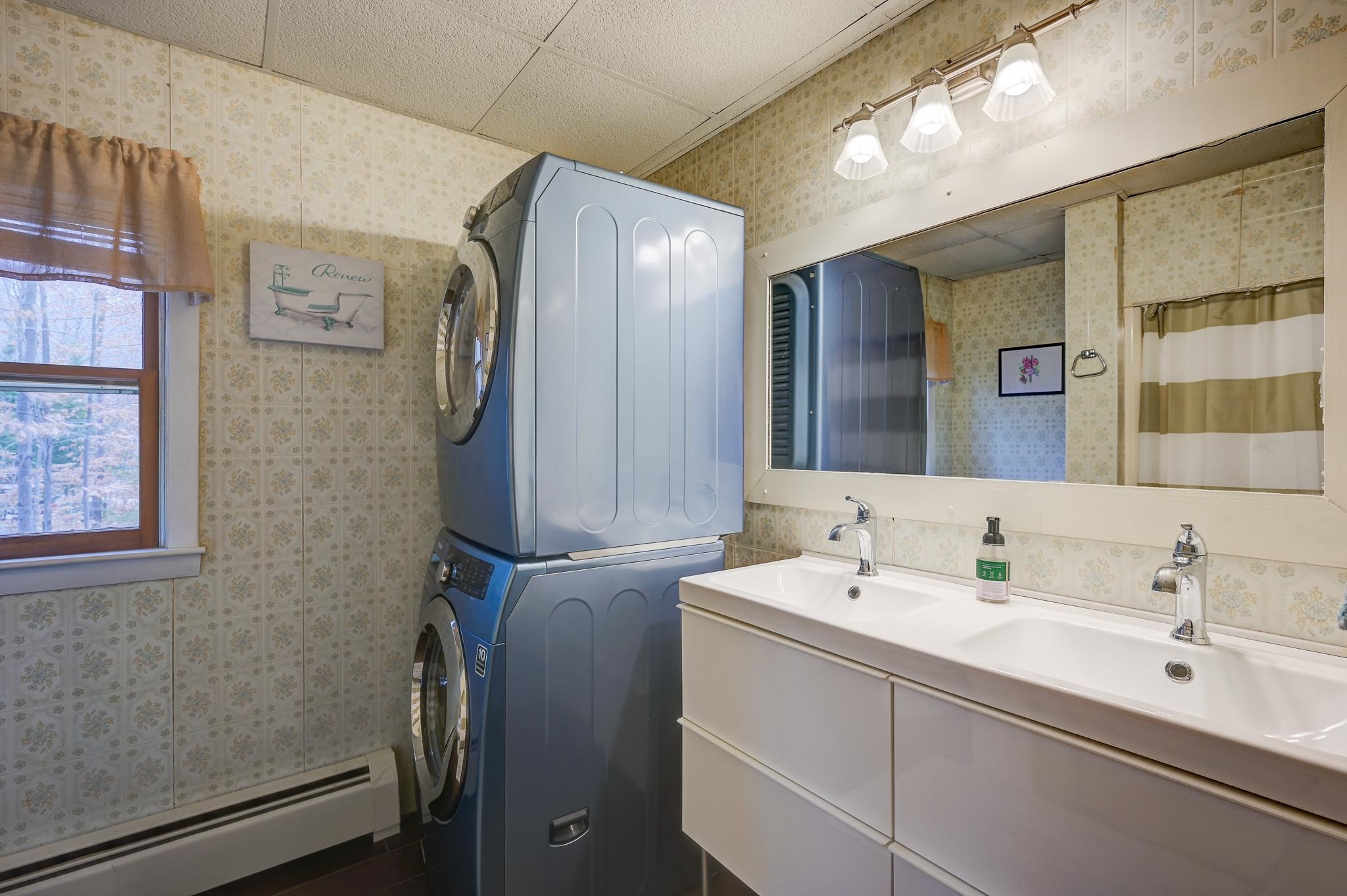 Year-round furnished rental - a cozy, charming Eidelweiss chalet featuring three bedrooms and a 3/4 bath on the first floor. Upstairs, enjoy an open living, kitchen, and dining area that opens to a sunny deck with filtered water views, plus a full bathroom with updated washer and dryer for added convenience. Spend your days relaxing at the association beaches, that are great for paddle boarding or kayaking, or hitting the slopes at King Pine, Cranmore Mountain, and any other nearby ski areas. Credit/background/tenancy check required. No smoking and no pets allowed.
