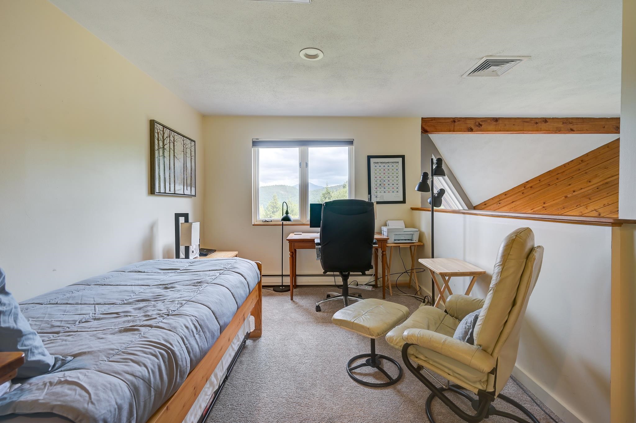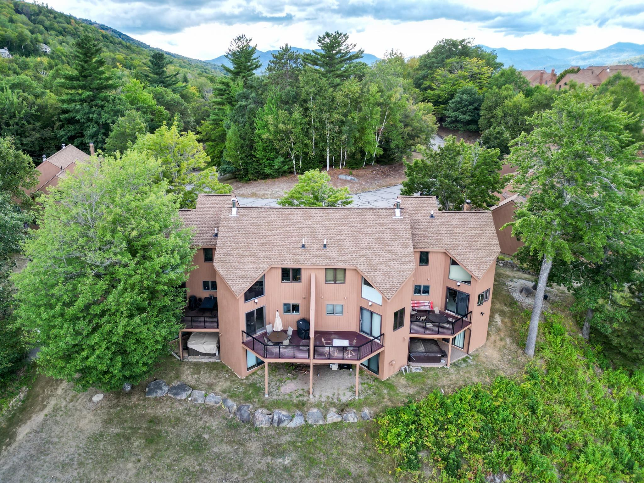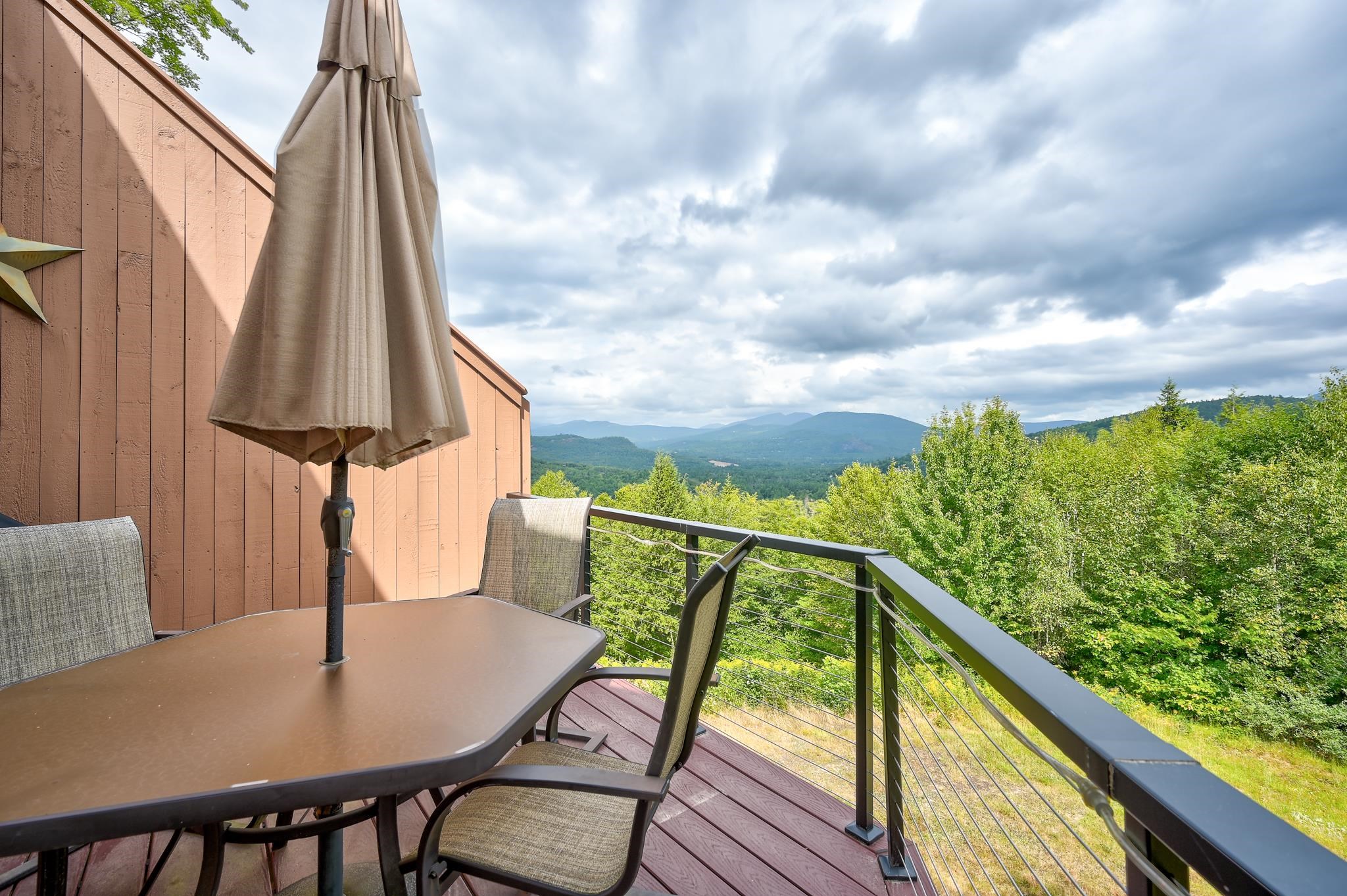 Enjoy beautiful Presidential views from this nicely renovated 3-bedroom, 2.5-bath, tri-level Top Notch condo, located just a short walk to Attitash and the new Mountaineer high-speed chairlift! Step into a spacious mudroom and enter the inviting main level featuring a warm, open-concept living area with wood stove and brick surround, rich wood accents, and a sun-filled dining space with sliders leading to a composite deck. The updated kitchen and convenient half bath complete this level. The entire second floor is dedicated to the private primary suite, complete with a bonus area ideal for a cozy reading nook or a home office with a view. The walkout lower level offers a comfortable family room, full bath, and two additional bedrooms. The condo also offers central a/c for the warmer months. Move-in ready and perfectly located for all-season enjoyment, this is mountain living at its best!