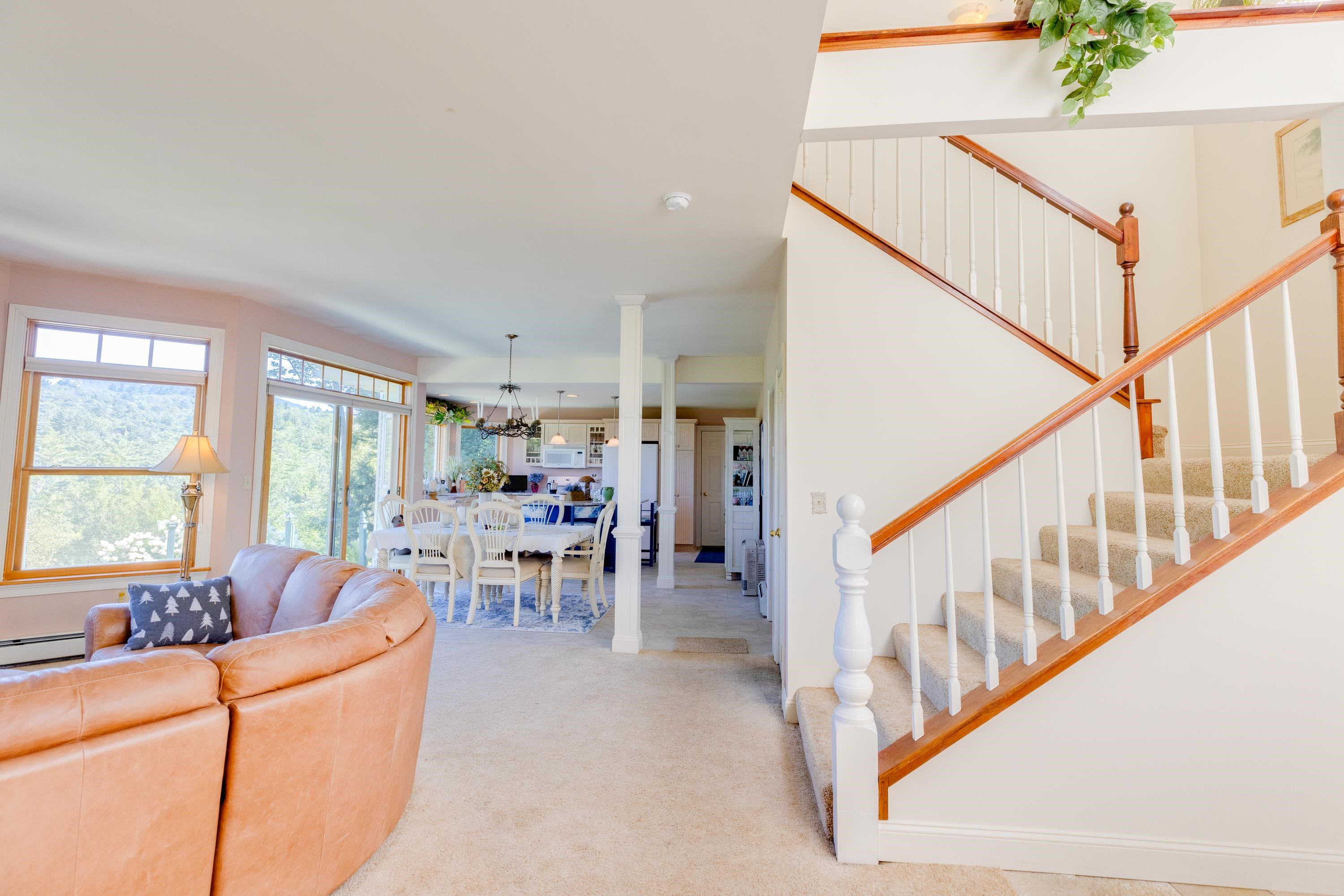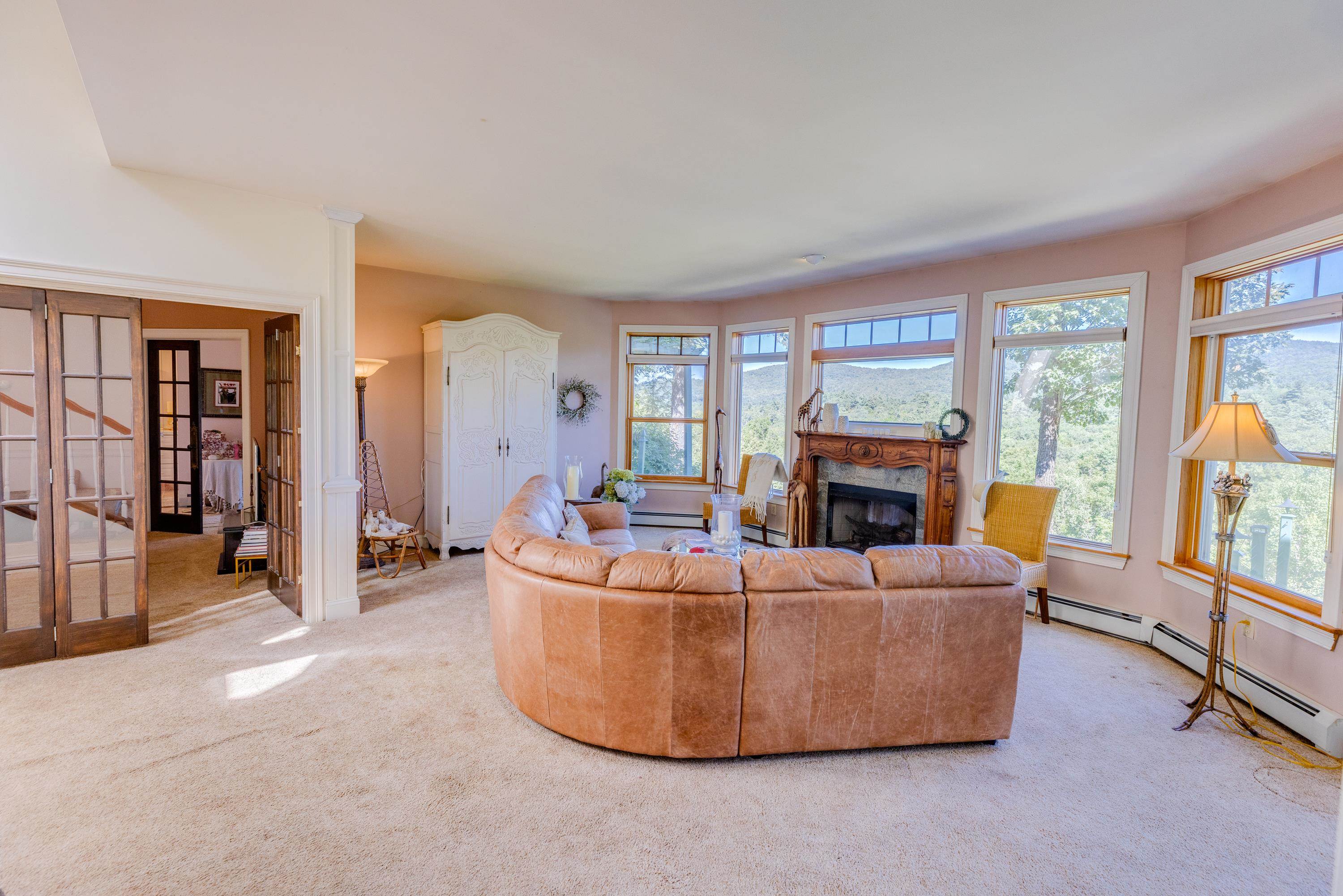 Perched high above the Mad River, this 4-bedroom, 4-bath home, built in 2003, offers breathtaking views of Welch/Dickey Mountains. An entire wall of windows fills the home with natural light and showcases the White Mountains. The main-level primary suite features a private deck with an ivy-covered pergola, walk-in closet, and an open-concept bath with Jacuzzi tub, double sinks, and shower, plus an office/den. With 9ft ceilings on main level you'll enjoy the open living and dining area flowing nicely into the kitchen with a new granite island, walk-in pantry, first-floor laundry, and half bath. Expansive decks provide the perfect setting to relax or entertain. Upstairs there are three bedrooms, two baths, and a loft sitting area. Full walkout basement, two-car garage with bonus room, and recently painted exterior with covered porch and perennial gardens to enjoy. Enjoy skiing, hiking, and biking from your door, with Waterville Valley Ski & Golf Resort minutes away as well as Owl's Nest Golf Resort just down the road. 2 hours from Boston via I-93, Exit 28. Lakes Region is about 20min away to Squam Lake. This mountain retreat gives you comfort, style, and adventure and is move-in ready and waiting for your next chapter!
