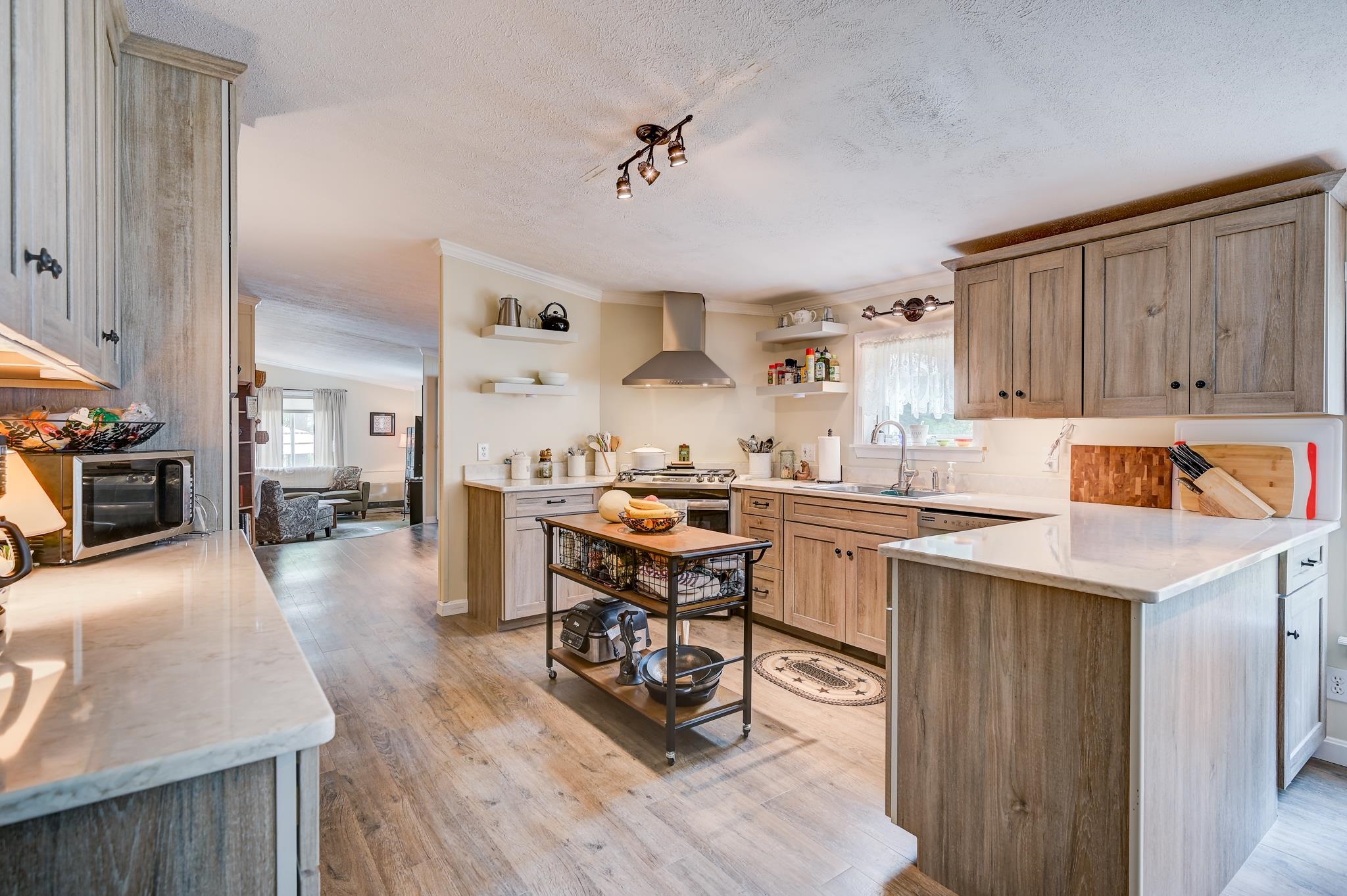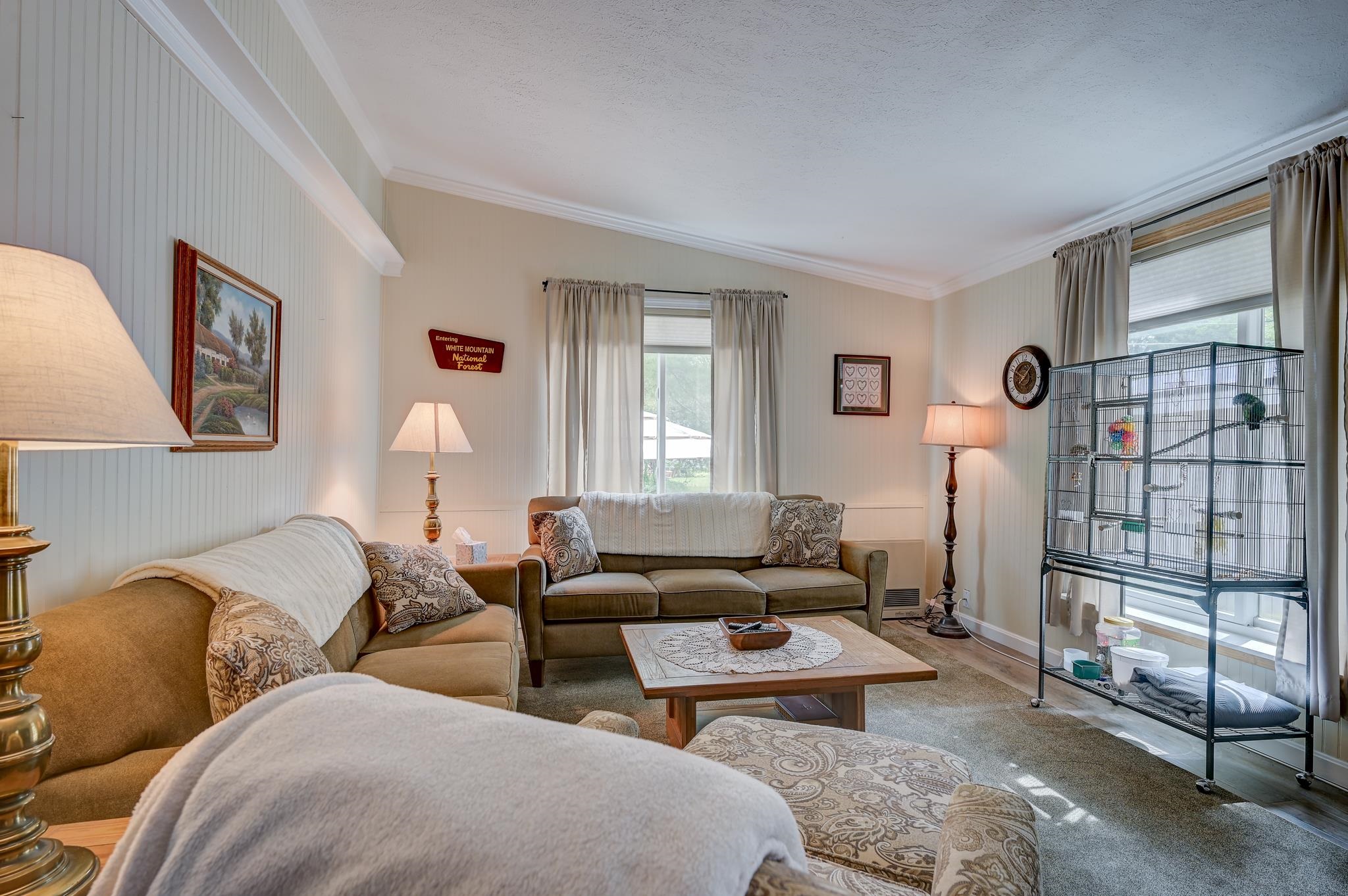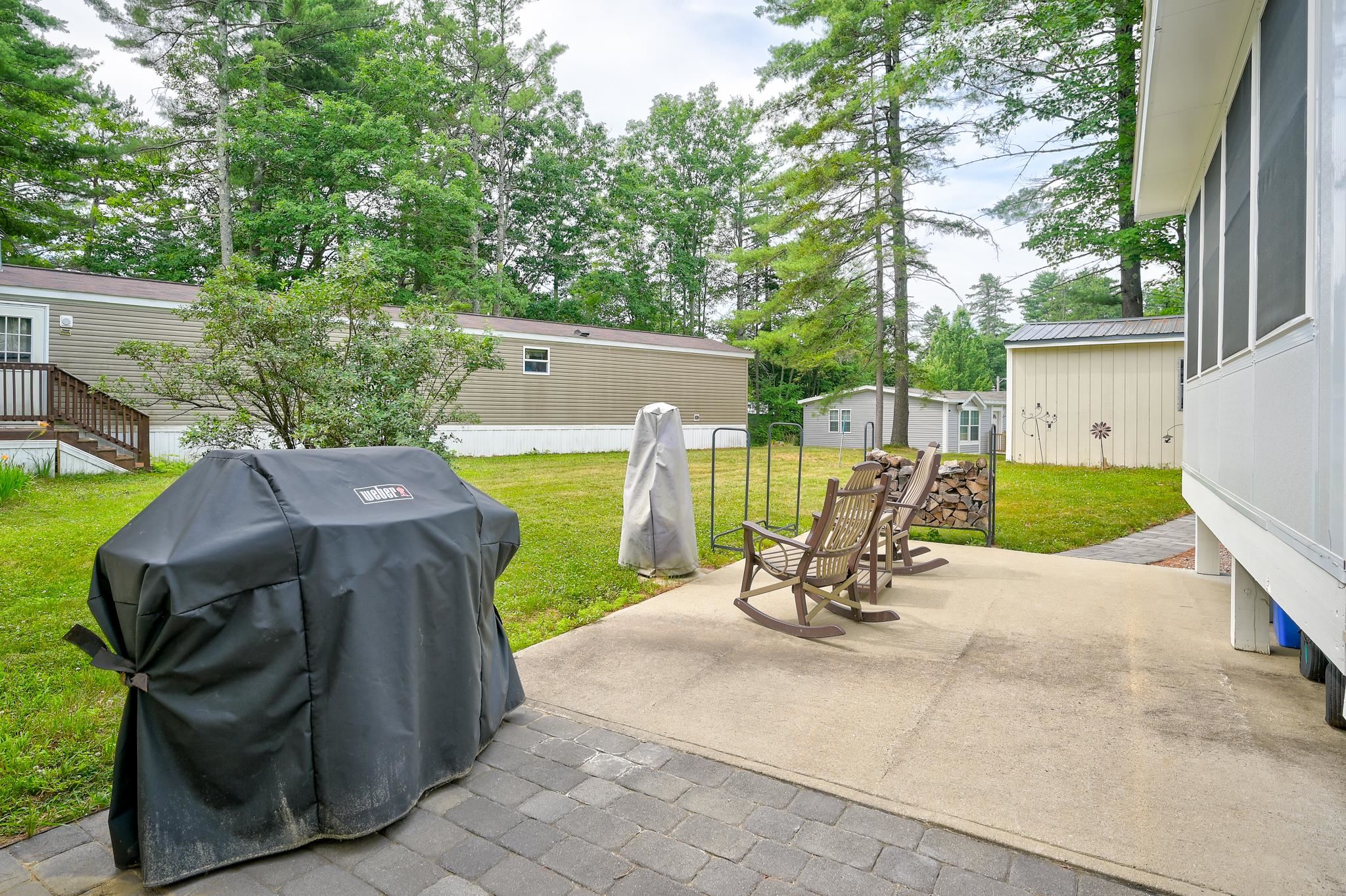Welcome to this beautifully updated and fully furnished 3-bedroom, 2-bath mobile home, ideally situated on a spacious corner lot. This move-in-ready home offers a perfect combination of comfort, style, and functionality, featuring a bright and cheerful living room. A modern eat-in kitchen with all-quartz countertops, oversized cabinetry, and stainless steel appliances. The primary suite includes a private bath, while two additional bedrooms provide flexible space for guests, family, or a home office. Extensive upgrades include a new shingle roof, new sub flooring throughout, new laminate and carpet flooring, remodeled bathrooms, custom window shades, insulated skirting, a tankless water heater, and updated systems including an FHA propane furnace and Rinnai heater in livingroom. Nearly all windows have been replaced, and both a covered front porch with a woodstove and a covered back porch offer great spaces for relaxing or entertaining. A 1-car garage adds extra convenience. Located just minutes from Mount Washington Valley's shopping, hiking, skiing, and outdoor adventures, this home also includes private access to a community beach on the Saco River. Whether you're looking for a full-time home, a retirement retreat, or an affordable vacation getaway, this property has it all--schedule your showing today!