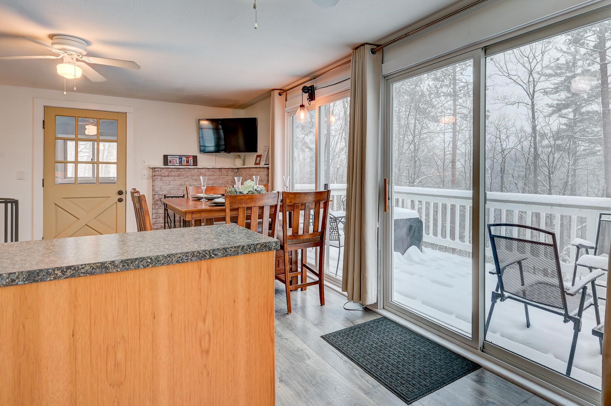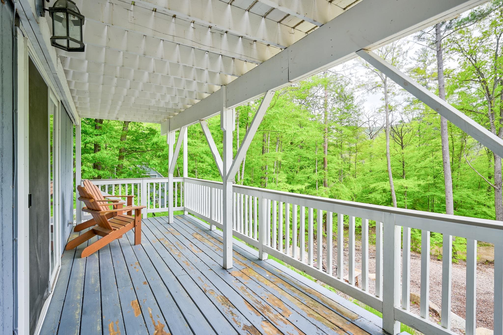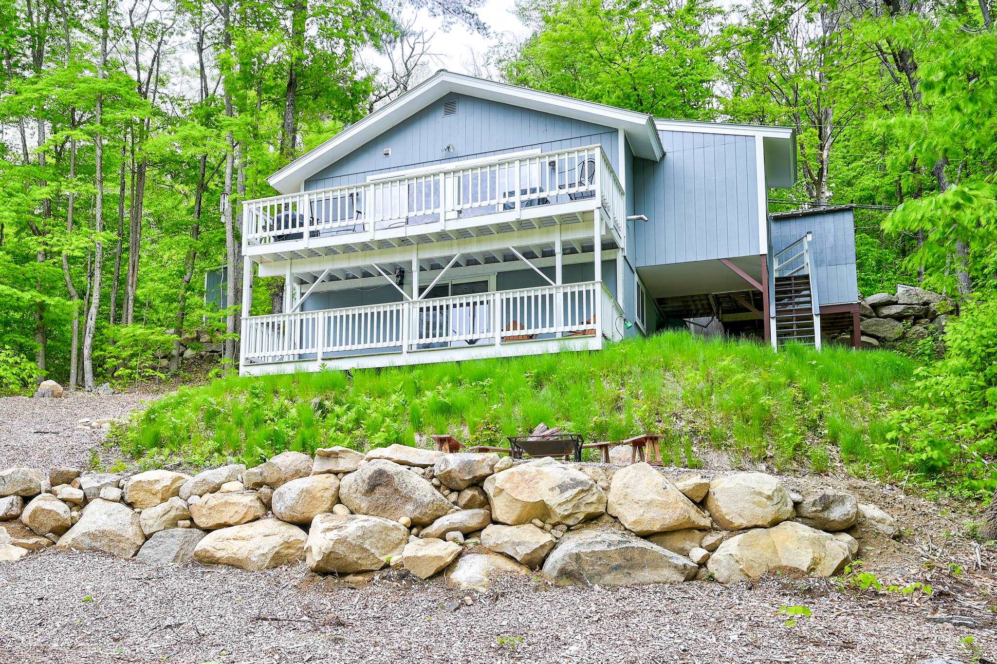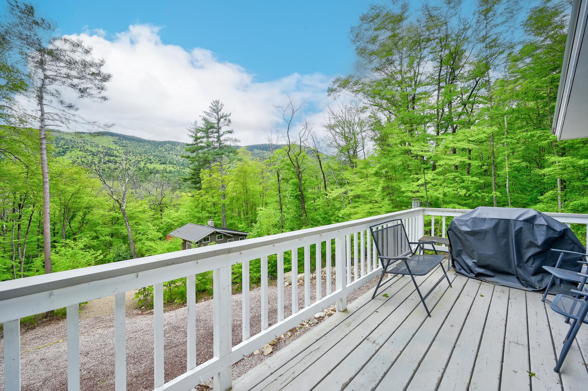 Mountain views, river access, and decks on both levels make this furnished Bartlett chalet the perfect four-season escape. Tucked into a quiet Mt. Washington Valley neighborhood, this 3-bedroom, 2-bath retreat offers scenic views and glimpses of the Saco River from spacious decks that are ideal for quiet summer mornings or apres-ski dinners. Private access to a sandy stretch of the Saco River is just down the road, adding a peaceful bonus to your mountain lifestyle. Inside, the open-concept kitchen and bonus living space flow right outside, blending comfort with the natural surroundings. The main level includes two bedrooms, a full bath, and a cozy living room with a pellet stove and stone hearth. Downstairs, the finished lower level adds flexibility with a family room, third bedroom, second full bath, and laundry room. A dedicated mudroom keeps your outdoor gear organized, and there's additional outdoor storage too. Set on nearly half an acre, the lot has been thoughtfully cleared to open up the view while keeping wooded privacy. With a new roof, new septic, low Bartlett taxes, and a fully furnished setup, this home is ready for you. Located just five minutes from Attitash and under 15 from North Conway and Cranmore, this is mountain living made simple, comfortable, and close to it all.