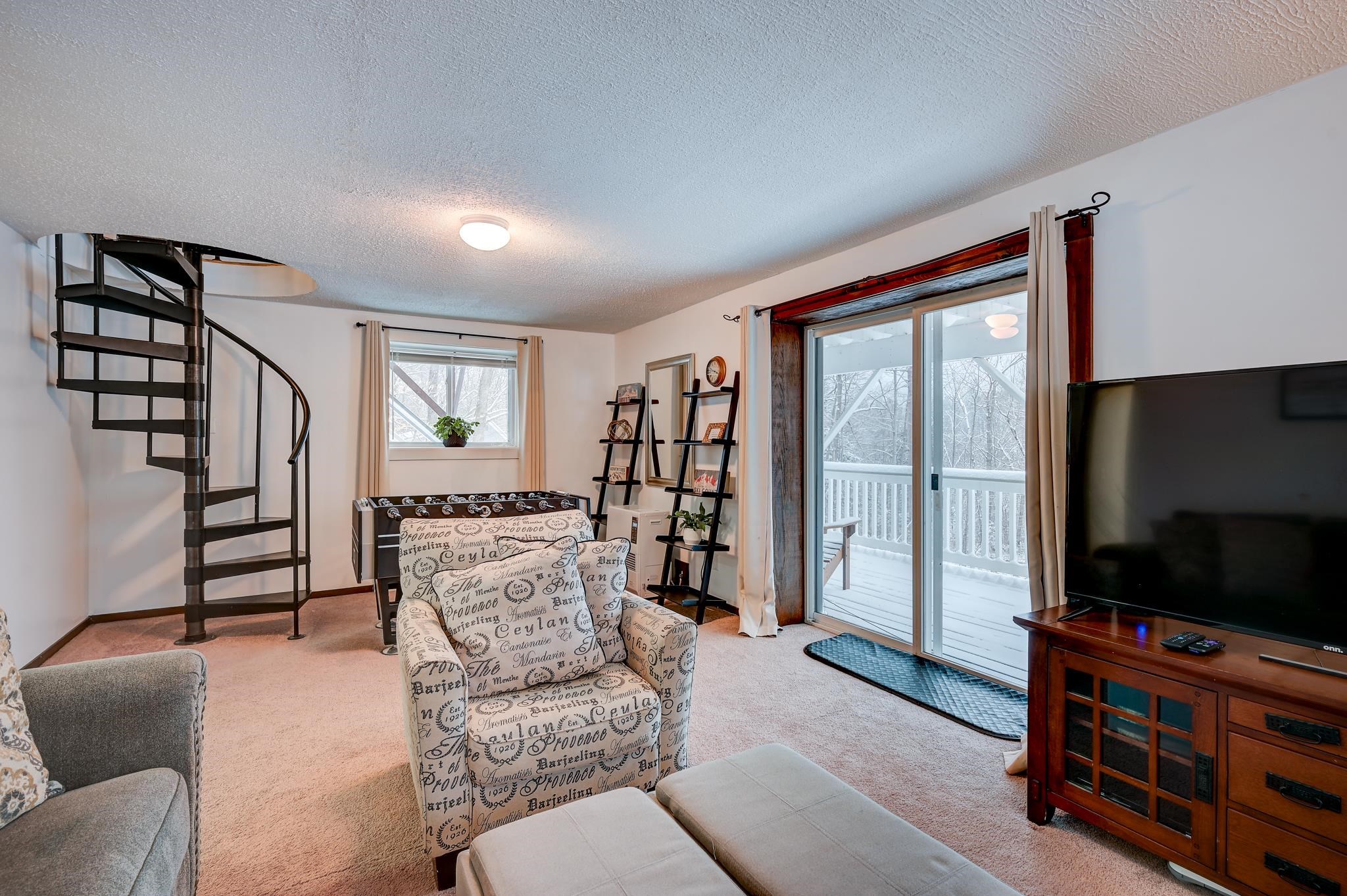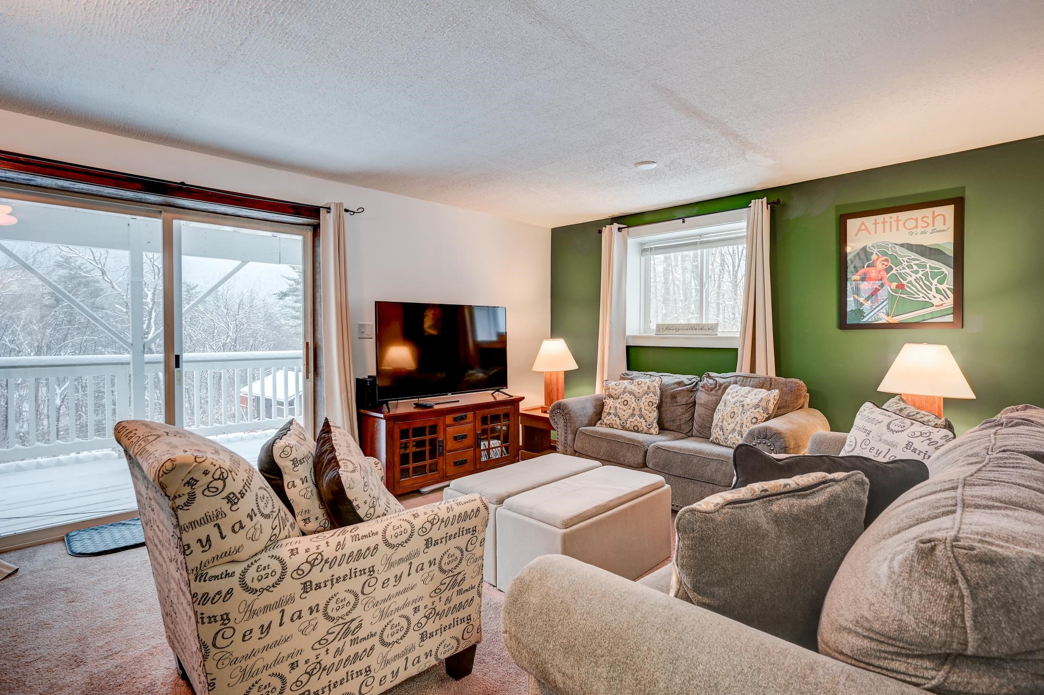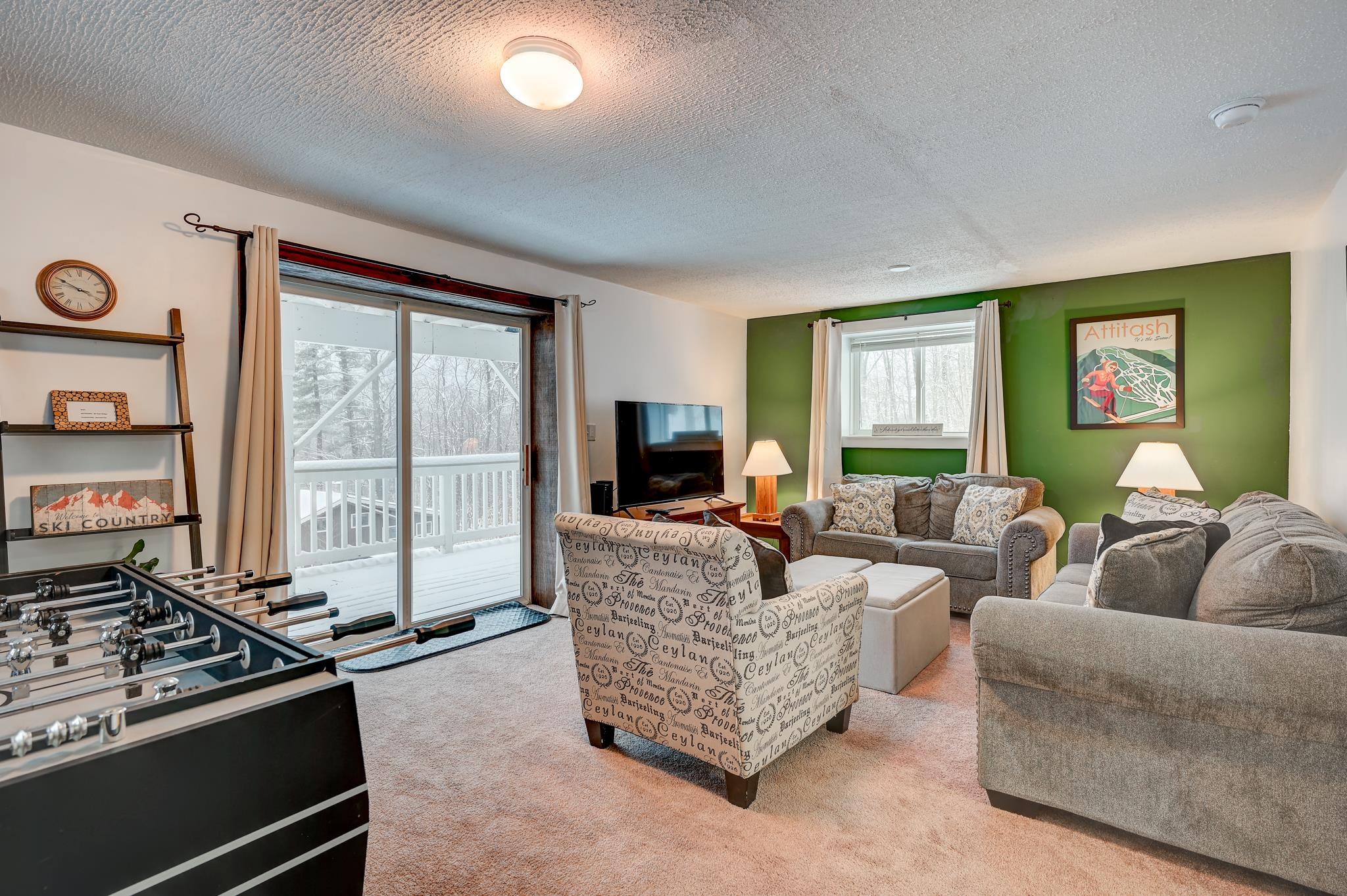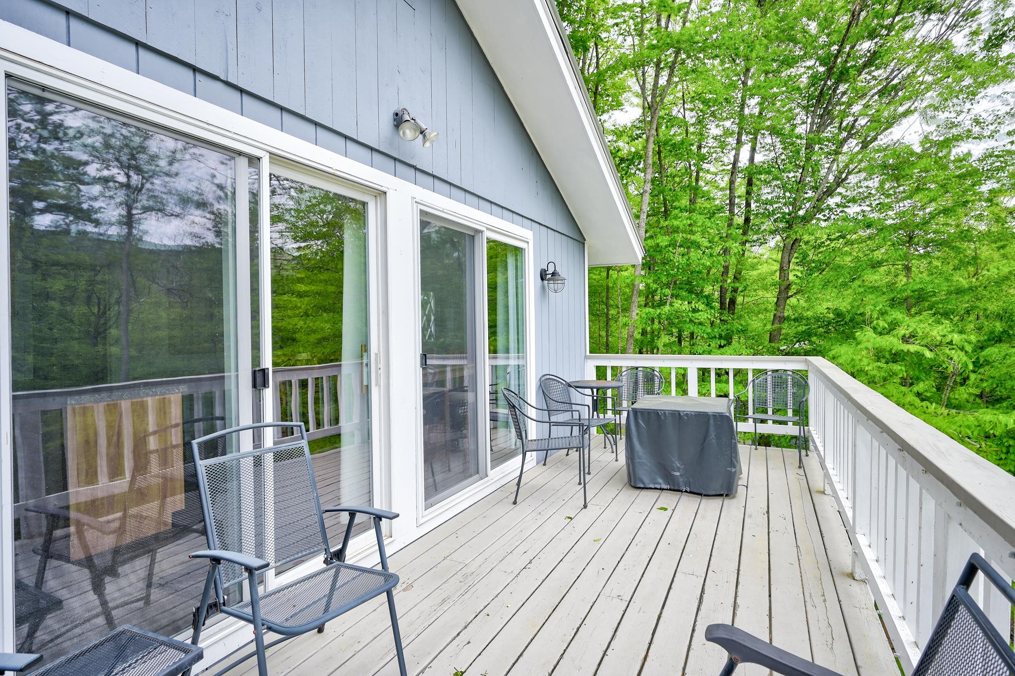 Mountain views, river access, and decks on both levels make this furnished Bartlett chalet the perfect four-season escape. Tucked into a quiet Mt. Washington Valley neighborhood, this 3-bedroom, 2-bath retreat offers scenic views and glimpses of the Saco River from spacious decks that are ideal for quiet summer mornings or apres-ski dinners. Private access to a sandy stretch of the Saco River is just down the road, adding a peaceful bonus to your mountain lifestyle. Inside, the open-concept kitchen and bonus living space flow right outside, blending comfort with the natural surroundings. The main level includes two bedrooms, a full bath, and a cozy living room with a pellet stove and stone hearth. Downstairs, the finished lower level adds flexibility with a family room, third bedroom, second full bath, and laundry room. A dedicated mudroom keeps your outdoor gear organized, and there's additional outdoor storage too. Set on nearly half an acre, the lot has been thoughtfully cleared to open up the view while keeping wooded privacy. With a new roof, new septic, low Bartlett taxes, and a fully furnished setup, this home is ready for you. Located just five minutes from Attitash and under 15 from North Conway and Cranmore, this is mountain living made simple, comfortable, and close to it all.