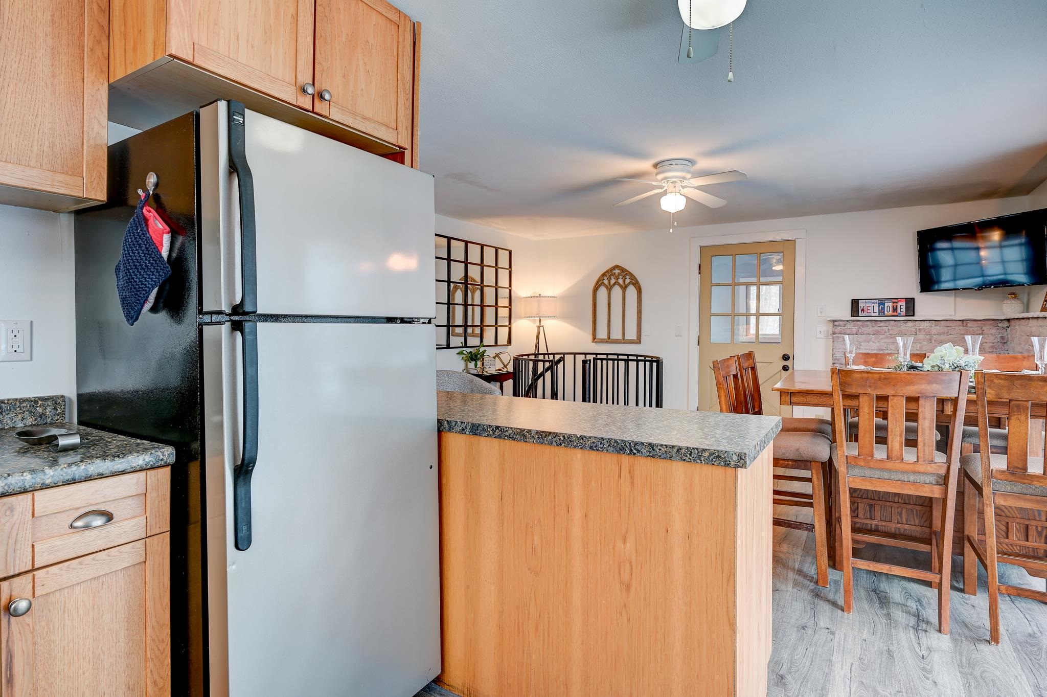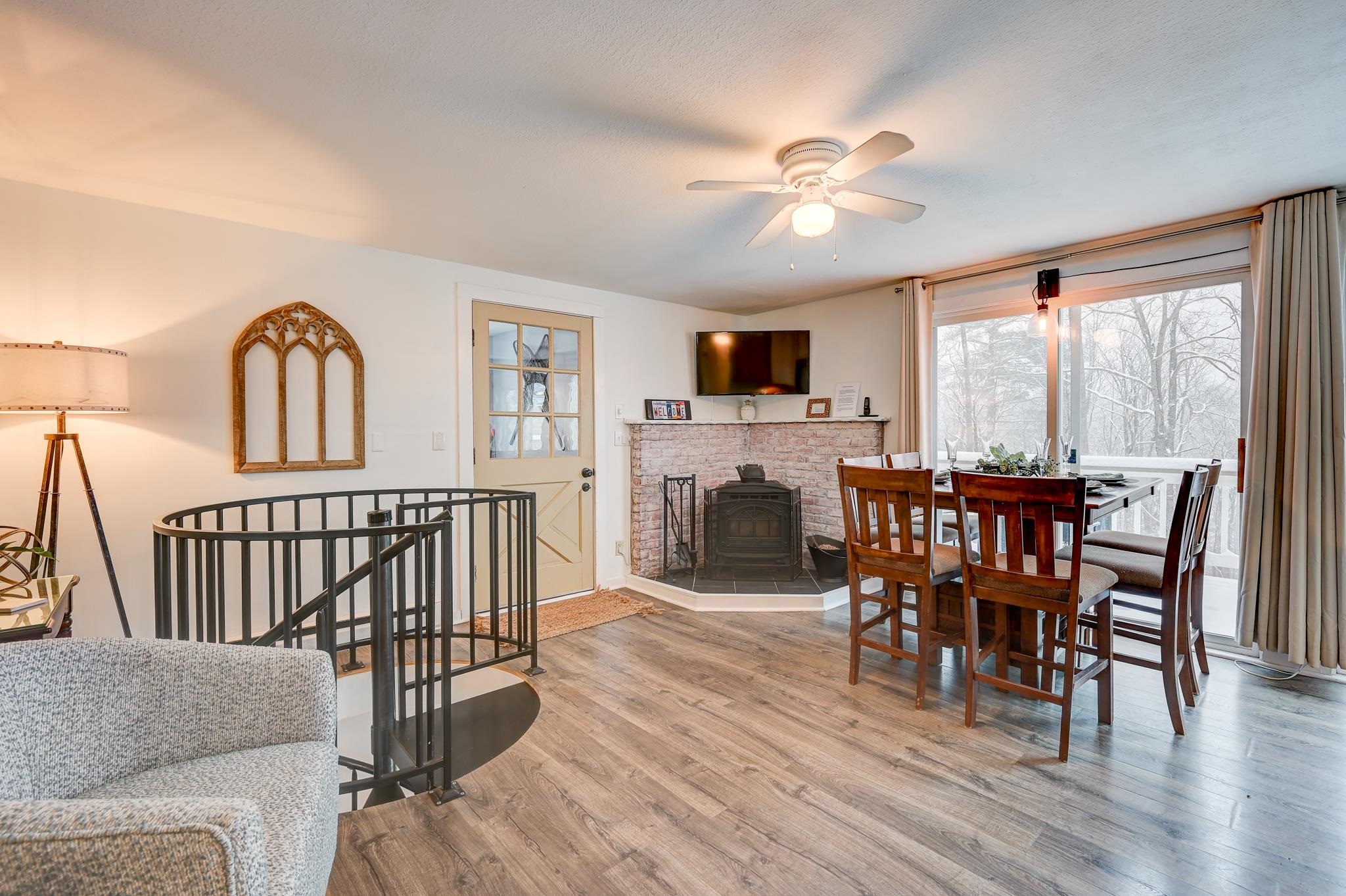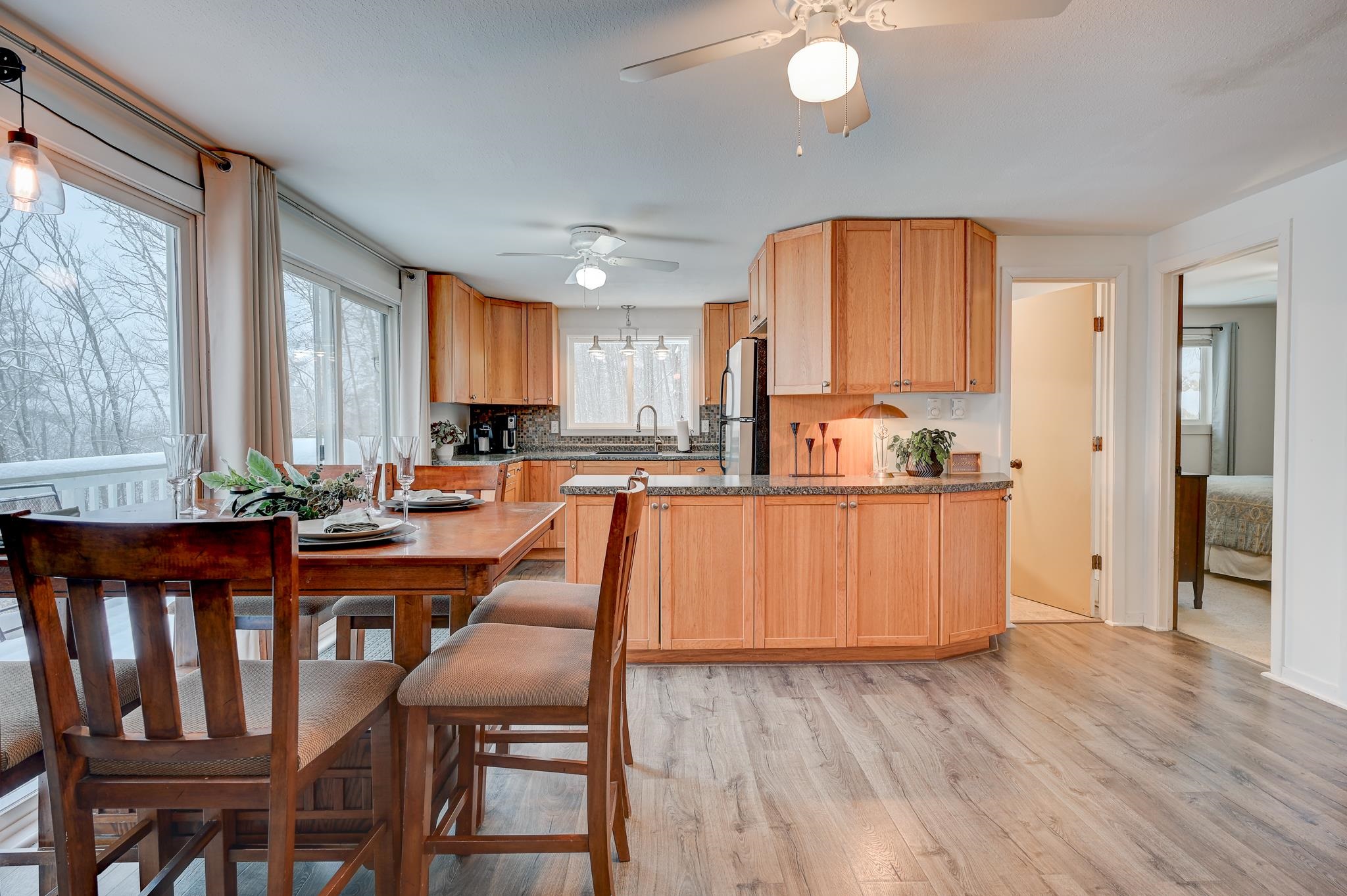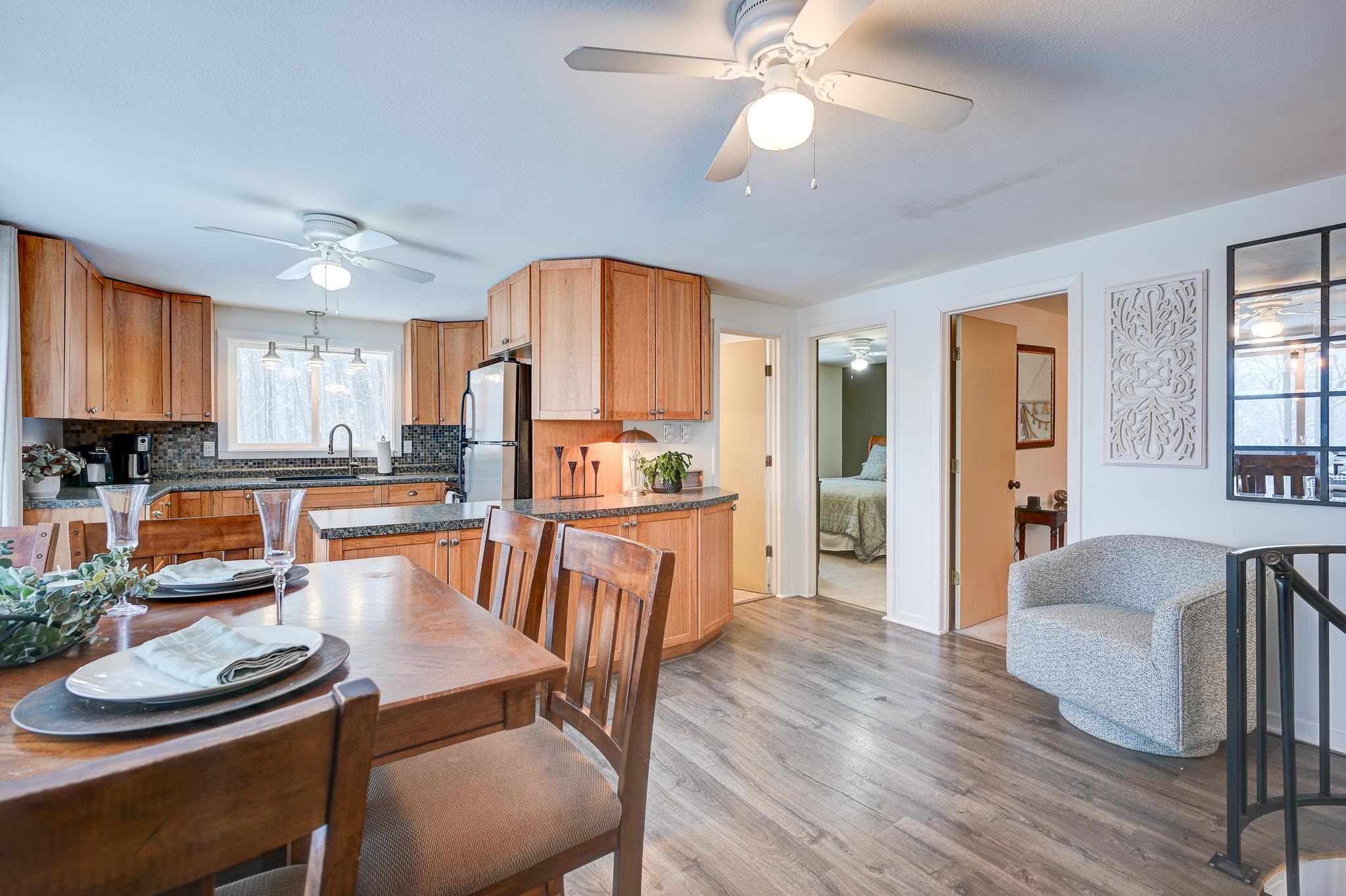 Mountain views, river access, and decks on both levels make this furnished Bartlett chalet the perfect four-season escape. Tucked into a quiet Mt. Washington Valley neighborhood, this 3-bedroom, 2-bath retreat offers scenic views and glimpses of the Saco River from spacious decks that are ideal for quiet summer mornings or apres-ski dinners. Private access to a sandy stretch of the Saco River is just down the road, adding a peaceful bonus to your mountain lifestyle. Inside, the open-concept kitchen and bonus living space flow right outside, blending comfort with the natural surroundings. The main level includes two bedrooms, a full bath, and a cozy living room with a pellet stove and stone hearth. Downstairs, the finished lower level adds flexibility with a family room, third bedroom, second full bath, and laundry room. A dedicated mudroom keeps your outdoor gear organized, and there's additional outdoor storage too. Set on nearly half an acre, the lot has been thoughtfully cleared to open up the view while keeping wooded privacy. With a new roof, new septic, low Bartlett taxes, and a fully furnished setup, this home is ready for you. Located just five minutes from Attitash and under 15 from North Conway and Cranmore, this is mountain living made simple, comfortable, and close to it all.