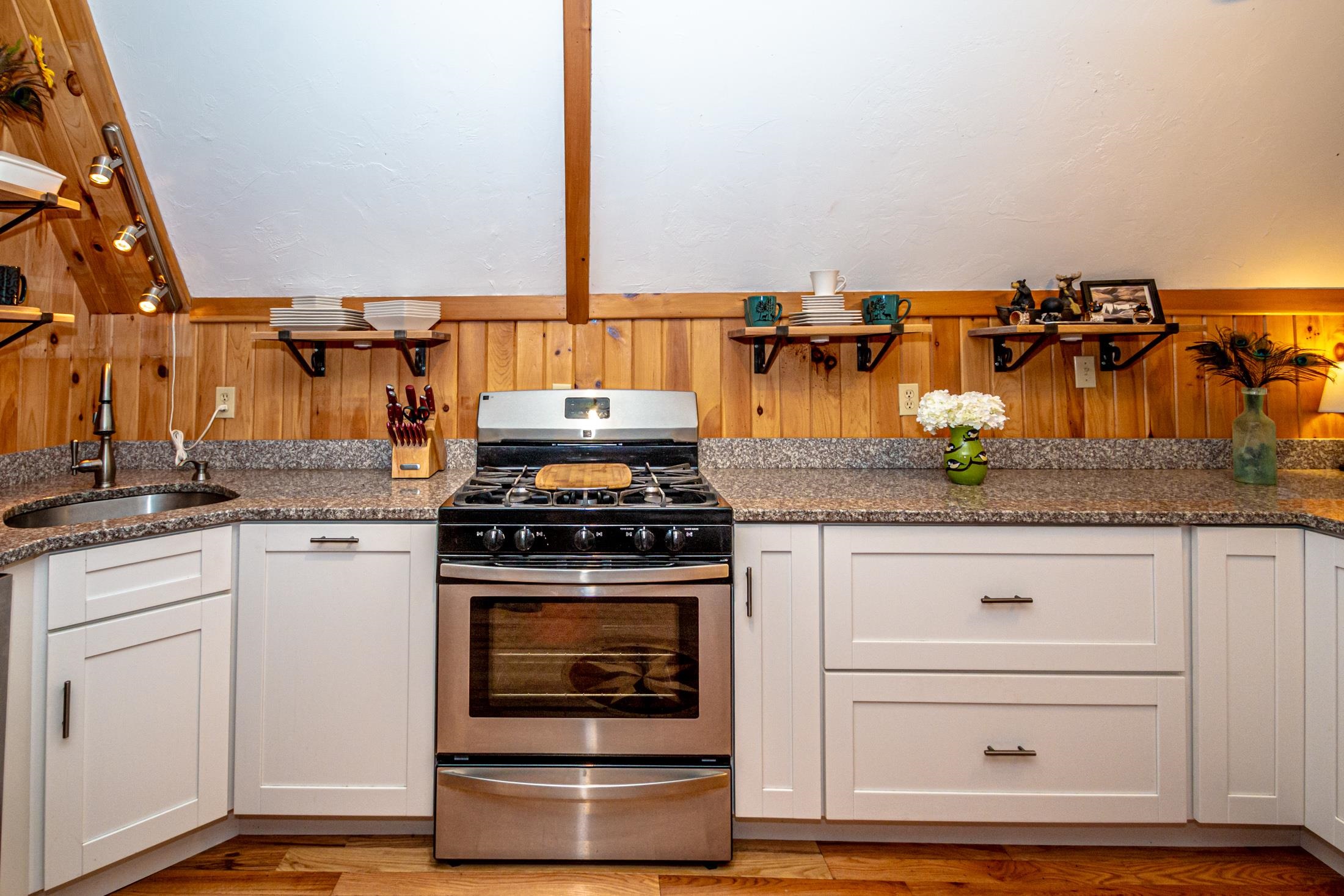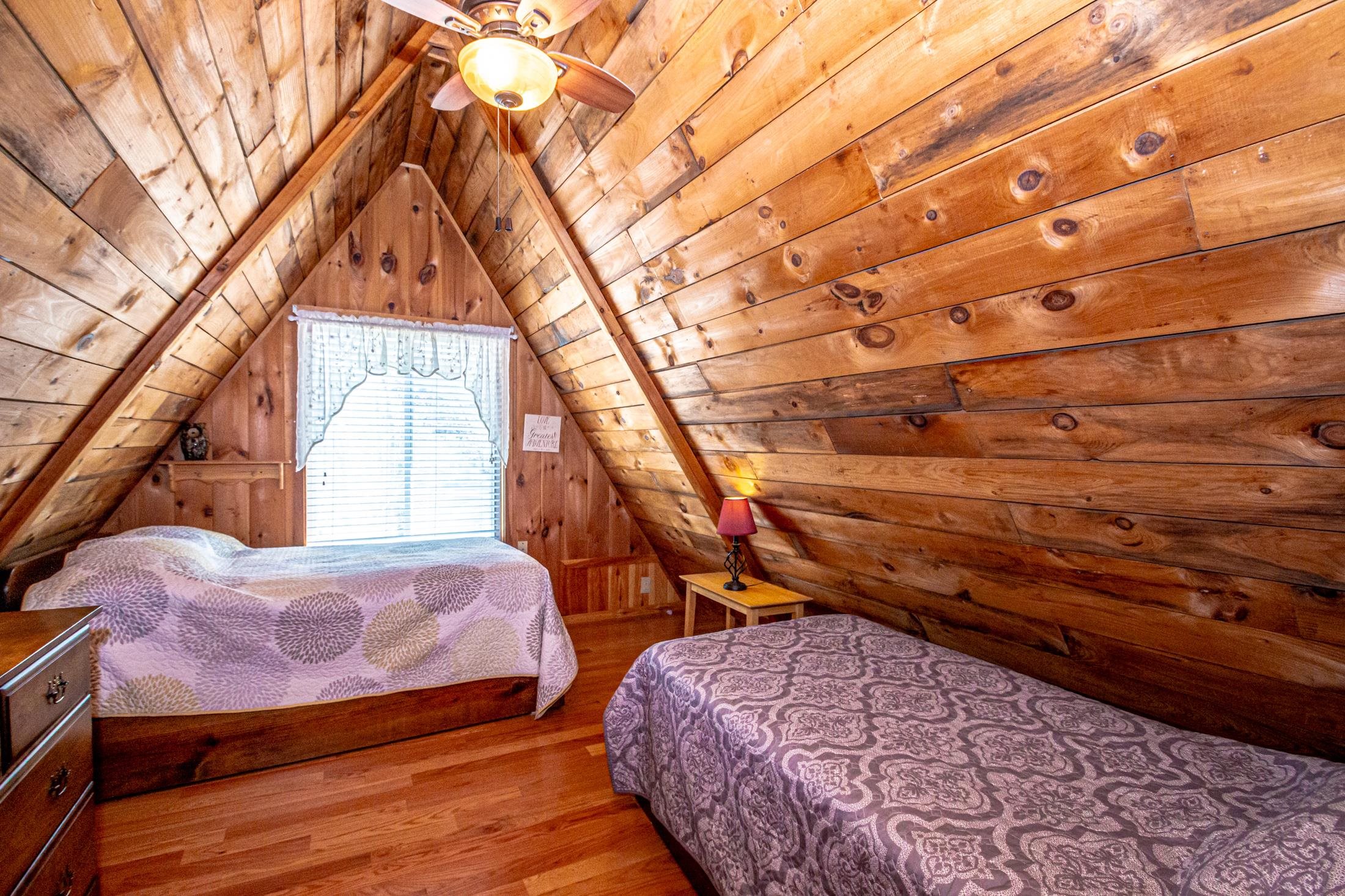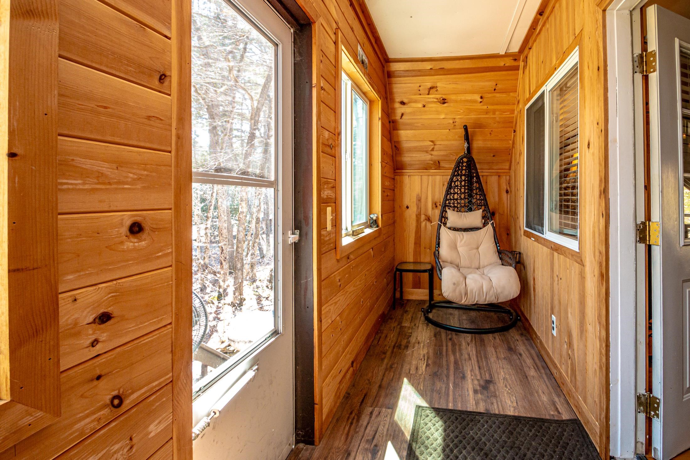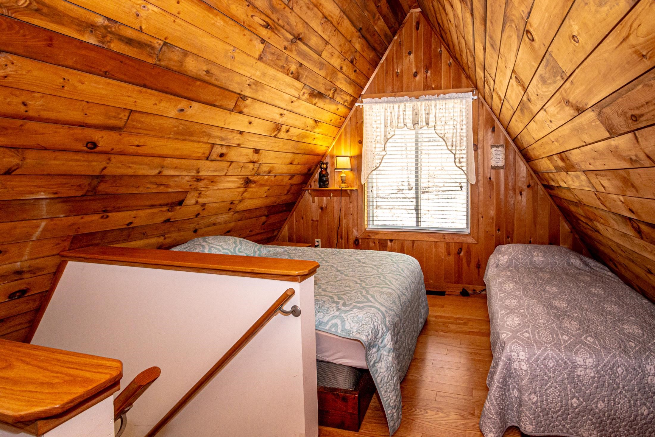 Adorable 2-bedroom house in Eidelweiss, just 1 minute walk to the shared beach on Little Pea Porridge Pond. This property has been lovingly cared for with recent updates to the kitchen and bath. The enclosed front porch can double as a mud room where you can kick off your shoes or stow your gear before entering. Inside you'll see a very efficient use of space in this cozy open concept home. There is hardwood flooring on both levels, with artistic wood inlay designs and a newly tiled bath. The well-designed kitchen has granite counters, quality cabinets and stainless appliances. The living room, full bath and den areas round out the main floor with the2 bedrooms upstairs. There are sliders out to the back deck, there is a fire pit area, plus under the front porch there is access to the basement with locked storage. This is a turnkey property being sold fully furnished down to the dishes! Location is great as you get access to the 3 ponds in Eidelweiss, along with beach and boating access to Silver Lake, close to the mountains for skiing and hiking, rivers for kayaking, plus shopping and restaurants of Mt Washington Valley.