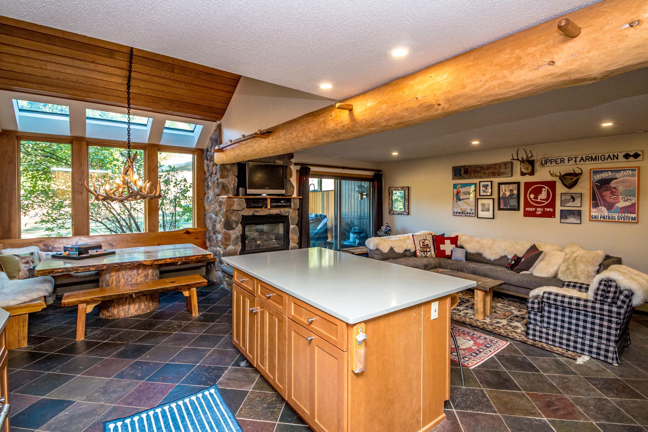 Mountainside on Attitash Trailside Townhouses - Ski-In, Ski-Out and enjoy the adventure of living on the slopes of Attitash. 3 Bedrooms, 3 full baths. The open living design boasts an updated kitchen with beautiful cabinetry, countertops, a large island and a slab dining table with built-in benches making it perfect for family gatherings or hosting friends. The townhouse boasts log-themed accents to give you that upcountry rustic feel. The perfect location of #4, overlooking the Far Out Ski Trail, make this a must see. Ride the Mountaineer high speed quad and ski from the summit of Attitash down to the base lodge stopping at the condo for lunch. Hike or bike nearby trails, enjoy the pool and tennis on site or head out to Matty B's across from the mountain. Explore Mount Washington Valley restaurants and shopping in nearby Glen, Jackson and North Conway. Call Mountainside home!