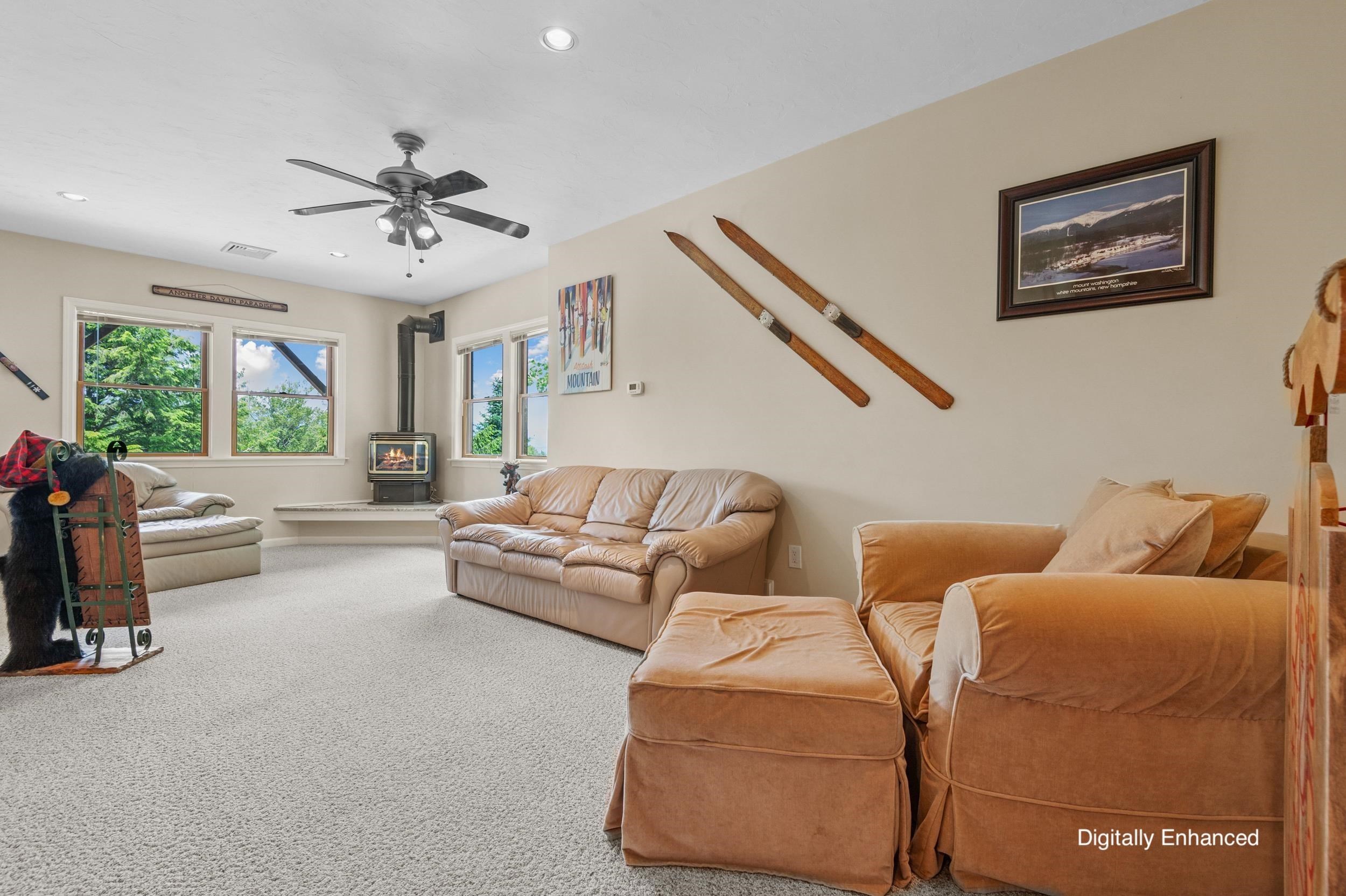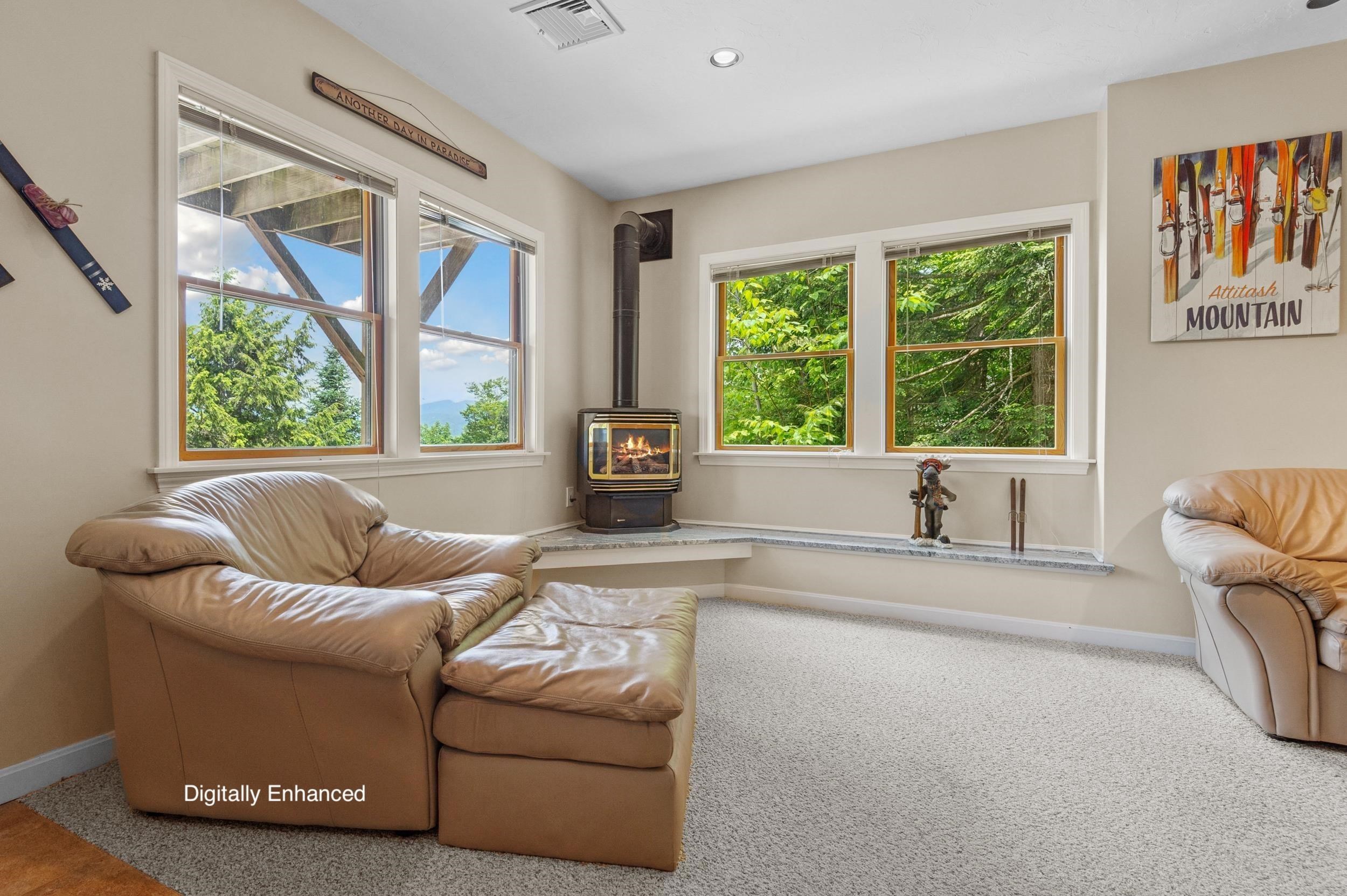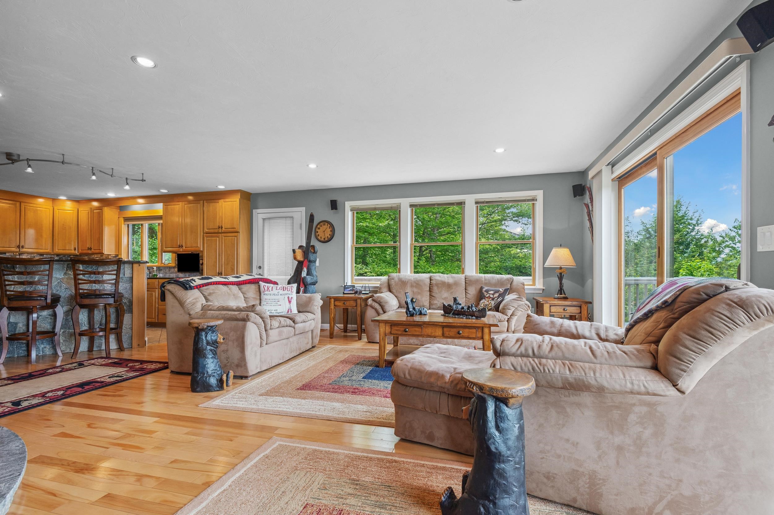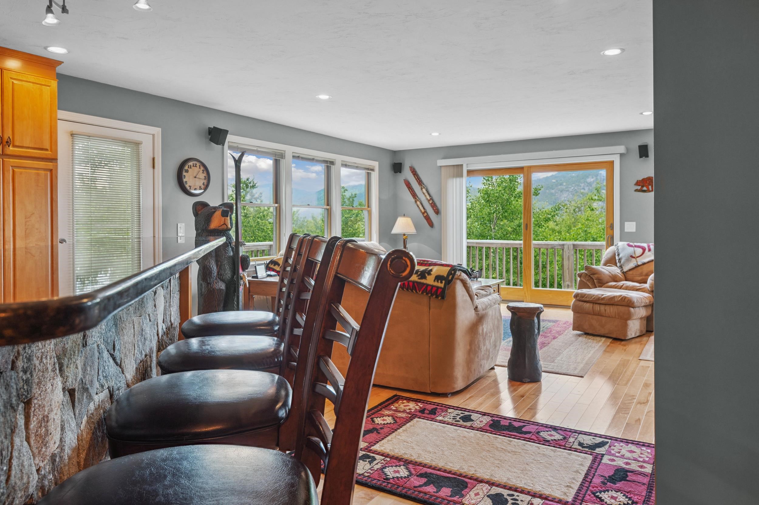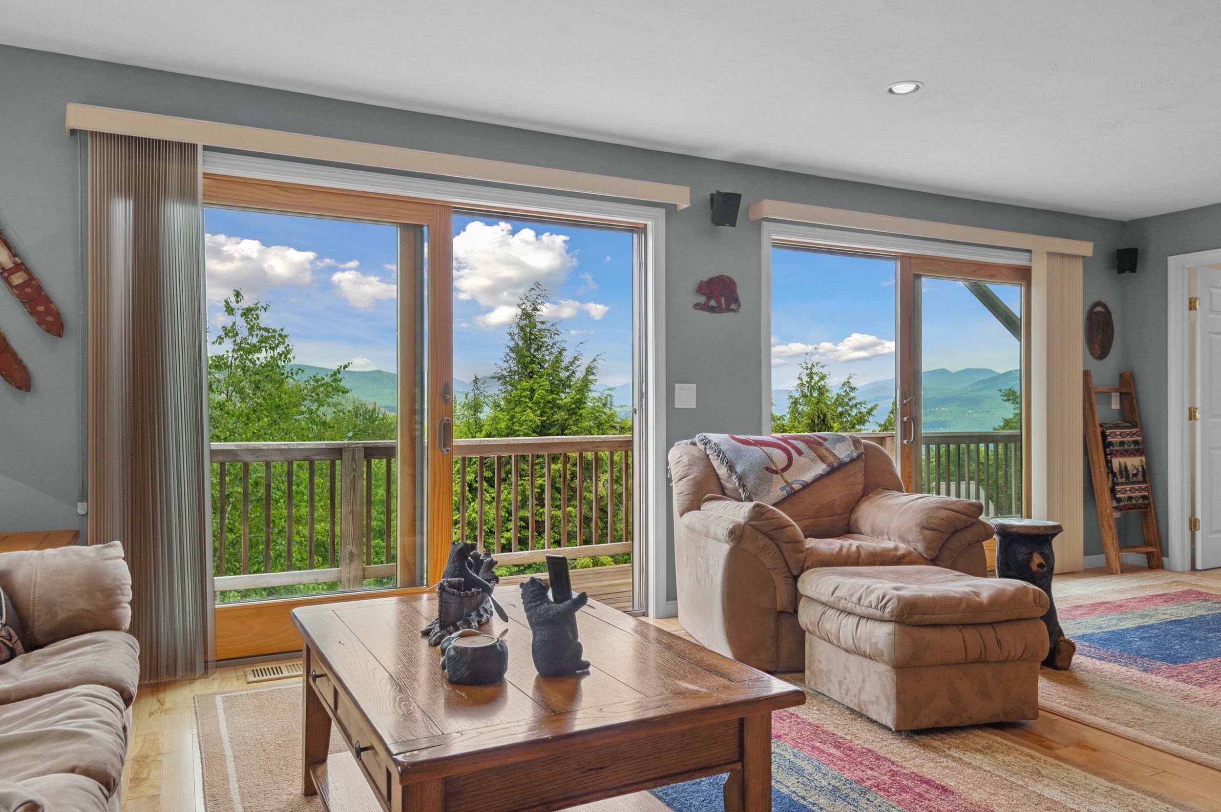 Ski-In Luxury with PANORAMIC MOUNTAIN VIEWS! Welcome to your dream mountain retreat--perched directly behind Attitash Mountain with ski-to-your-door convenience and sweeping 180deg mountain views. This meticulously maintained 3-bedroom, 4-bathroom home offers a seamless blend of upscale living and four-season adventure in one of the most sought-after communities in the White Mountains. Step inside to an open-concept main level filled with natural light, featuring gleaming hardwood floors, a warm and inviting living area, and a 100-foot wraparound deck perfect for soaking in the scenery. The gourmet kitchen opens gracefully into the living and dining areas--ideal for entertaining or relaxing after a day on the slopes.The primary suite is a true sanctuary, complete with its own private balcony, stunning views, a spa-inspired en suite bath with air jet soaking tub, walk-in shower, and a generous walk-in closet. An oversized second bedroom also boasts an en suite bath and could easily serve as a second primary suite. A third bedroom and office (currently used as sleeping space), along with a full and half bath on the main level, offer flexible accommodations for family and guests.Downstairs, the walkout lower level features a spacious family and game room with a wet bar, cozy gas stove, and a three-quarter bath, providing the perfect hangout or rental space. Just a short drive to North Conway's vibrant downtown. This is a rare Bartlett gem!