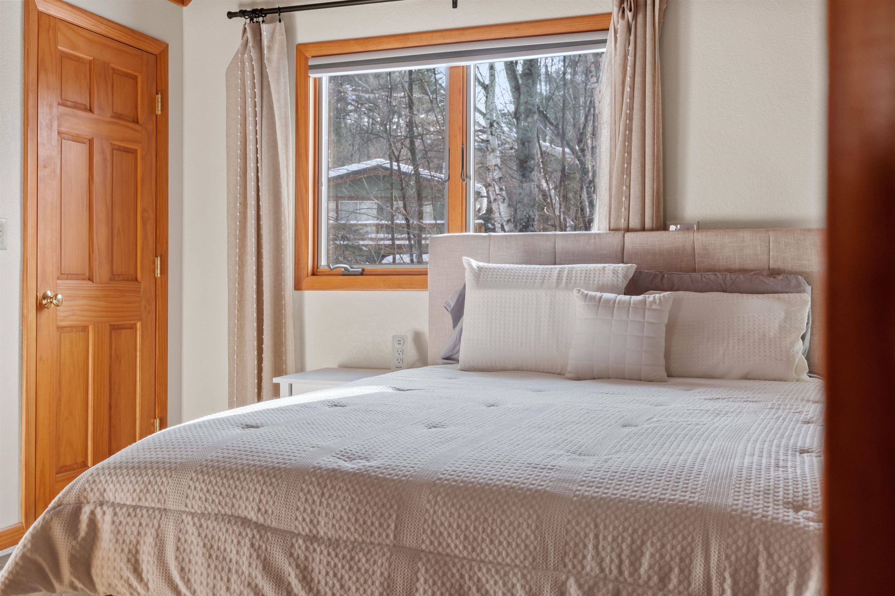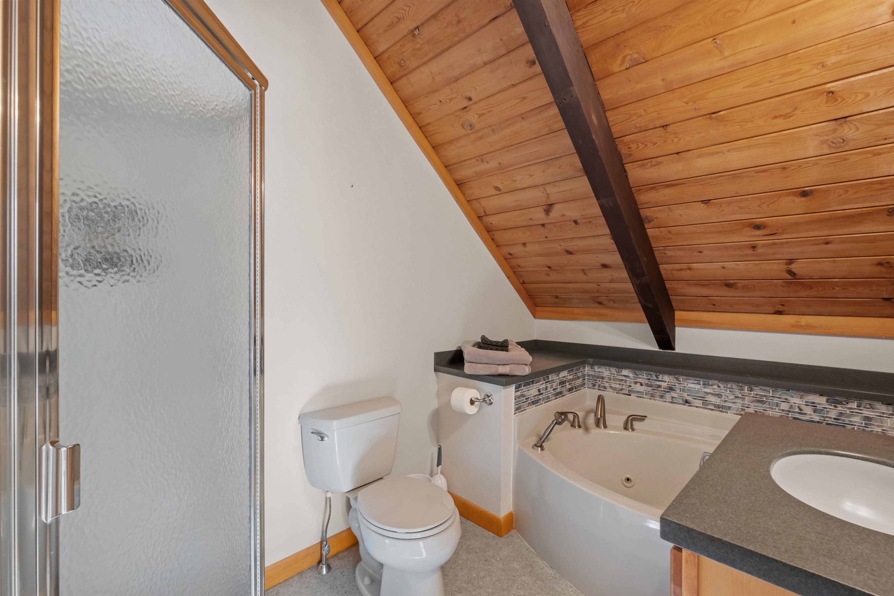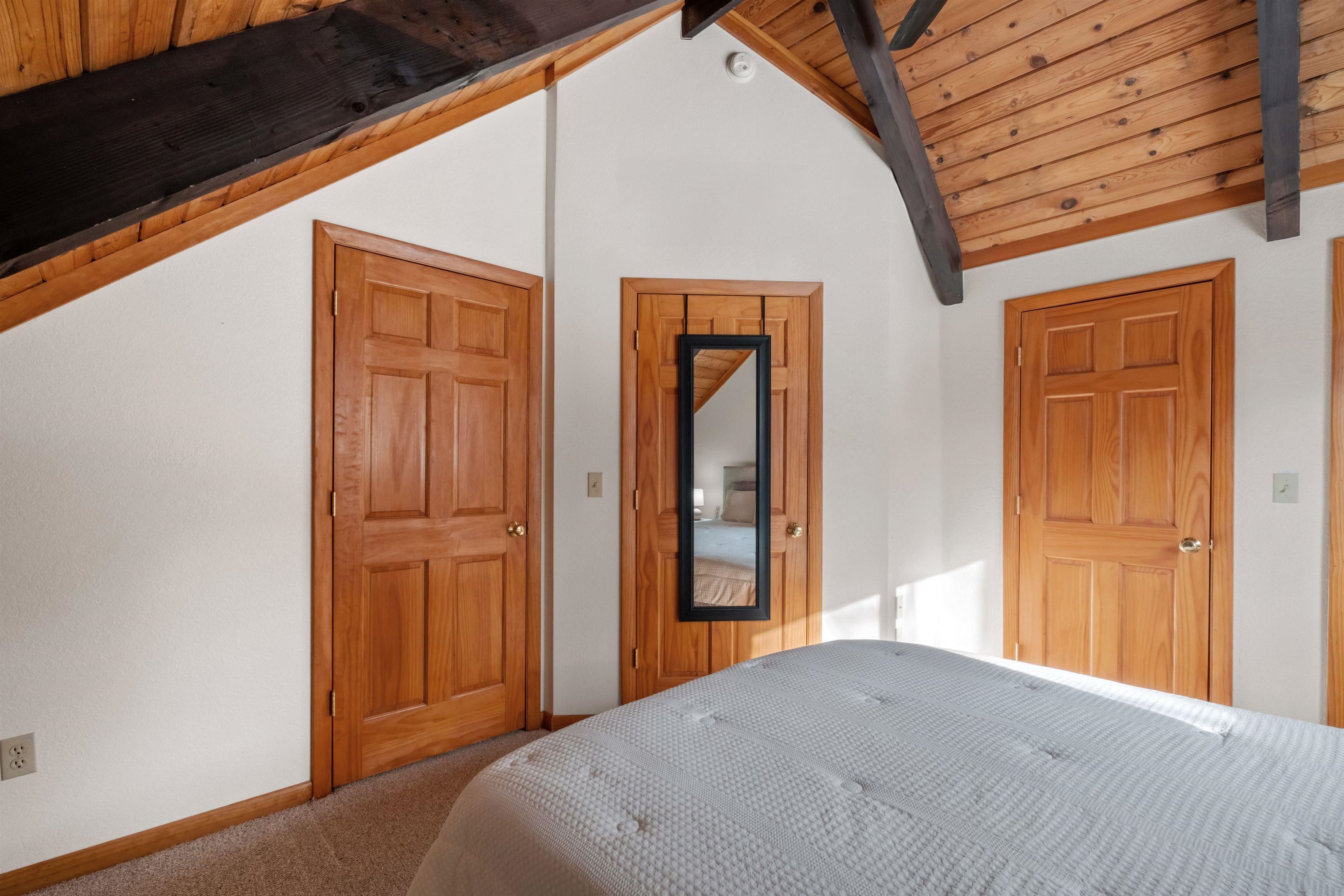 Your dream mountain getaway awaits! This beautiful Jackson chalet is just minutes from skiing, hiking, golf, restaurants, and more, yet still feels like a peaceful retreat from the hustle and bustle of everyday life. Enter into the lower level where there's a convenient mudroom/storage space for boots, gear, and more. There's also a spacious playroom/second living area on the lower level, perfect for large groups or families looking to spread out, plus a bonus room and a full bath. Head upstairs into the main living level and you'll be awed by the cathedral ceilings with exposed beams and beautiful stone fireplace in the open space. Skylights keep the space bright, as do the glass sliders leading out to the huge deck where you may enjoy dining al fresco, or perhaps a relaxing nightcap while enjoying the incredible stargazing the mountains have to offer. Whip up delicious meals in the impressive kitchen, open to the living room, with its natural wood cabinets and ample counter space. Two nicely sized bedrooms are also located on the main level, with a shared 3/4 bath. Heading up one more level is the gorgeous primary suite with a full bath including a separate shower and jetted tub. Outside the yard is grassy and sprawling, with a convenient detached shed for even more storage. Just five minutes to Black Mountain ski area or downtown Jackson Village for golf, shopping, and dining. Don't let this mountain escape pass you by! Sold furnished.