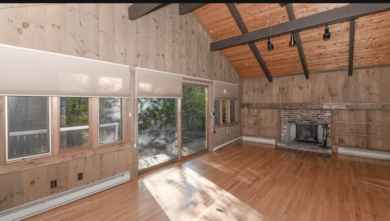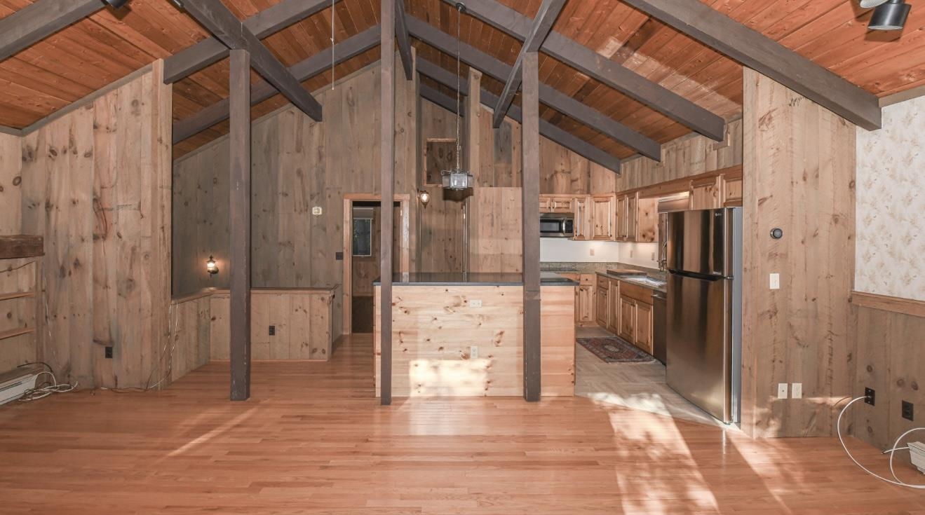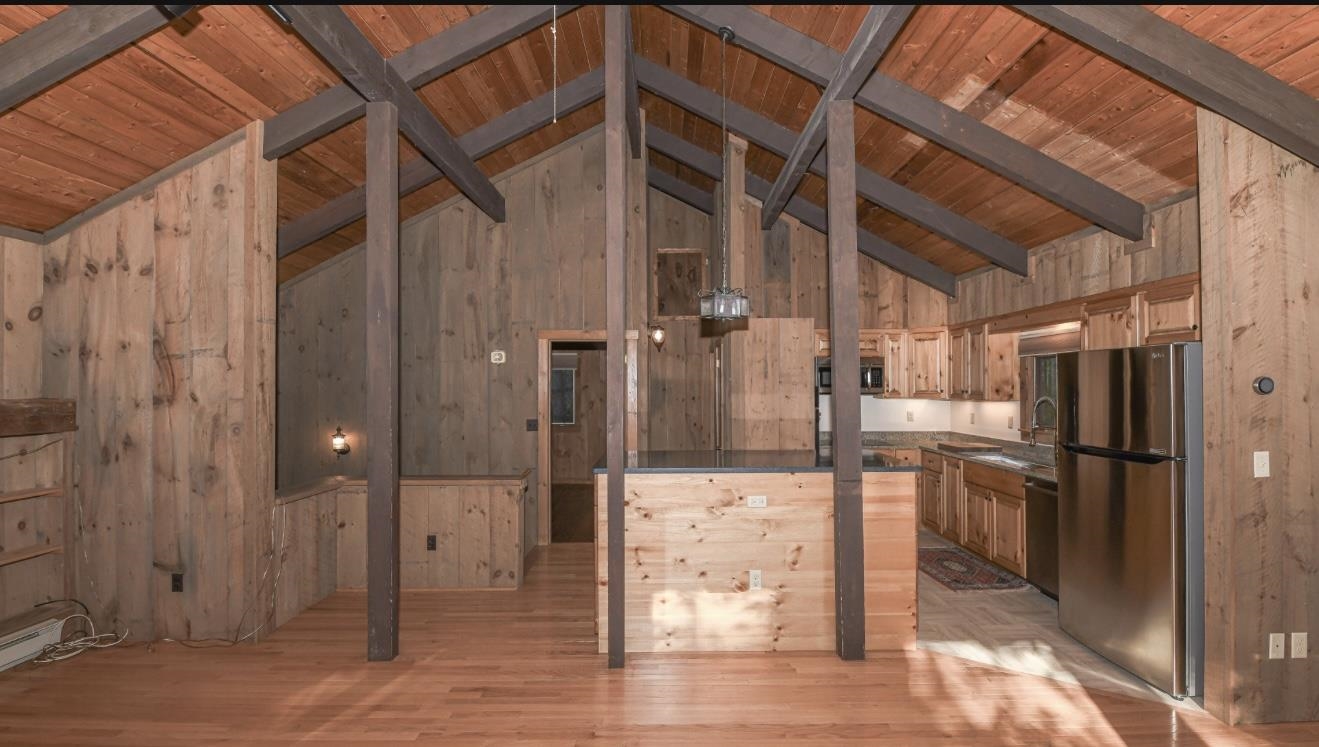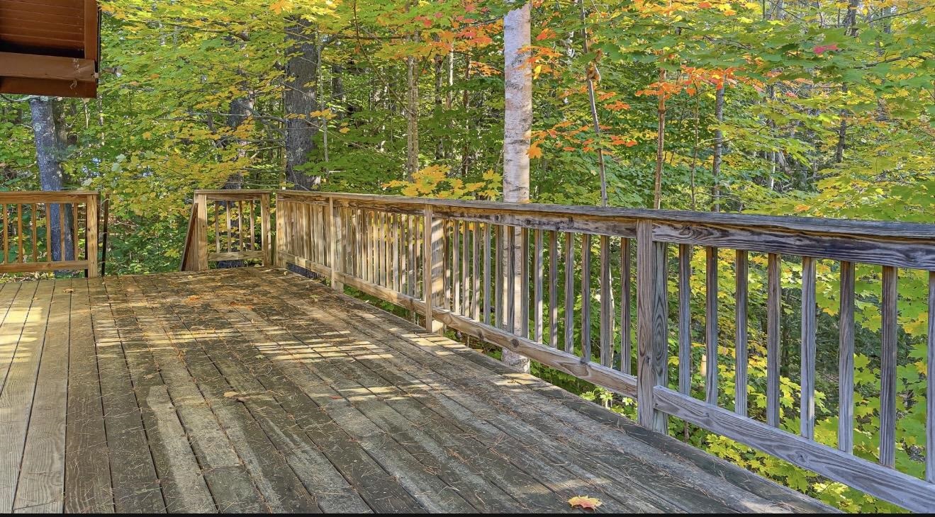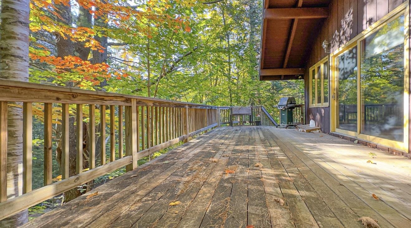Exceptional renovation opportunity on Kearsarge Brook. This chalet-style home sits on 1.1 acres comprising two lots, offering privacy and natural beauty in the heart of North Conway Village. The property features natural woodwork throughout, granite countertops, and a stone fireplace that serves as the home's focal point. Two bedrooms and a full bath on the main level, plus a primary bedroom and bath upstairs. Additional amenities include a cedar sauna on the first floor and an expansive deck that overlooks Kearsarge brook. Set back from the road to ensure maximum privacy, this unique waterfront property presents an outstanding opportunity to create your dream mountain retreat while preserving its rustic charm and character. Ideally located close to skiing, shopping, and restaurants, offering the perfect blend for year around or vacation, convenient access to North Conway's premier recreational and dining destinations.