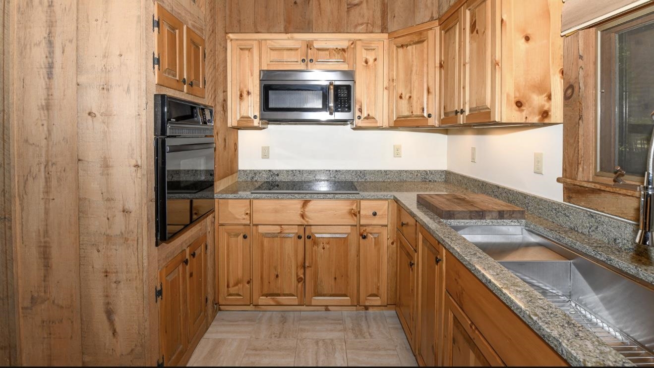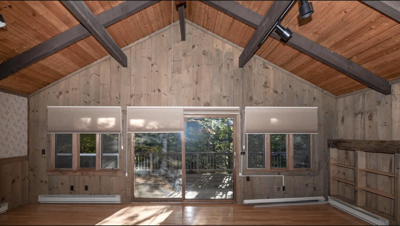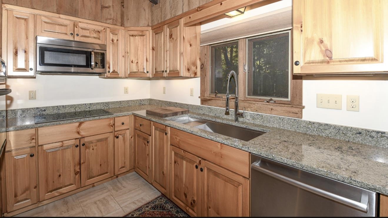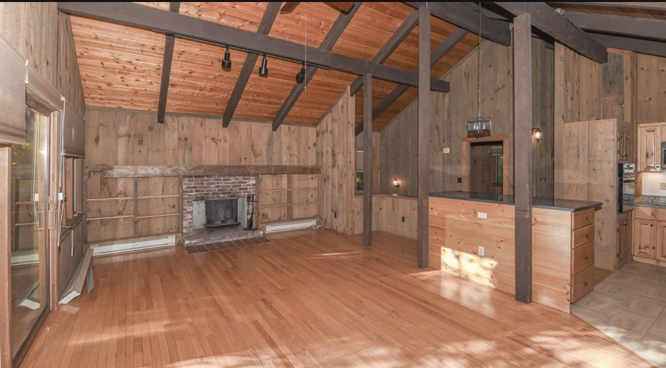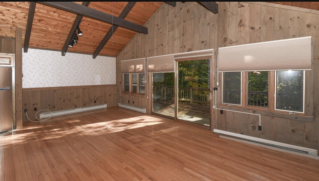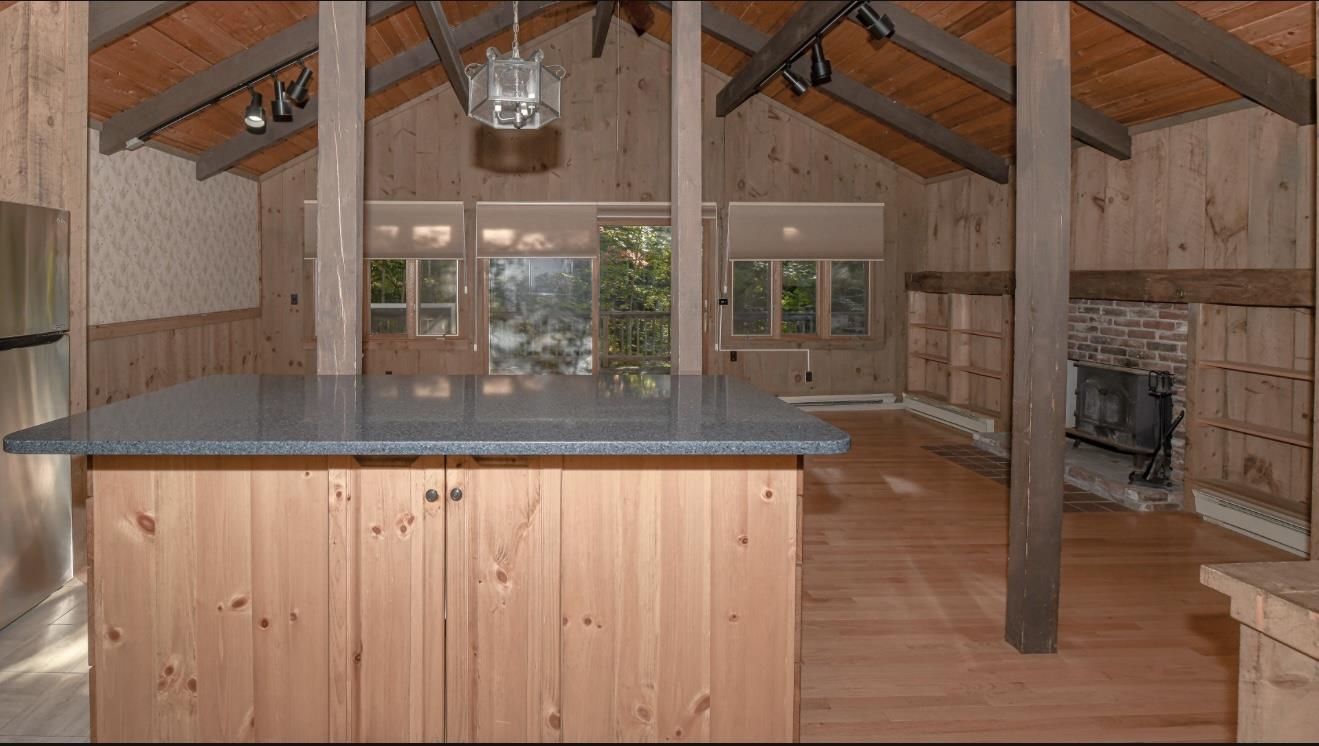 Exceptional renovation opportunity on Kearsarge Brook. This chalet-style home sits on 1.1 acres comprising two lots, offering privacy and natural beauty in the heart of North Conway Village. The property features natural woodwork throughout, granite countertops, and a stone fireplace that serves as the home's focal point. Two bedrooms and a full bath on the main level, plus a primary bedroom and bath upstairs. Additional amenities include a cedar sauna on the first floor and an expansive deck that overlooks Kearsarge brook. Set back from the road to ensure maximum privacy, this unique waterfront property presents an outstanding opportunity to create your dream mountain retreat while preserving its rustic charm and character. Ideally located close to skiing, shopping, and restaurants, offering the perfect blend for year around or vacation, convenient access to North Conway's premier recreational and dining destinations.