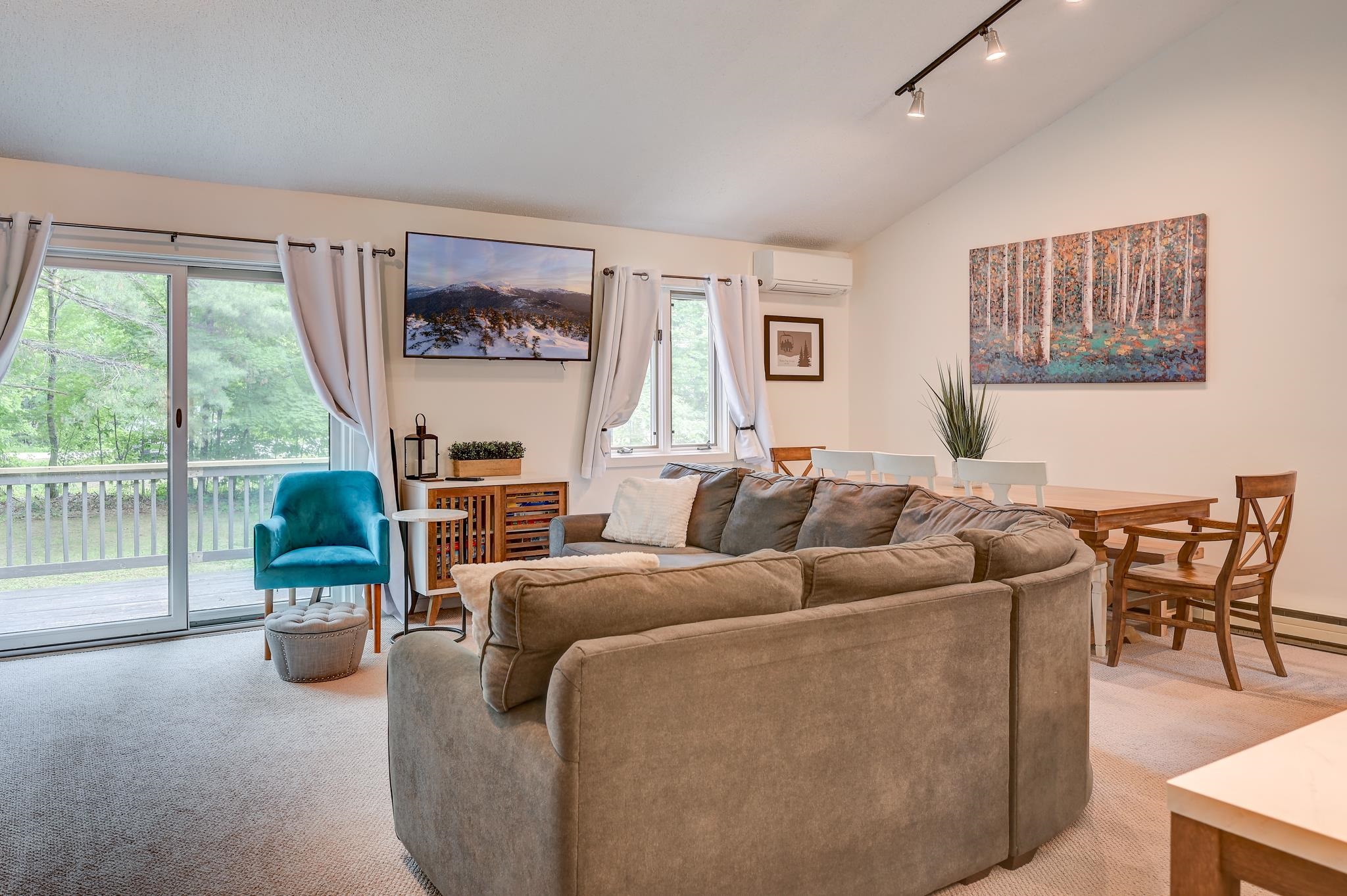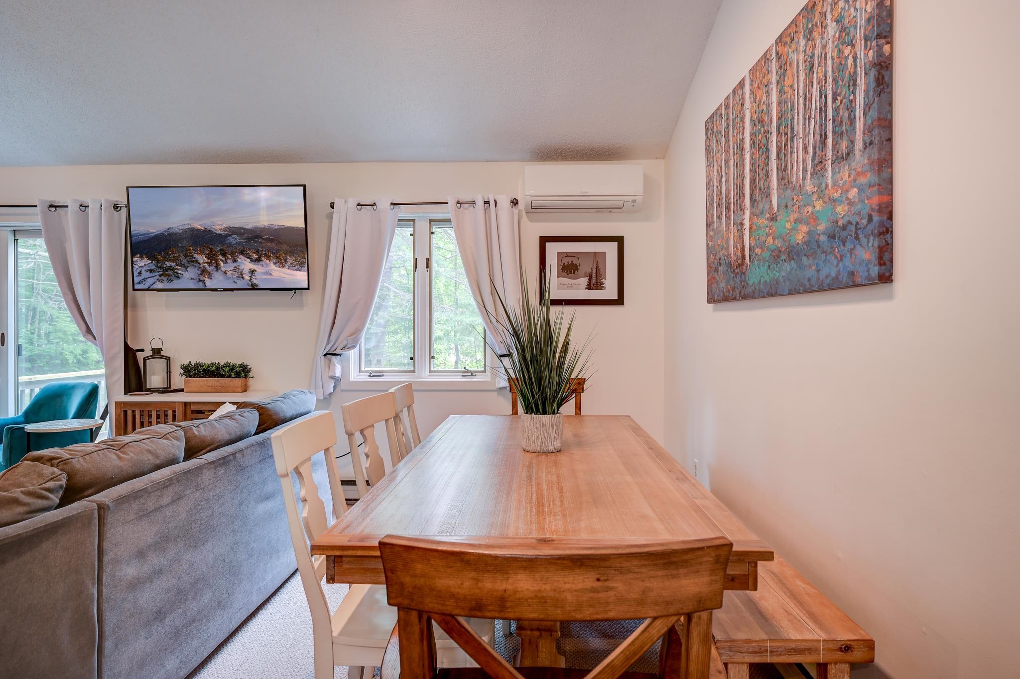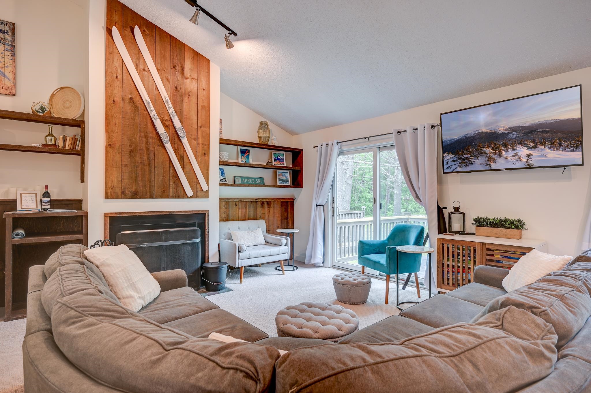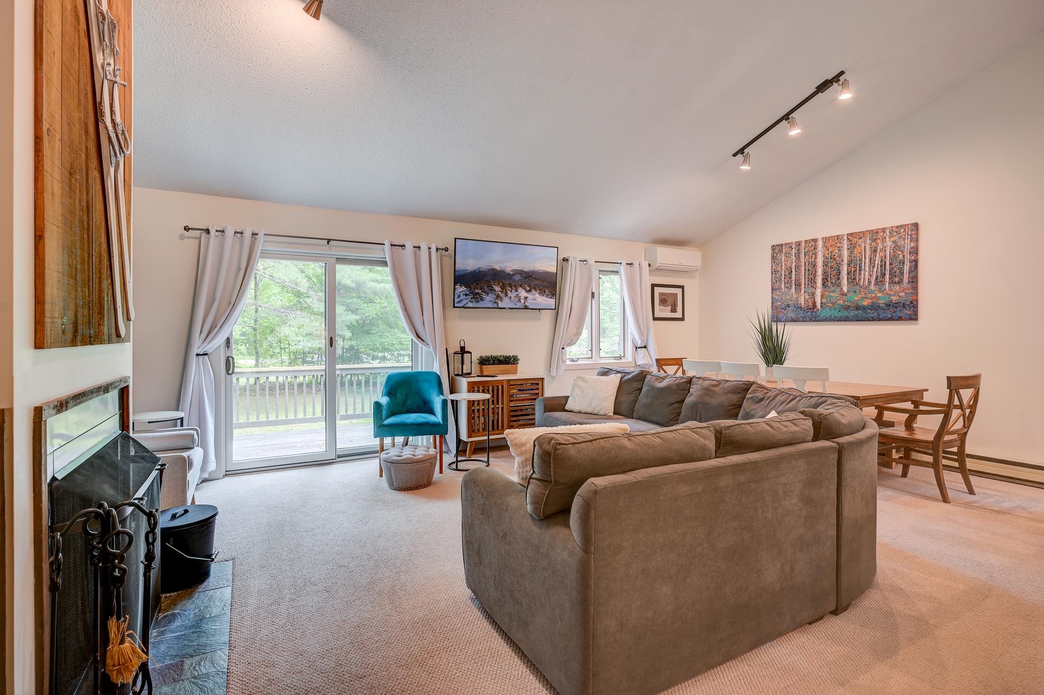 Tucked into the pines of Intervale, this freshly updated 3 bedroom, 2 bath condo at Woodland Pines feels like the mountain getaway you've been waiting for! Step inside and you're welcomed by cozy ski lodge vibes, with vaulted ceilings, a wood-burning fireplace, and rustic wood accents - it's the perfect place to unwind after a day on the slopes or trails. The main level flows effortlessly from the modern kitchen with granite countertops to a cozy living and dining area that opens onto your private deck. Downstairs, all three bedrooms offer tucked-away comfort, along with a full bath and convenient laundry. Thoughtful upgrades like new paint, quality furnishings (included!), and a mini-split for year-round comfort mean all you have to do is arrive and relax. Whether you're lounging by the pool, hitting the tennis courts, or dipping your toes in the East Branch River, life at Woodland Pines is about enjoying every season in the mountains. Plus, you're just minutes from North Conway's shops and restaurants!