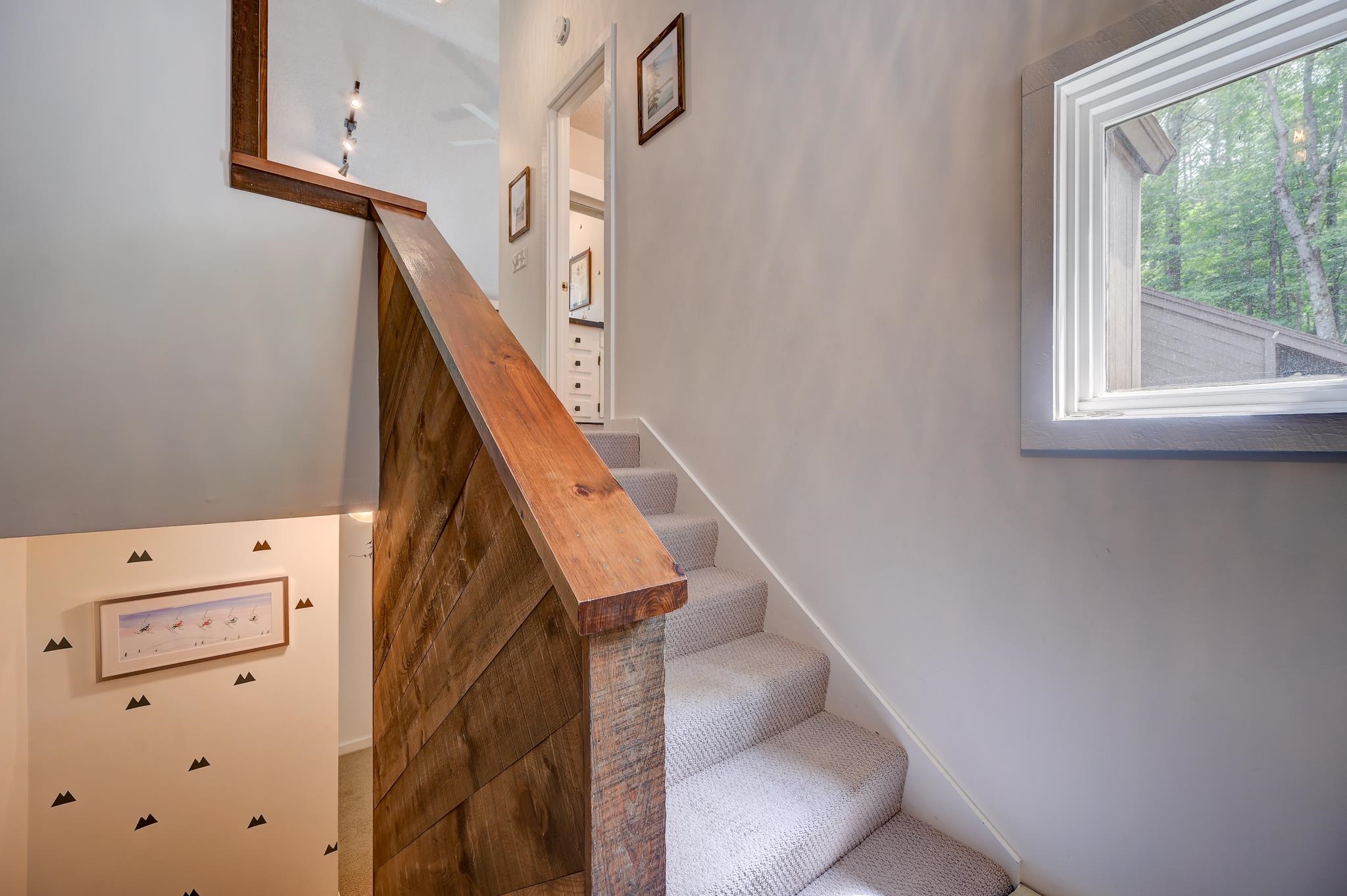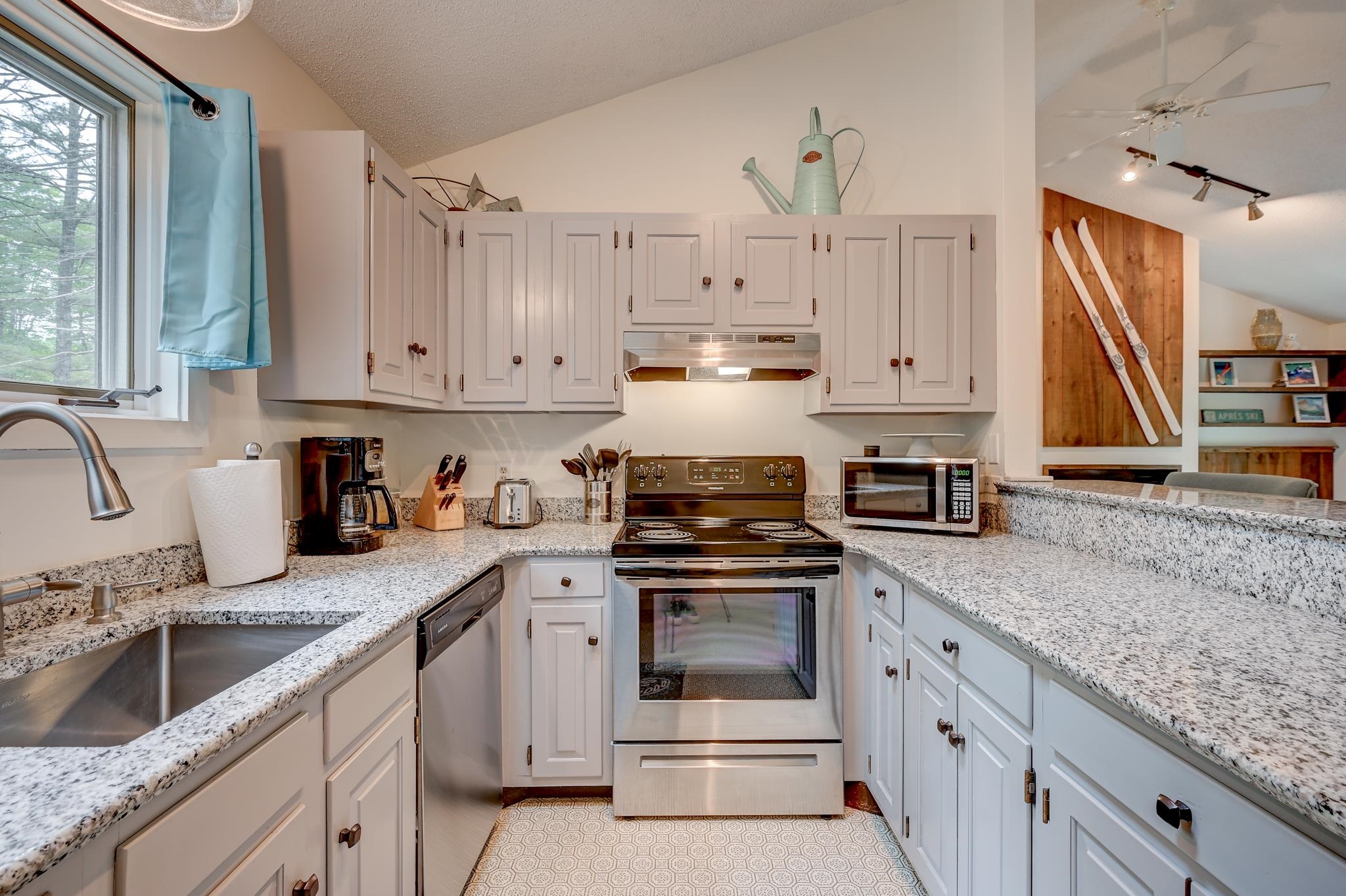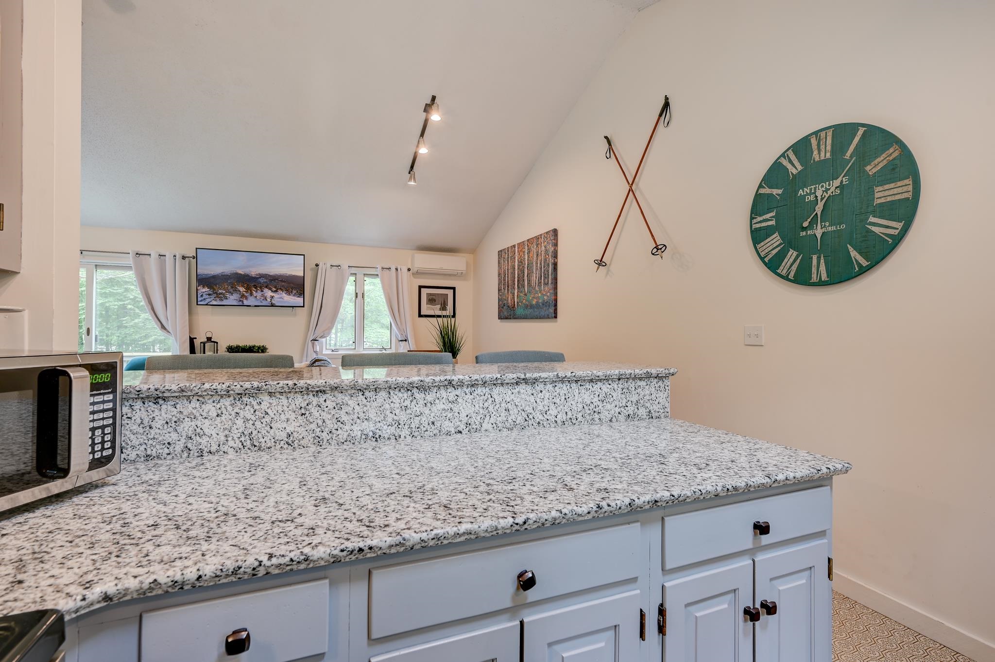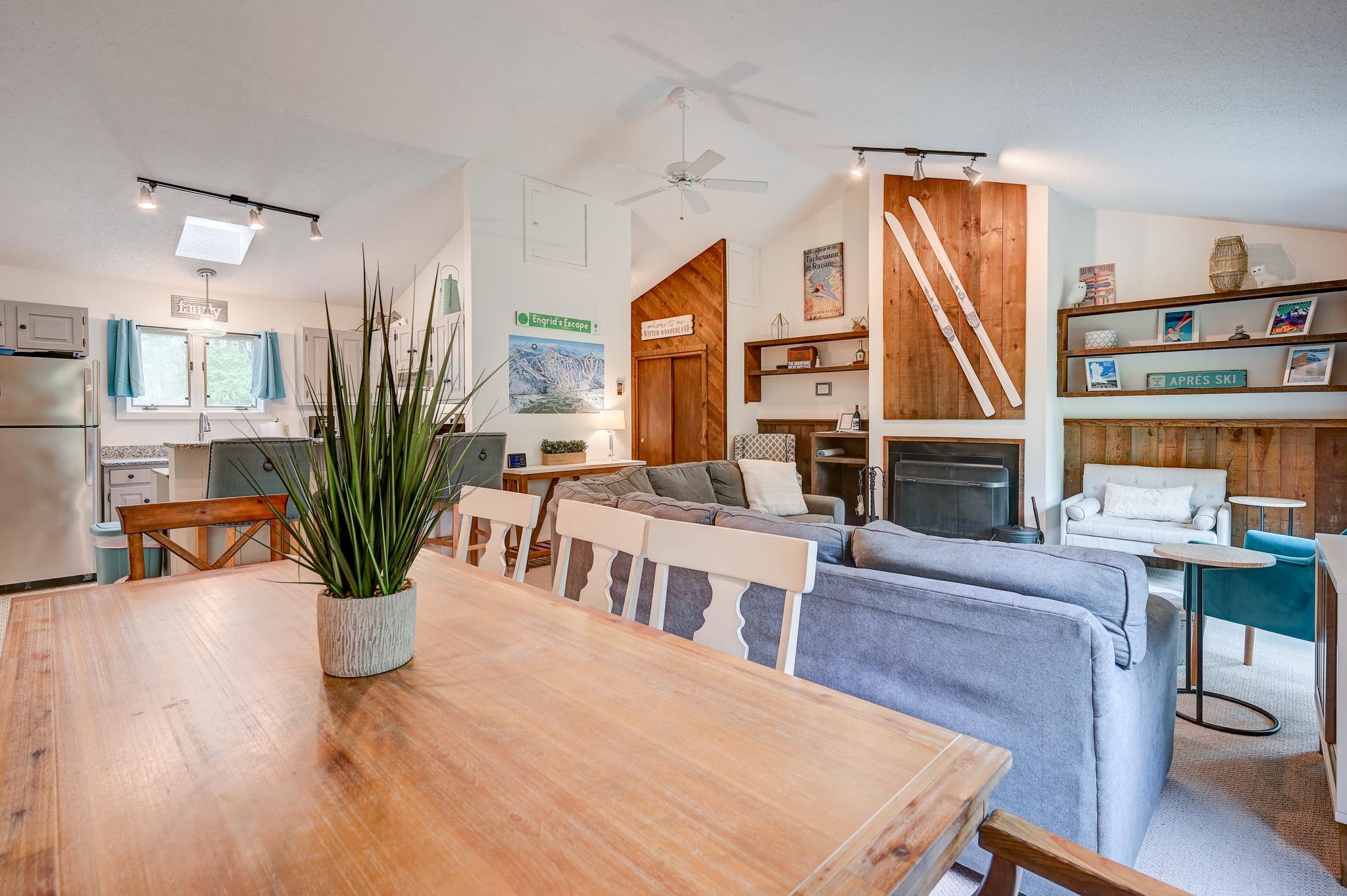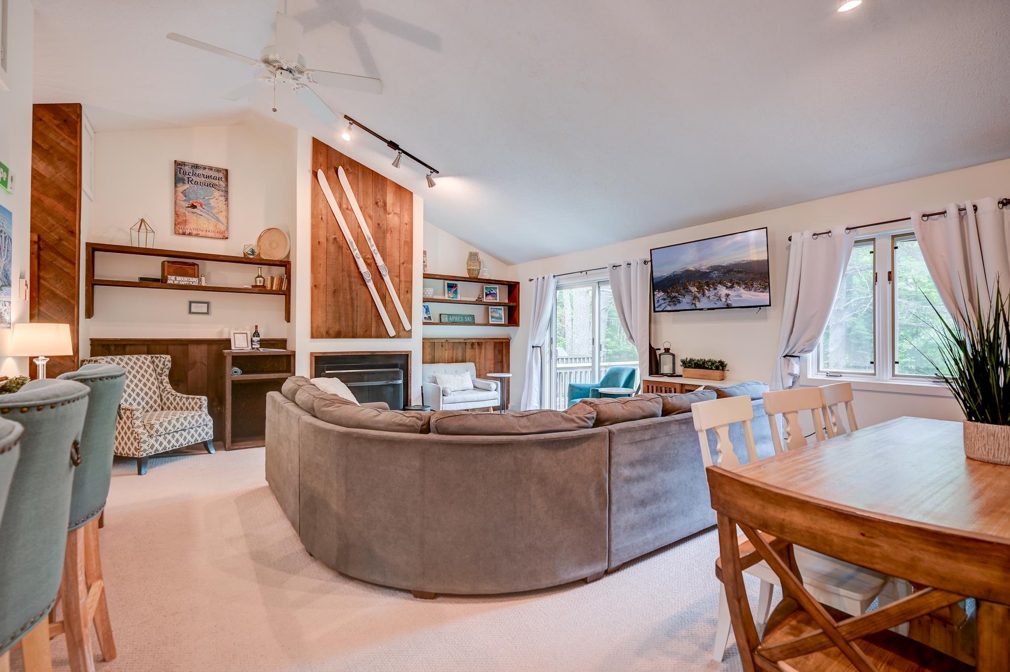 Tucked into the pines of Intervale, this freshly updated 3 bedroom, 2 bath condo at Woodland Pines feels like the mountain getaway you've been waiting for! Step inside and you're welcomed by cozy ski lodge vibes, with vaulted ceilings, a wood-burning fireplace, and rustic wood accents - it's the perfect place to unwind after a day on the slopes or trails. The main level flows effortlessly from the modern kitchen with granite countertops to a cozy living and dining area that opens onto your private deck. Downstairs, all three bedrooms offer tucked-away comfort, along with a full bath and convenient laundry. Thoughtful upgrades like new paint, quality furnishings (included!), and a mini-split for year-round comfort mean all you have to do is arrive and relax. Whether you're lounging by the pool, hitting the tennis courts, or dipping your toes in the East Branch River, life at Woodland Pines is about enjoying every season in the mountains. Plus, you're just minutes from North Conway's shops and restaurants!