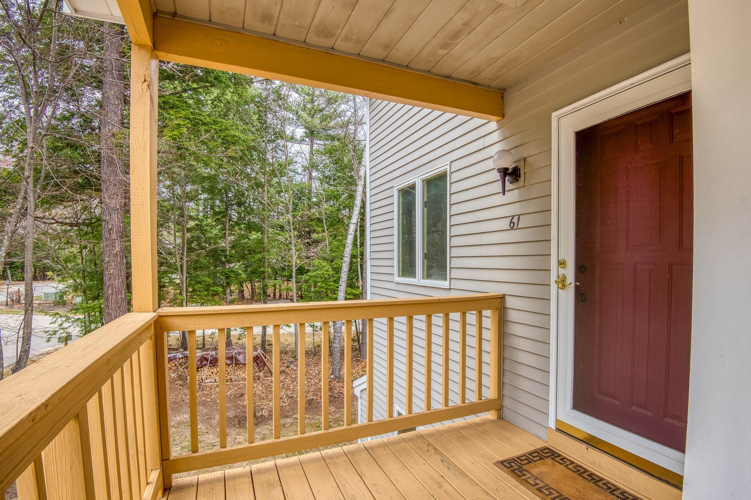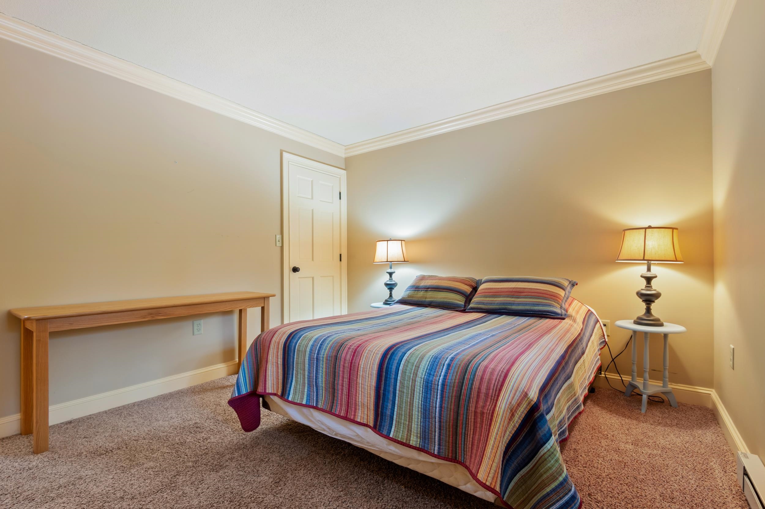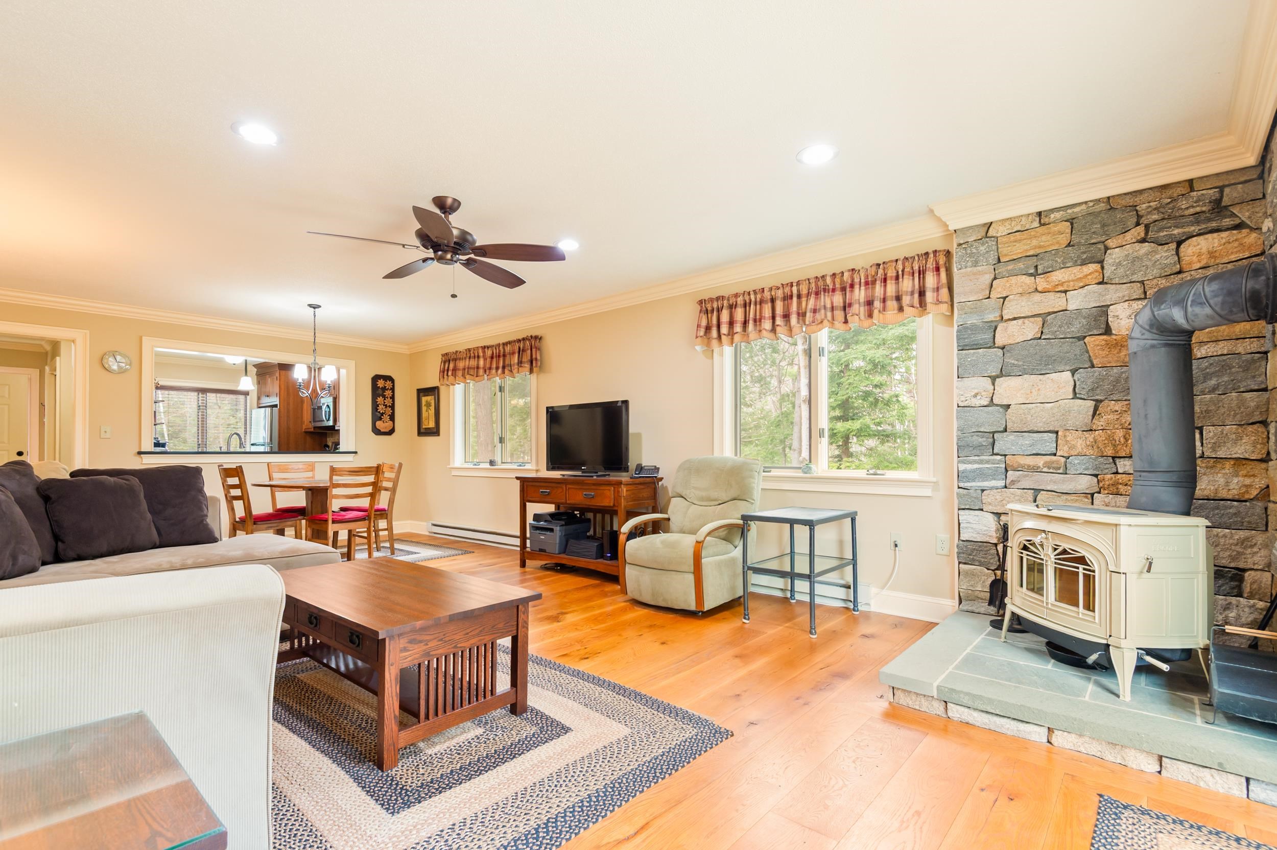 Your new home in the Mount Washington Valley awaits. This top floor, fully remodeled end unit condo is ready for you to move right in. The quality and attractiveness of the upgrades is very apparent. In the kitchen there are Shaker cabinets, granite counters, tiled floor and backsplash, stainless appliances and an oversized pass-through opening to the dining/living room. The main living space features wide plank wood floors and a beautiful stone wall behind the Vermont Castings wood stove. The extra windows, only a feature in end units like this and pass-through window lend an open airy look and feel to the entire space. Crown moldings in all the rooms add an elegant finished touch. The spacious deck offers a welcoming space for enjoying your morning coffee, relaxing in the midday sun and cooking up your favorite BBQ dinner. There are also seasonal mountain views of Cranmore and Hurricane mountains. The building is set just off a lovely wooded lane and the pool and tennis court are just a short walk away. There is direct access to Whitaker Woods trails from the property and North Conway Village is a mere 2 miles away heading south. Or head north instead - you're just a short drive to hiking, biking, kayaking, skiing and everything else the Mount Washington Valley has to offer.