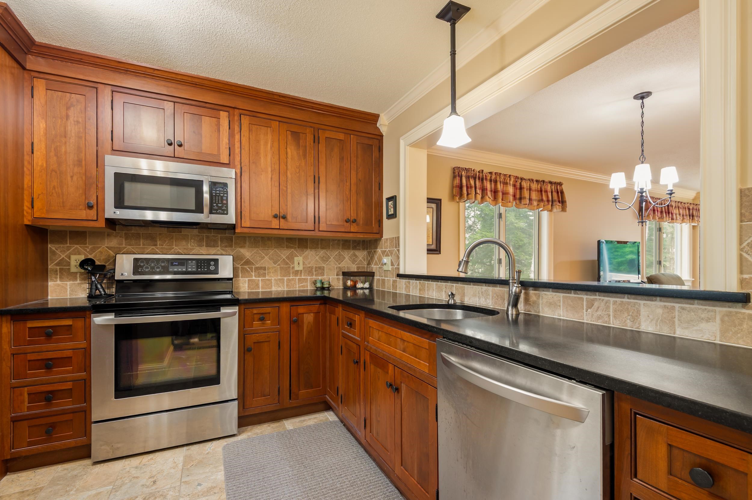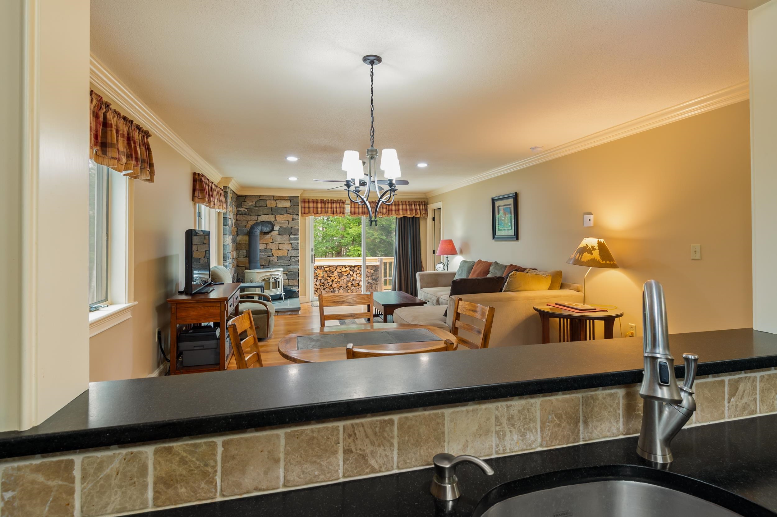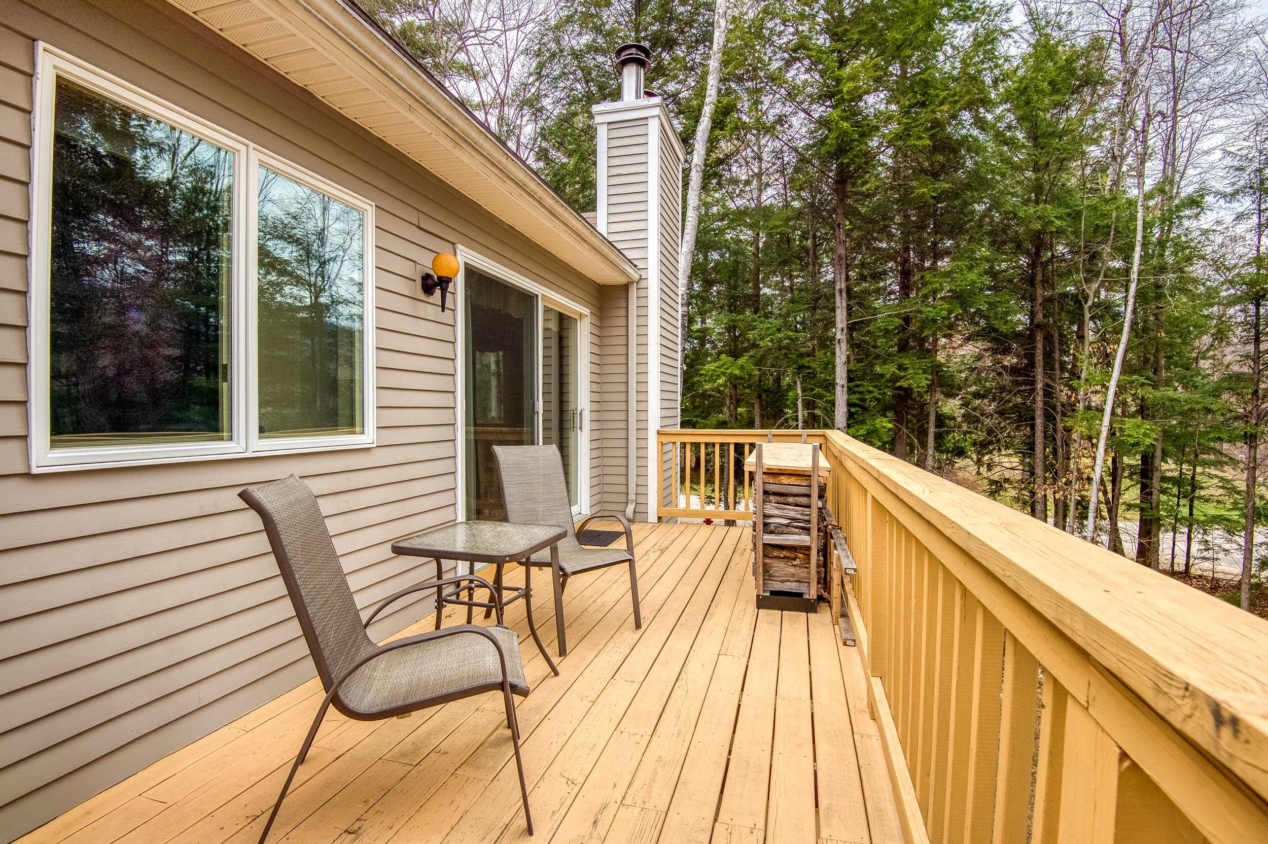 Your new home in the Mount Washington Valley awaits. This top floor, fully remodeled end unit condo is ready for you to move right in. The quality and attractiveness of the upgrades is very apparent. In the kitchen there are Shaker cabinets, granite counters, tiled floor and backsplash, stainless appliances and an oversized pass-through opening to the dining/living room. The main living space features wide plank wood floors and a beautiful stone wall behind the Vermont Castings wood stove. The extra windows, only a feature in end units like this and pass-through window lend an open airy look and feel to the entire space. Crown moldings in all the rooms add an elegant finished touch. The spacious deck offers a welcoming space for enjoying your morning coffee, relaxing in the midday sun and cooking up your favorite BBQ dinner. There are also seasonal mountain views of Cranmore and Hurricane mountains. The building is set just off a lovely wooded lane and the pool and tennis court are just a short walk away. There is direct access to Whitaker Woods trails from the property and North Conway Village is a mere 2 miles away heading south. Or head north instead - you're just a short drive to hiking, biking, kayaking, skiing and everything else the Mount Washington Valley has to offer.